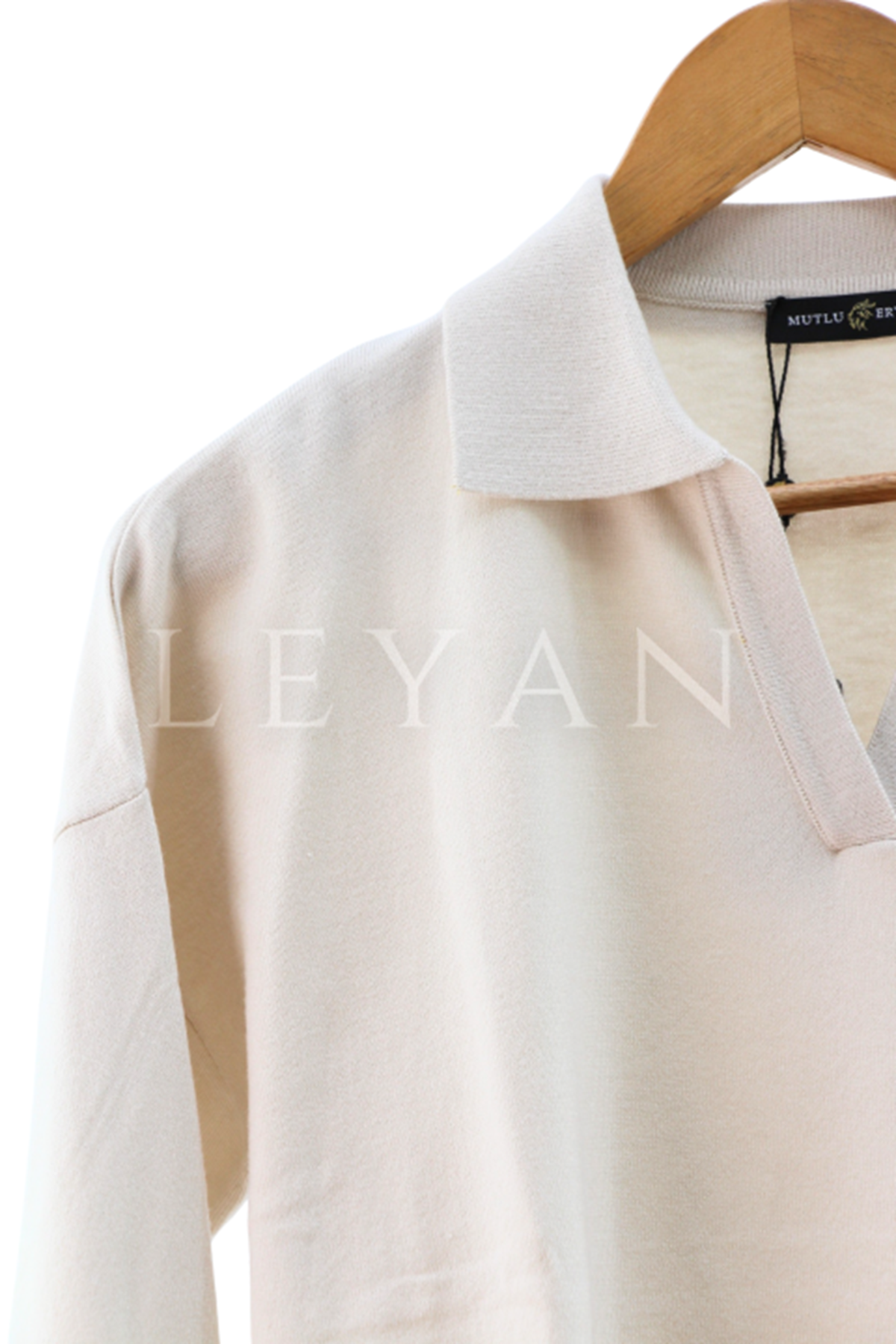 Mutlu Ertan Gömlek Yaka Triko Bluz- LYN02796 Taş