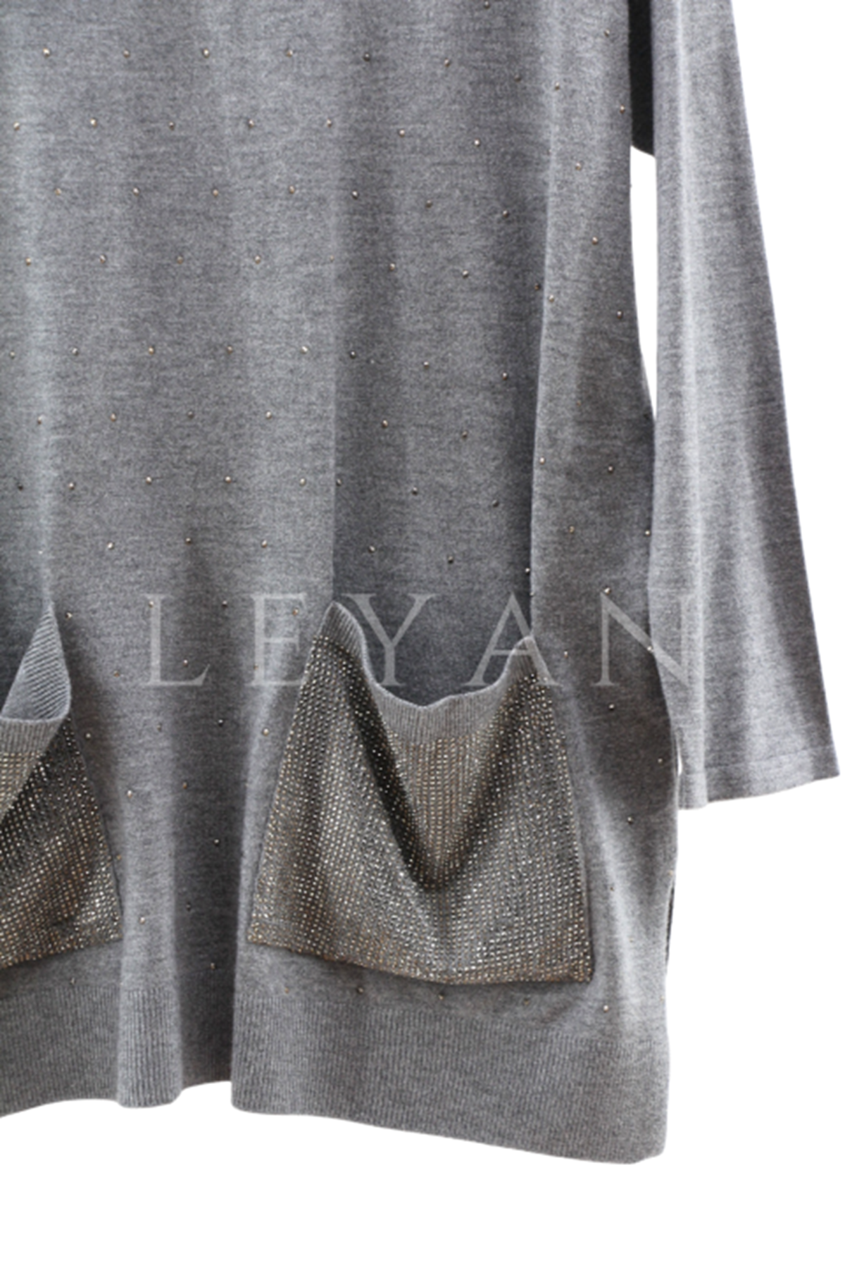 Mutlu Ertan Taşlı Triko Bluz- LYN04067 Gri
