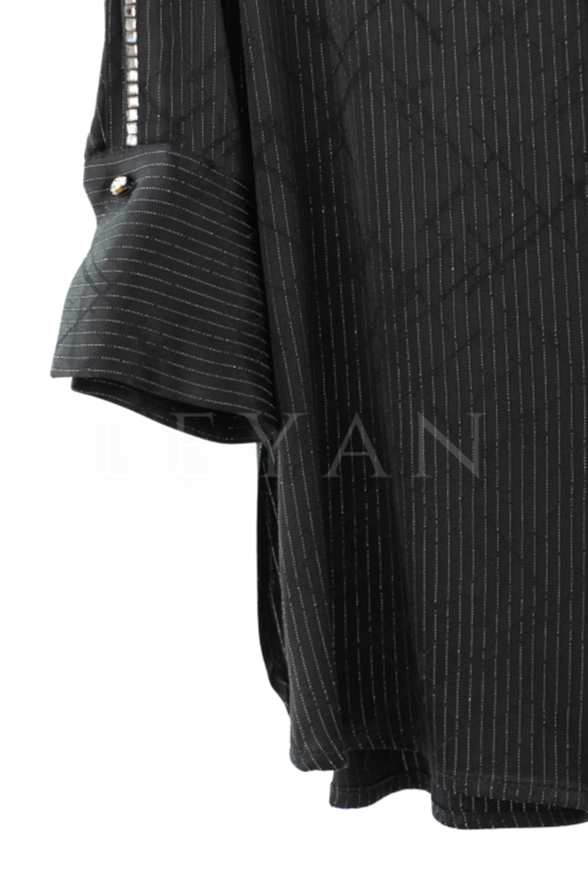 My312 Çizgili Saten Takım- LYN03384 Siyah