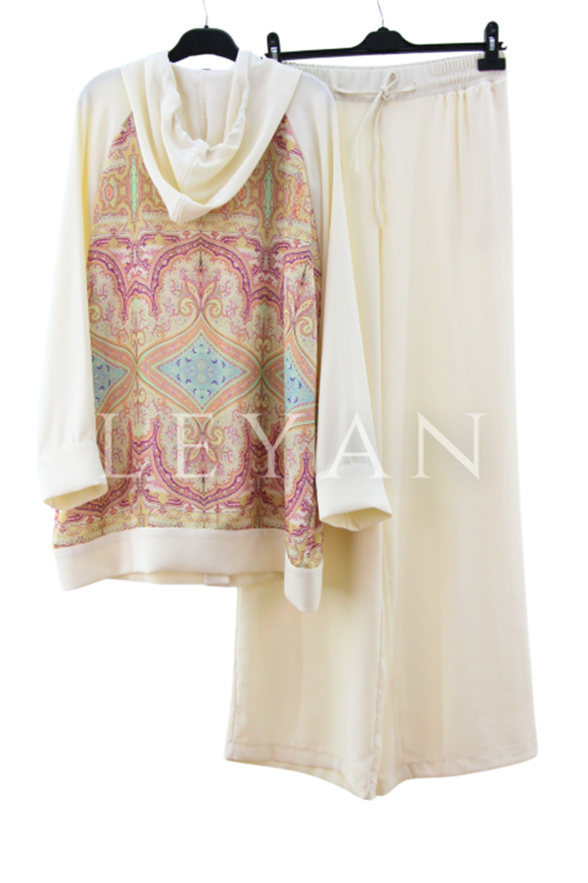 My312 Kolları Tüylü Jakarlı Takım- LYN03630 Bej