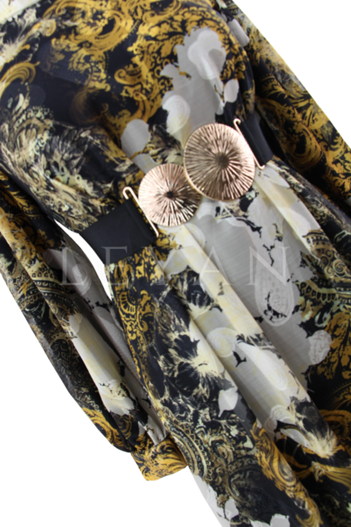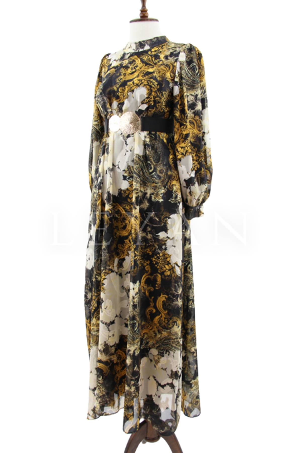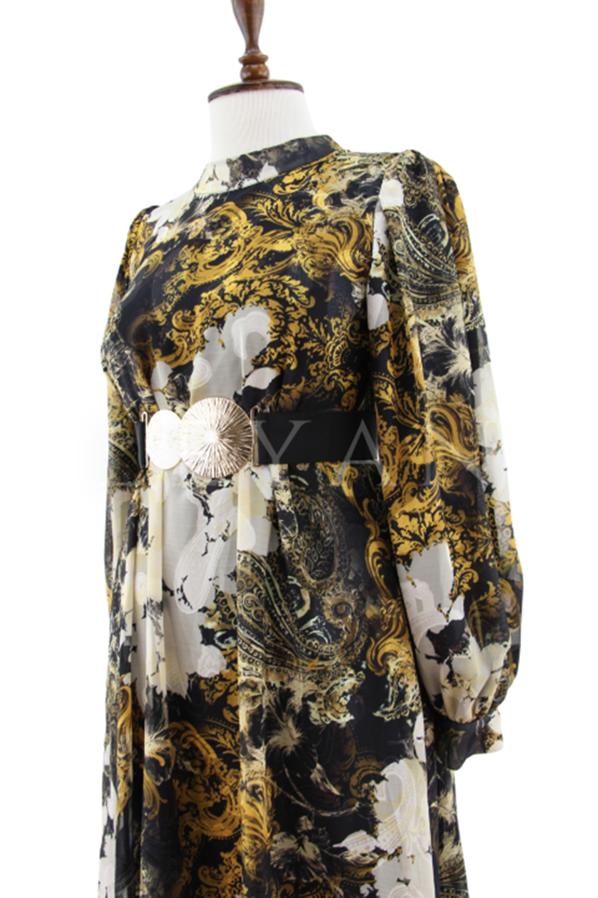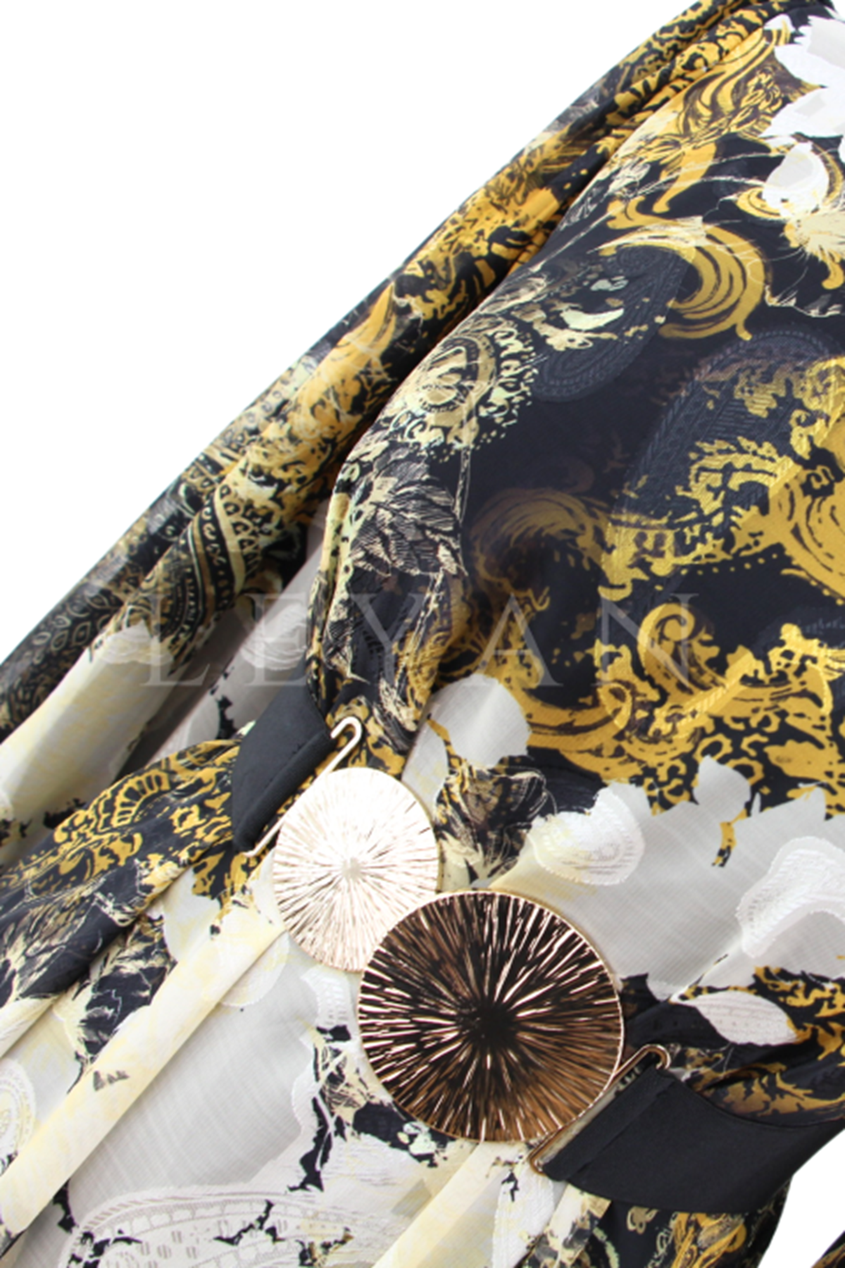 Nuss Zikzak Desenli Elbise- LYN03969 Siyah