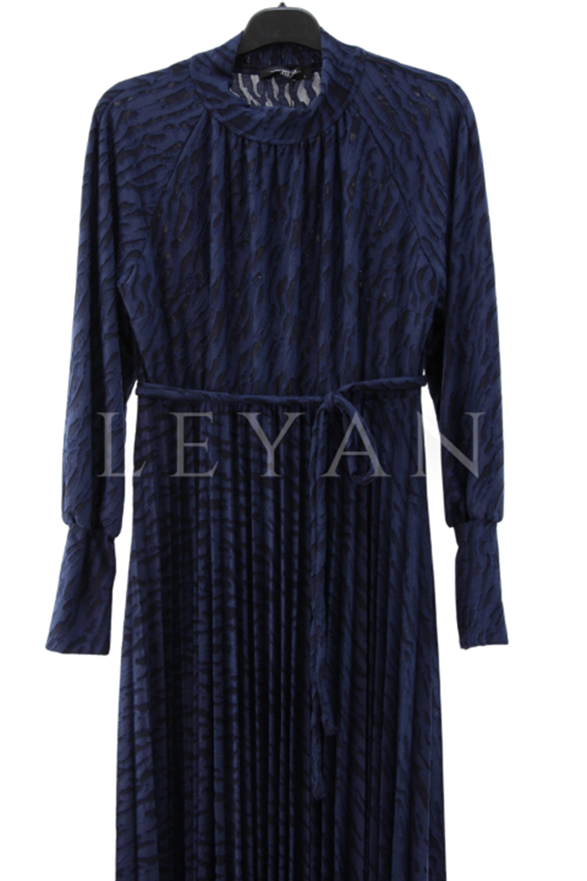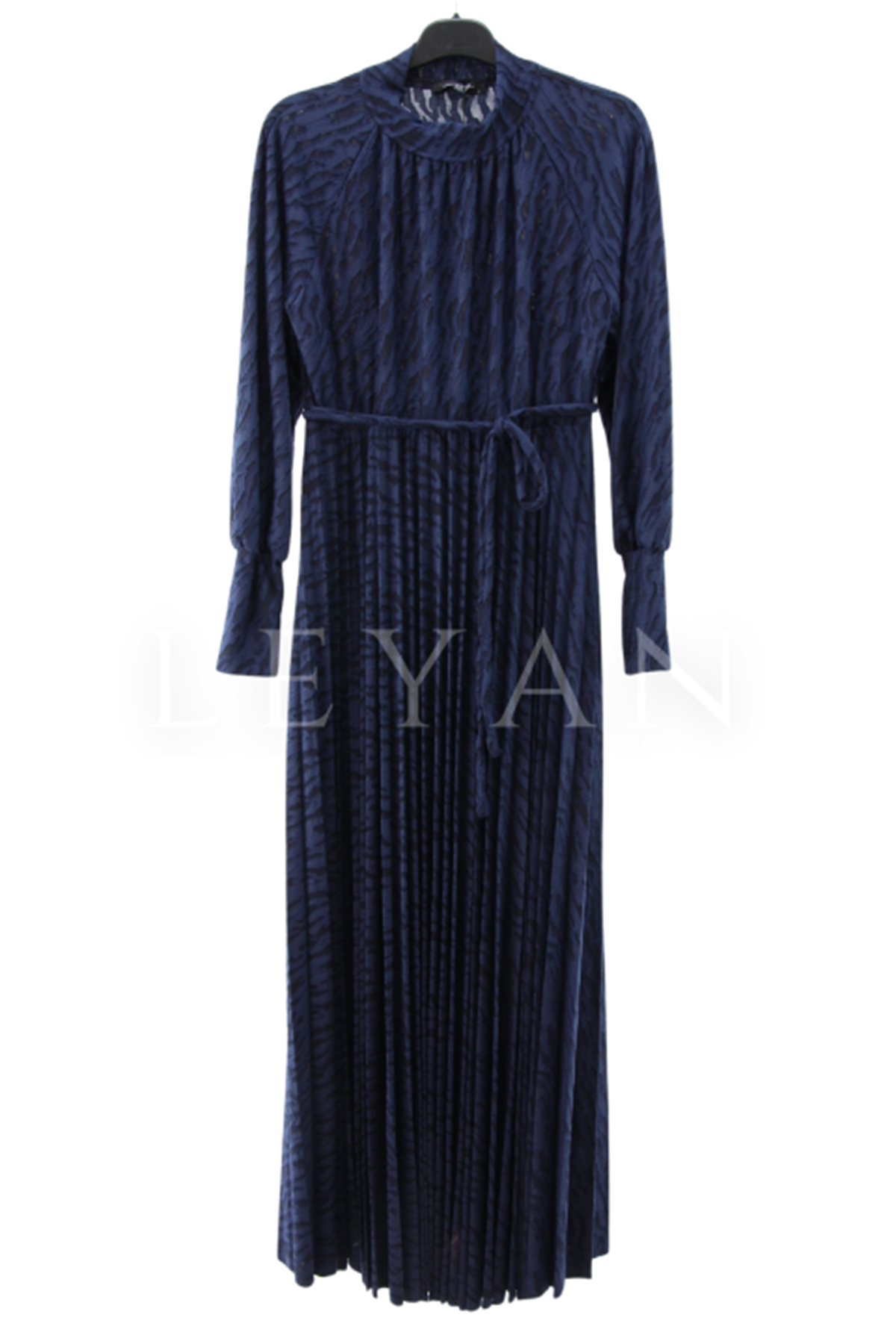 My312 Jakarlı Pilise Elbise- LYN04225 Lacivert