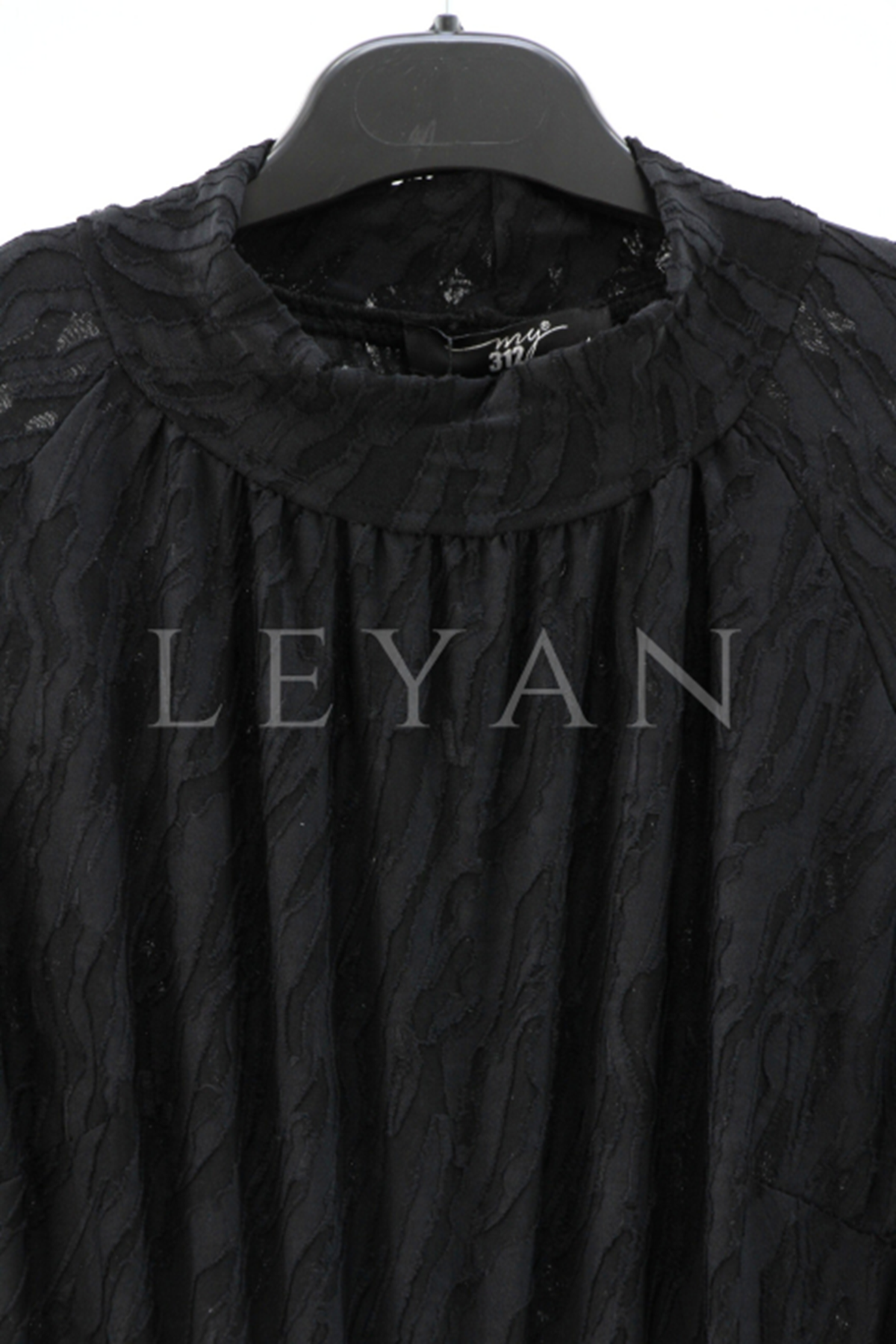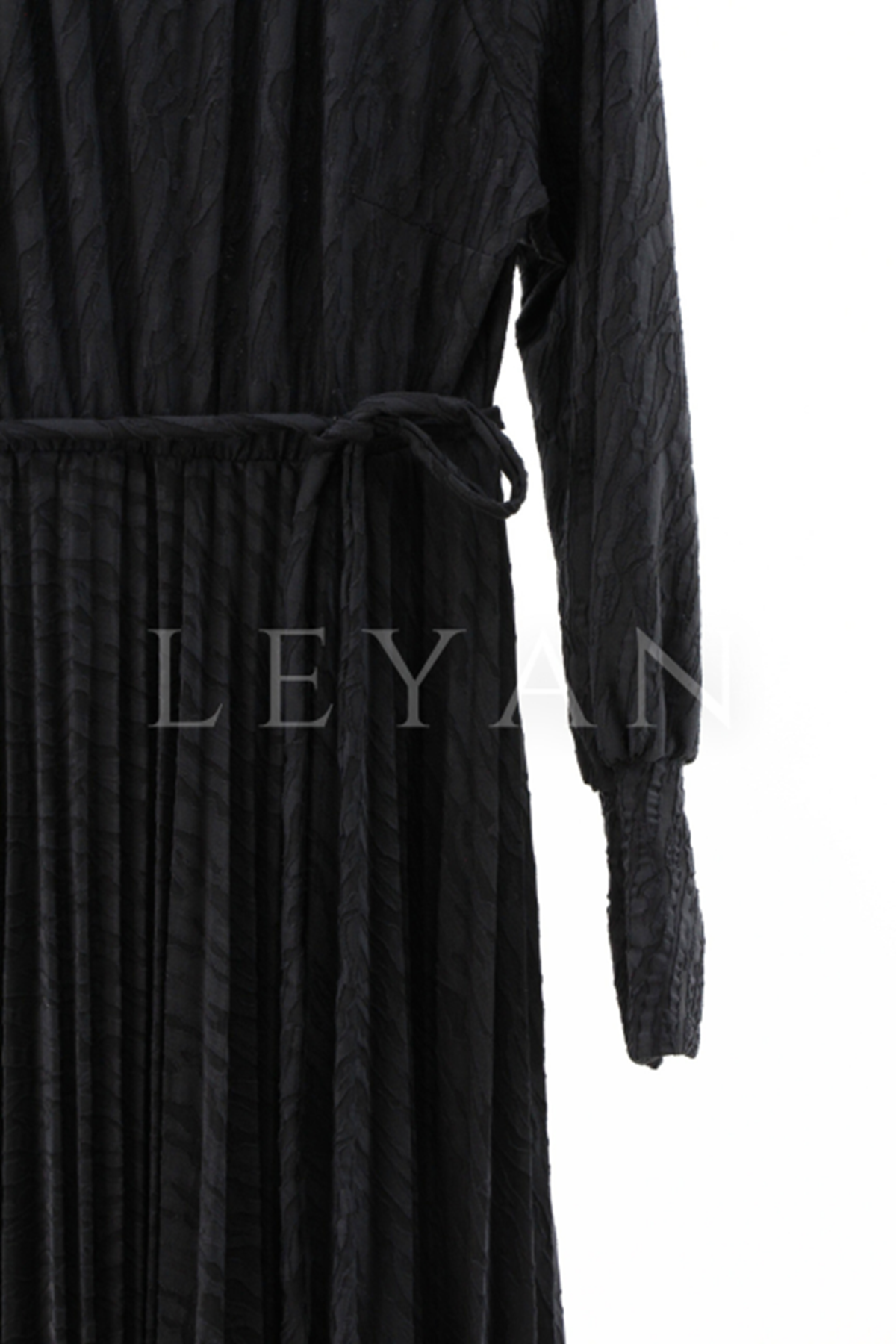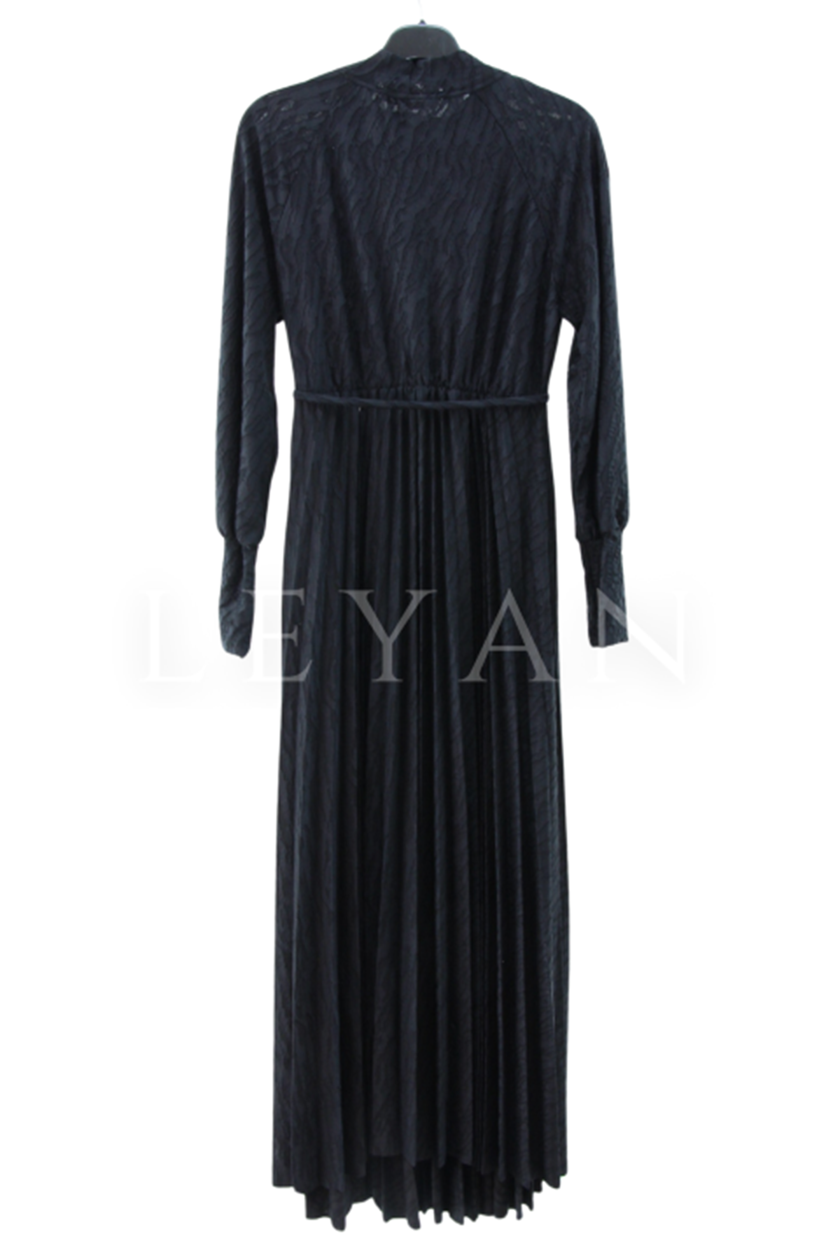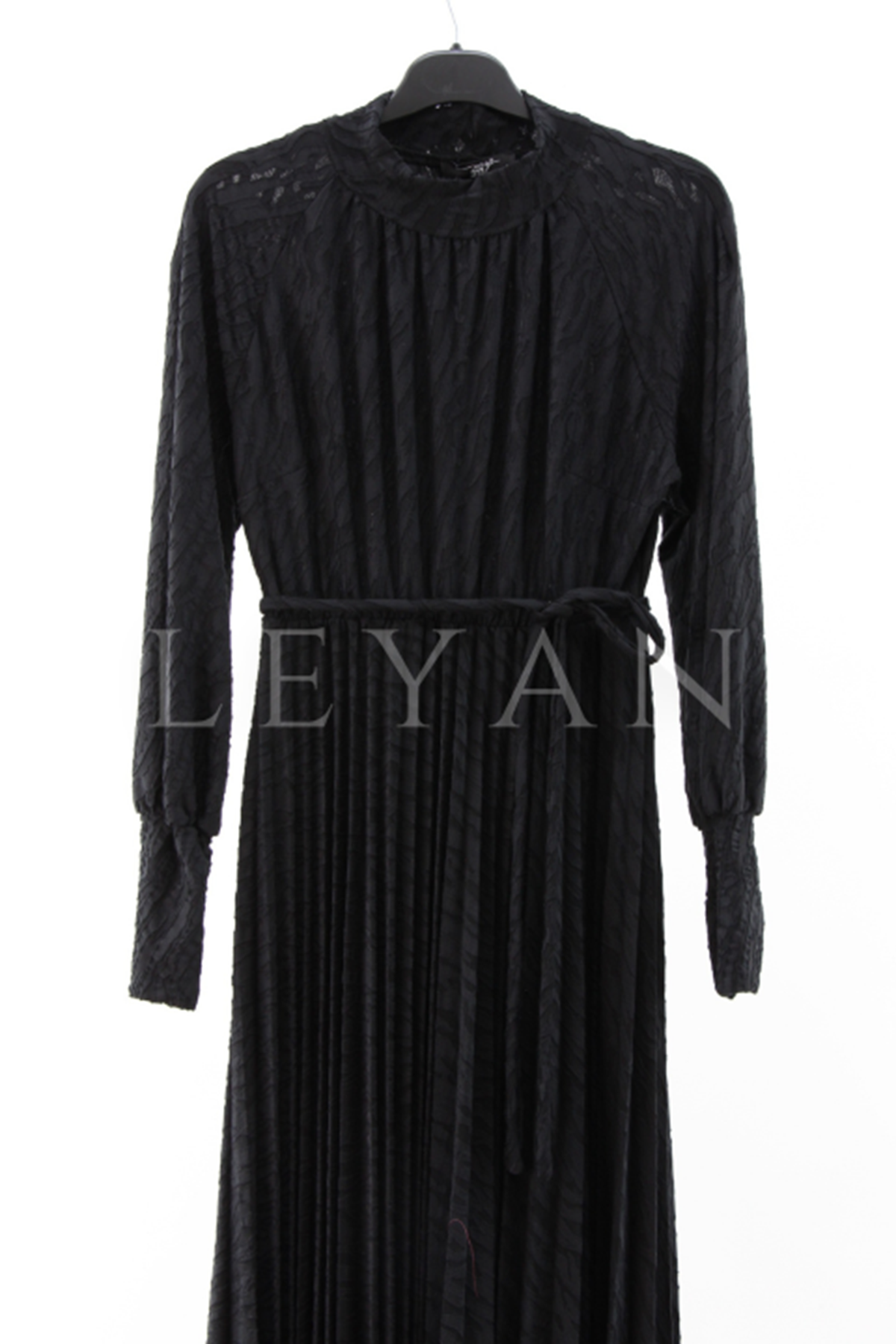 My312 Jakarlı Pilise Elbise- LYN04225 Siyah