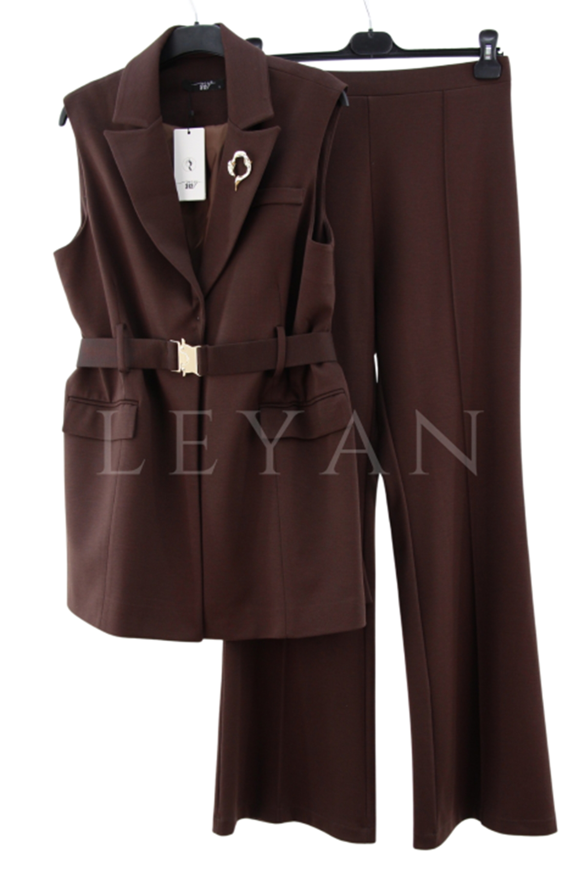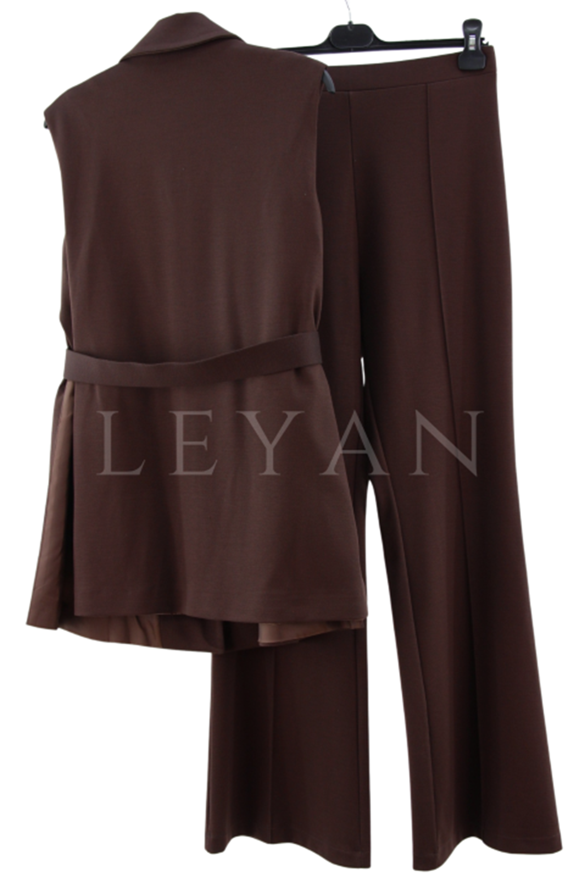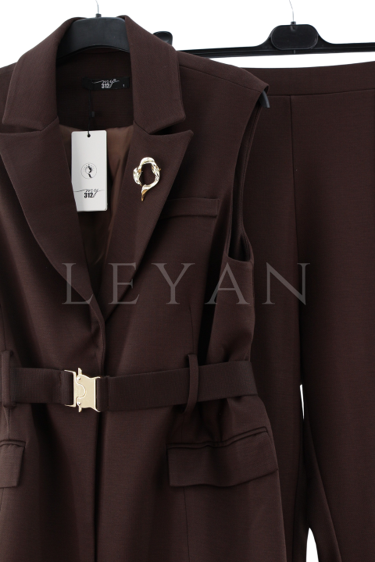 My312 Kemerli Yelek Takım- LYN04153 Kahve