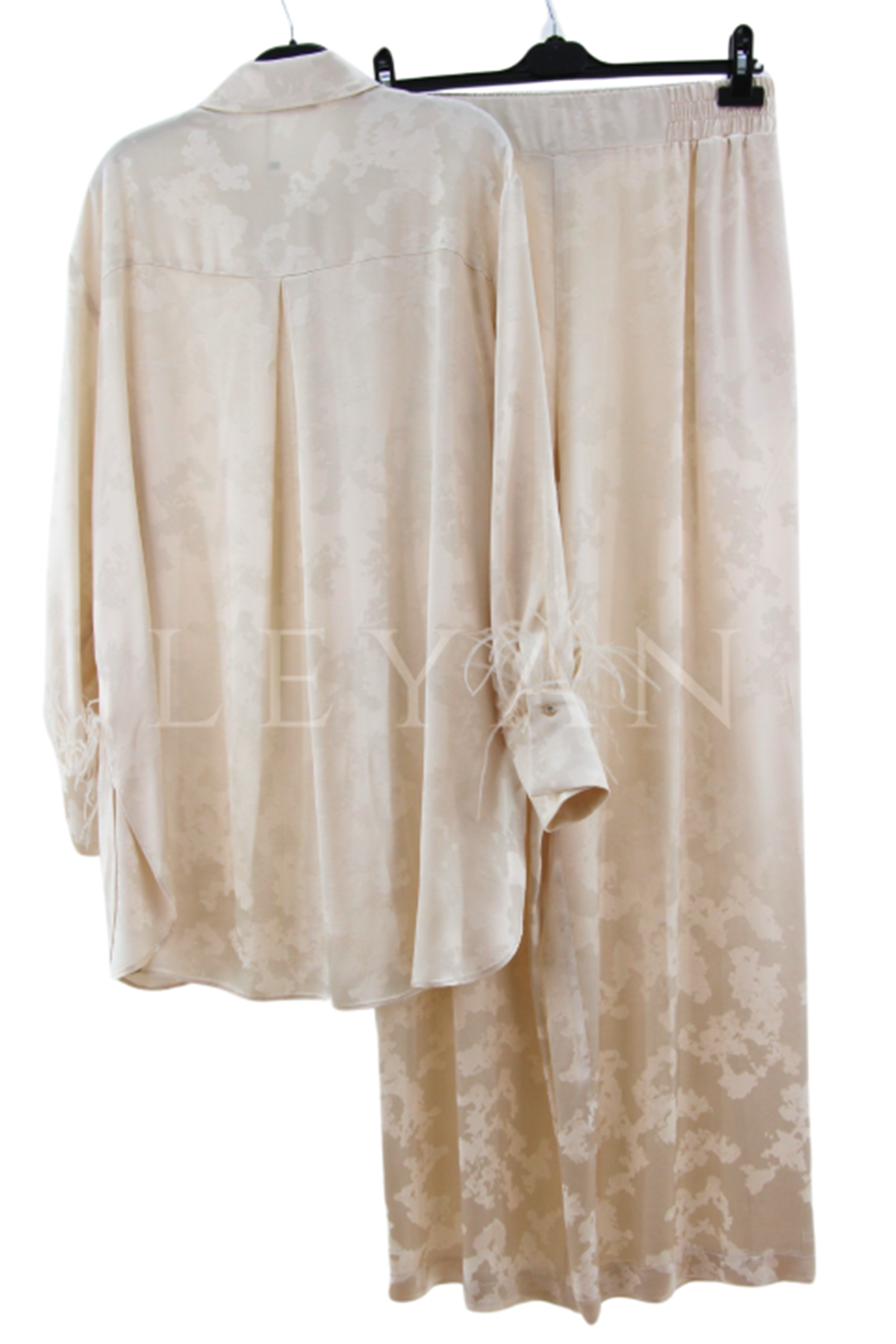 My312 Kolları Tüylü Jakarlı Takım- LYN03630 Bej