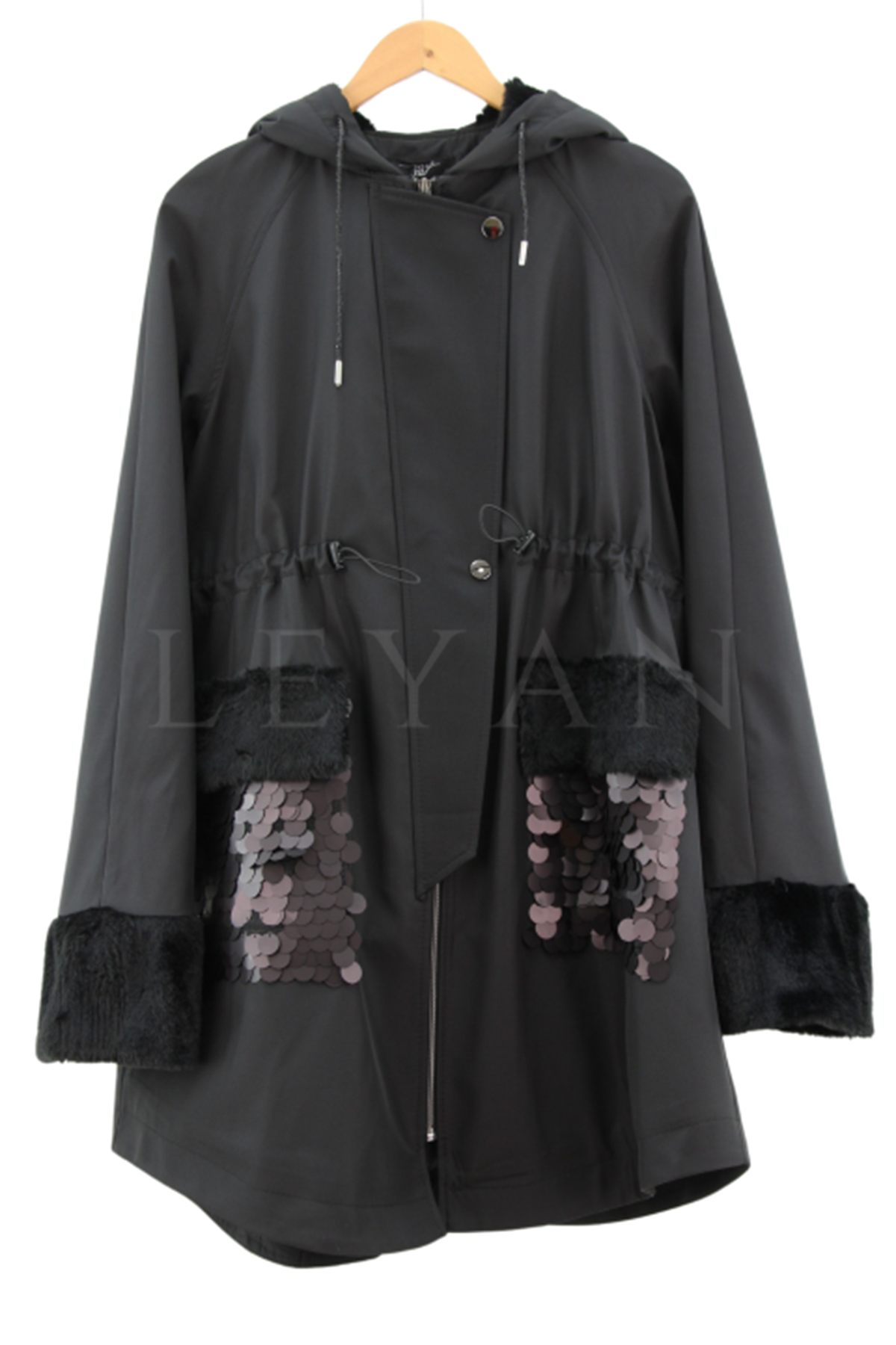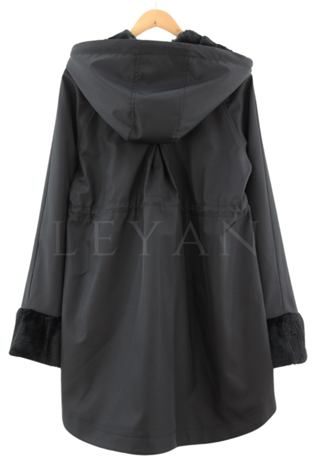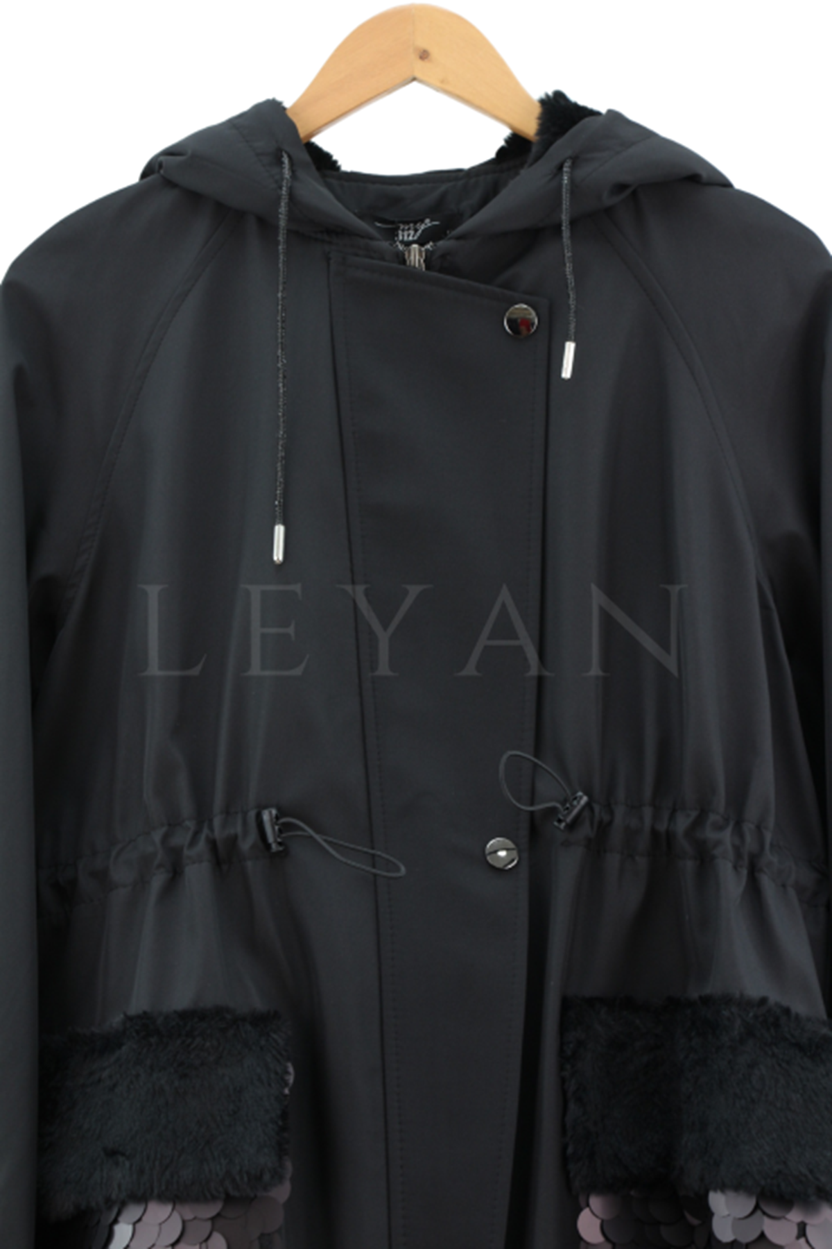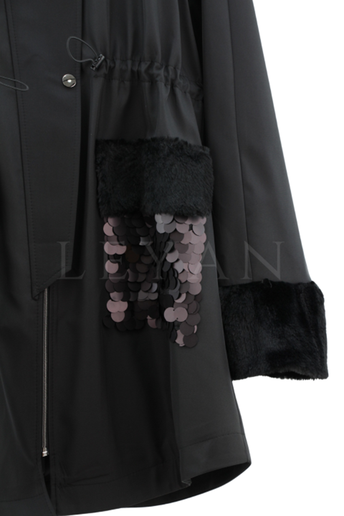 My312 Kürk Detaylı Kap- LYN03093 Siyah