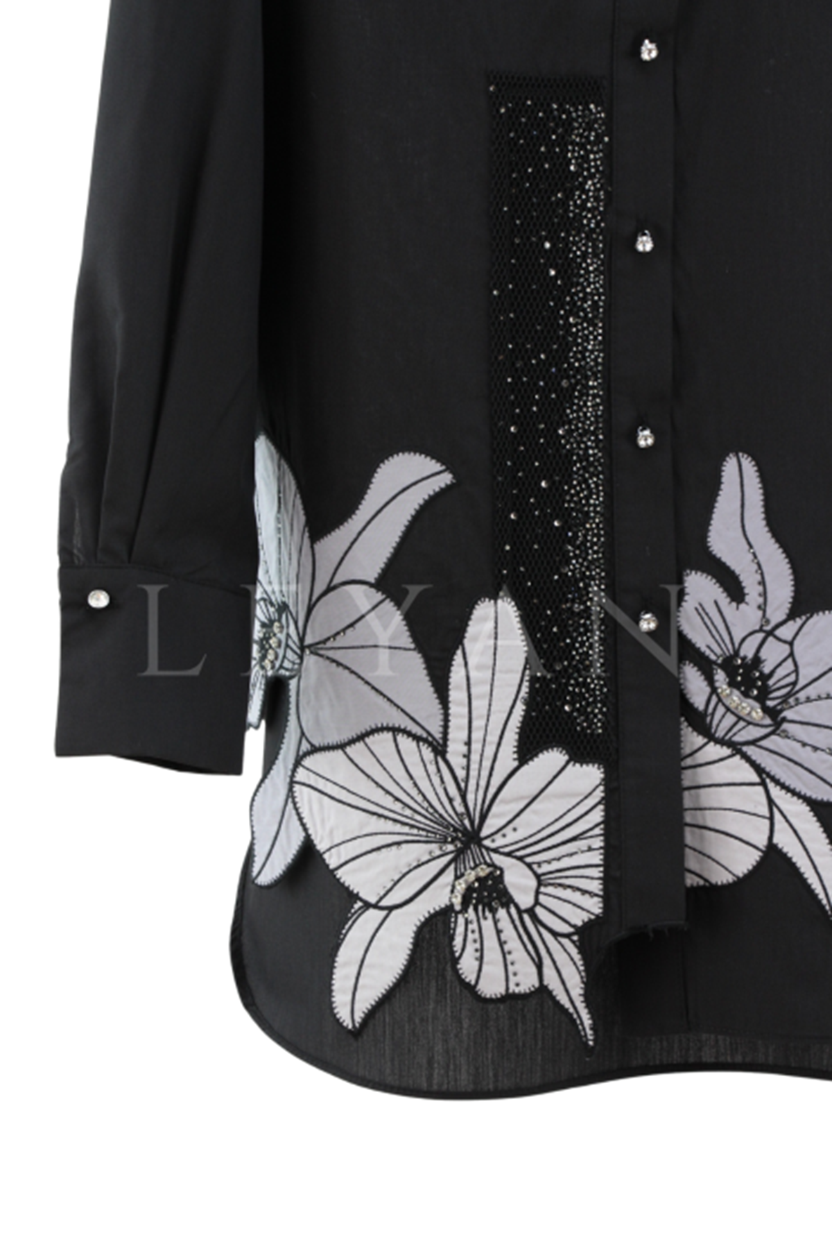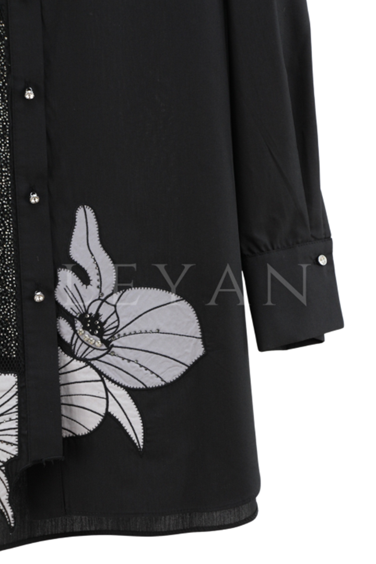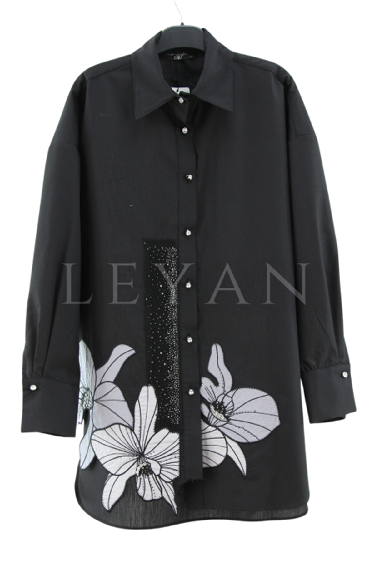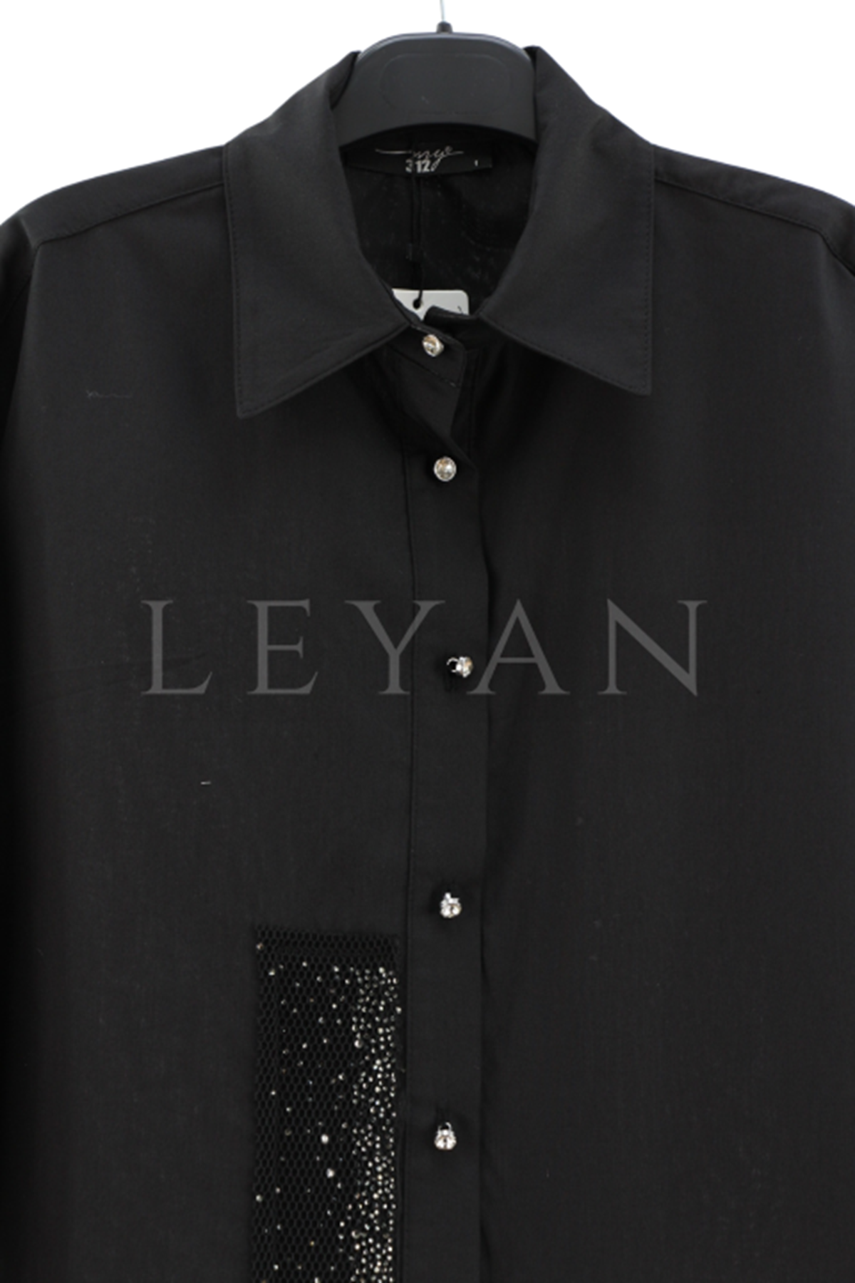 My312 Nakışlı Taşlı Gömlek- LYN04037 Siyah