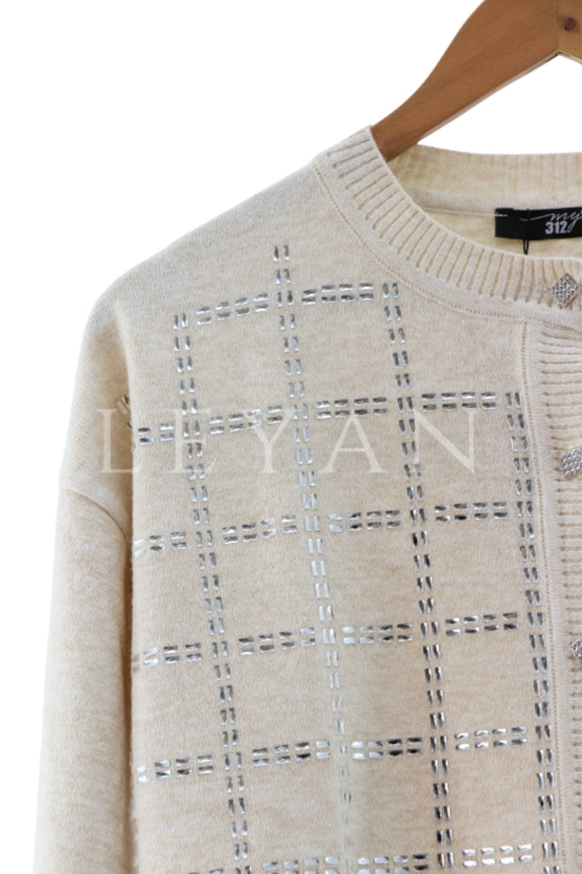 My312 Önü Taşlı Hırka- LYN03921 Bej