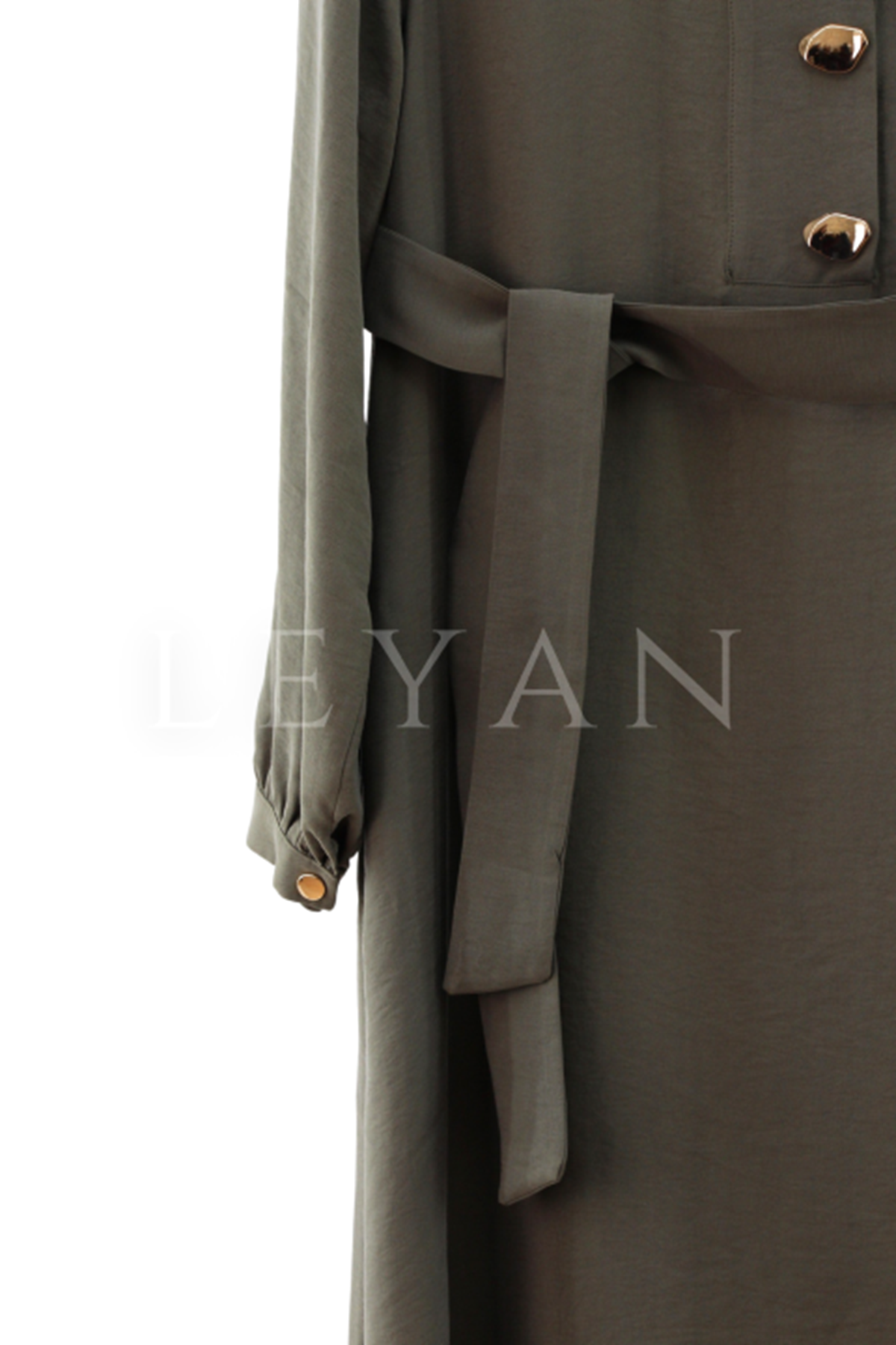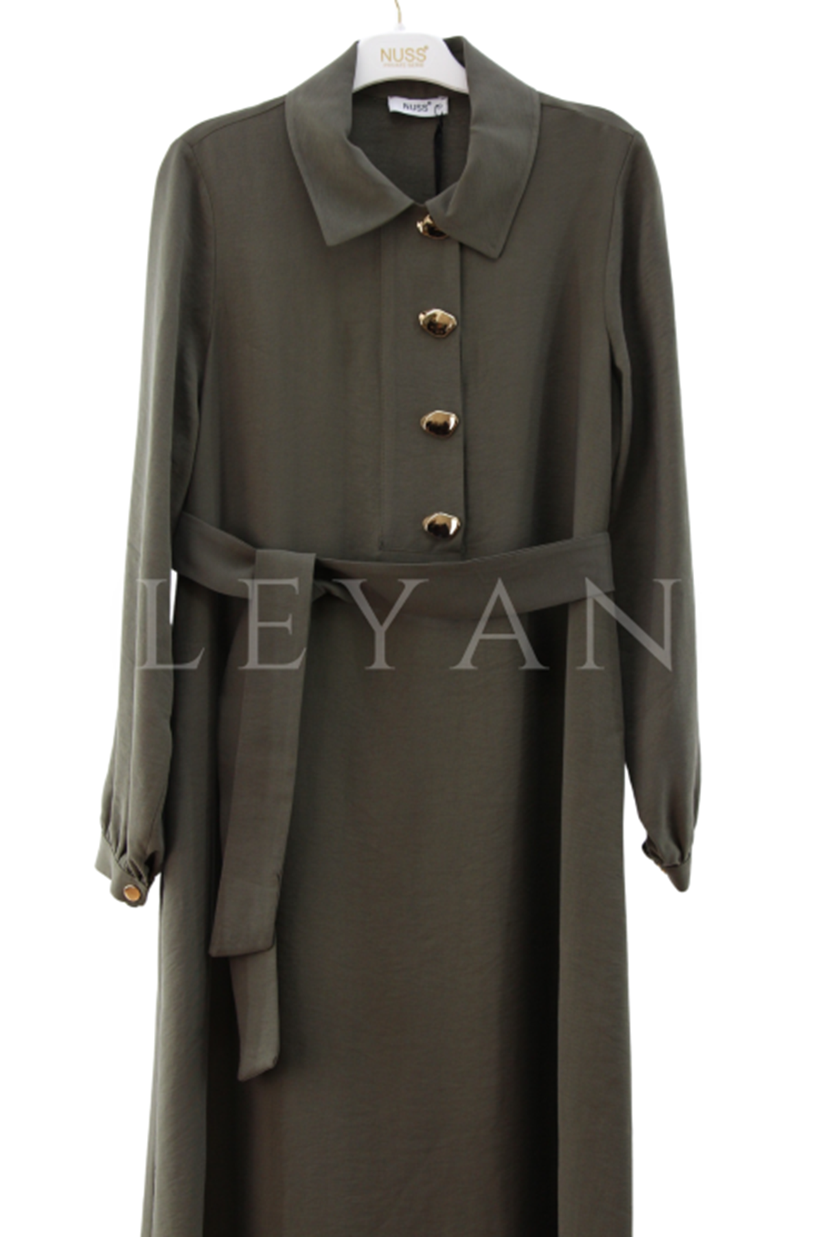 Nuss Çıtçıt Detaylı Elbise- LYN04180 Haki