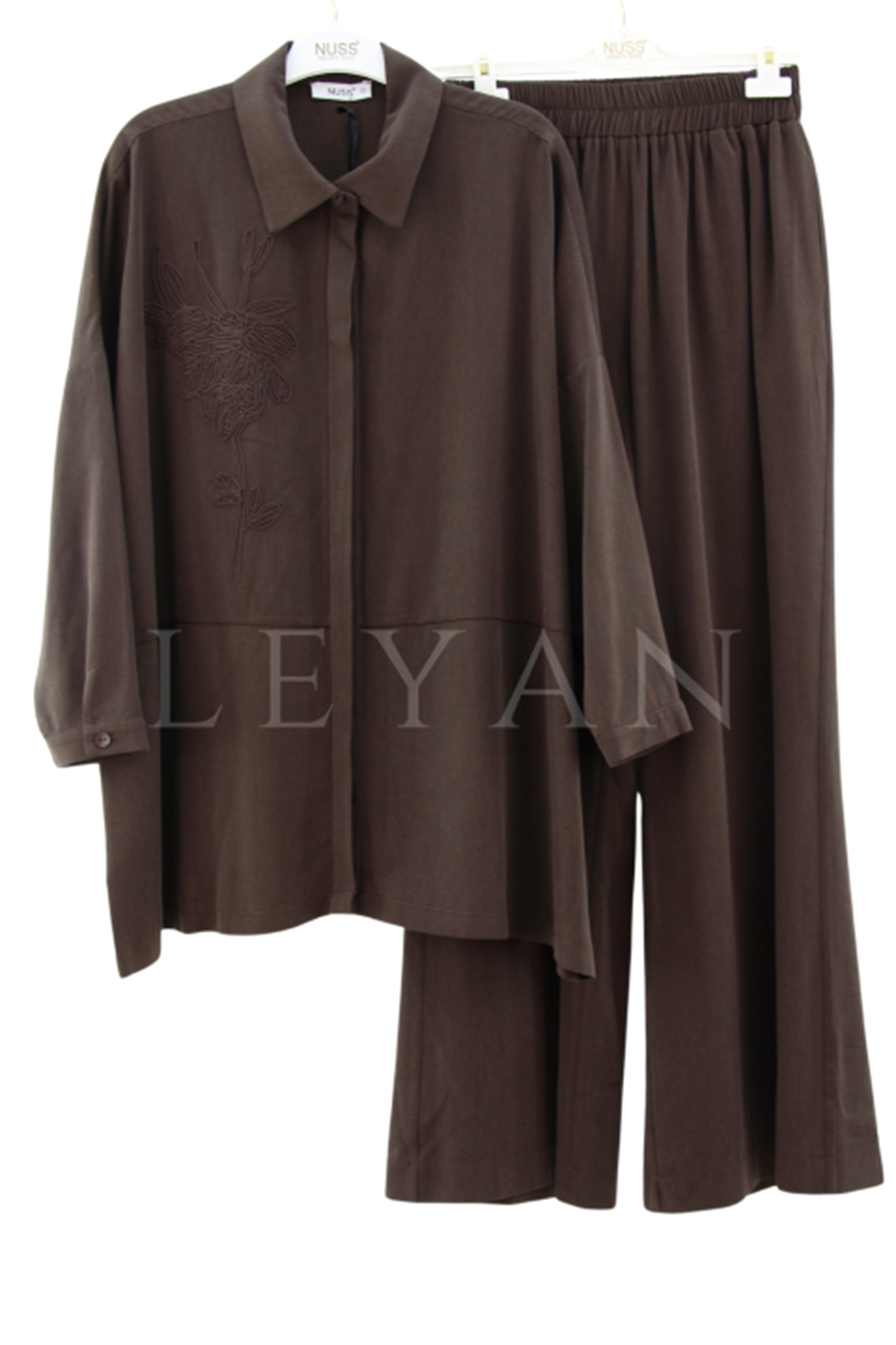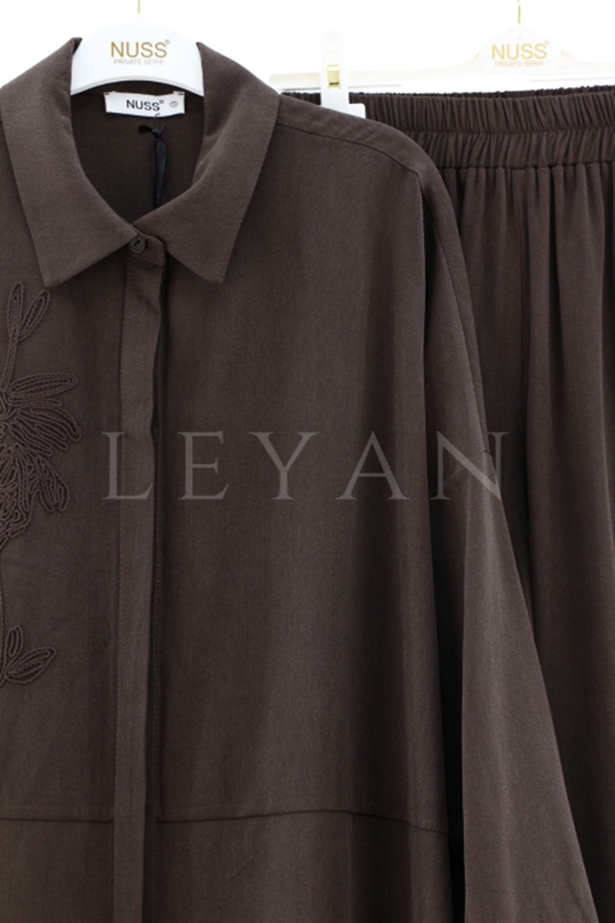 Nuss Nakışlı Tensel Takım- LYN04143 Kahve