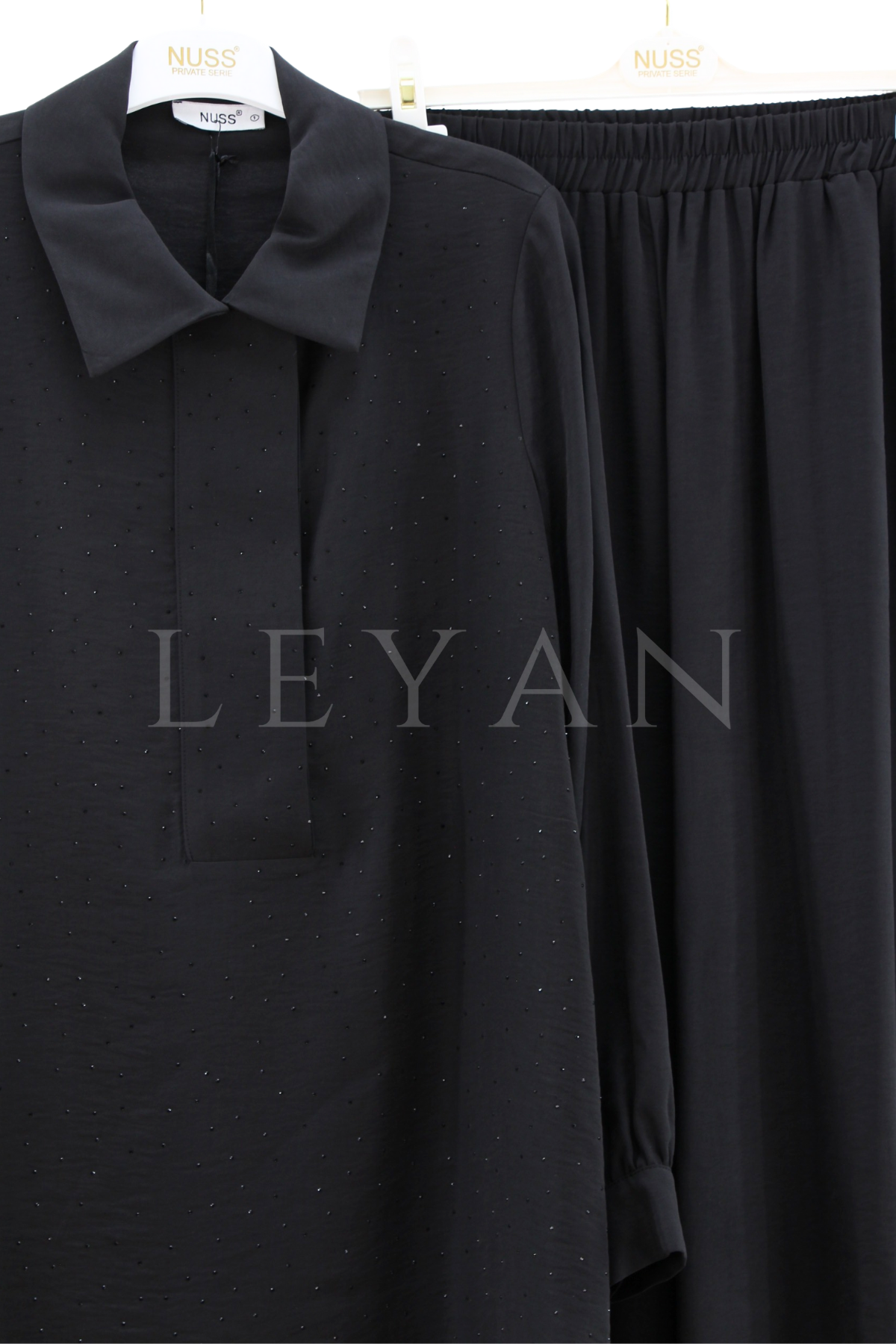 Nuss Taş Detaylı Takım- LYN04139 Siyah