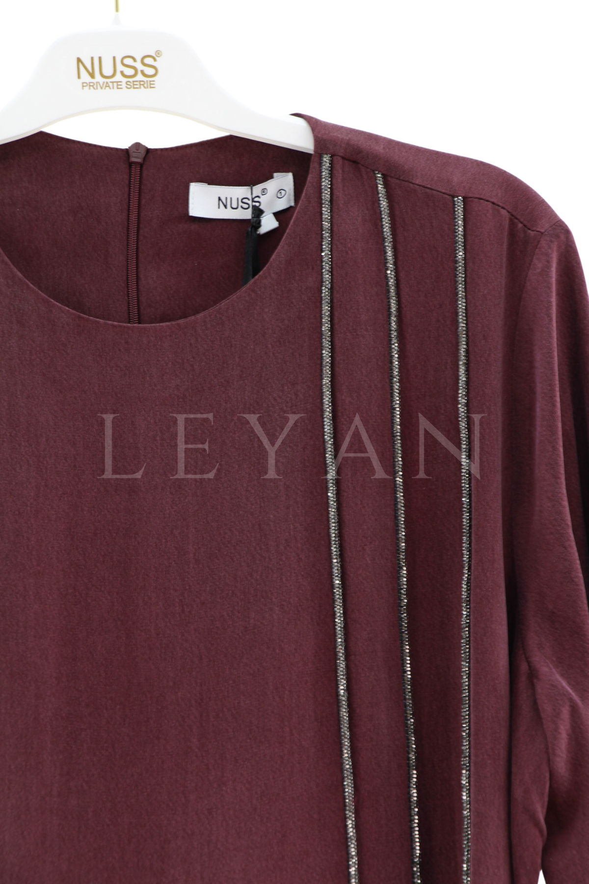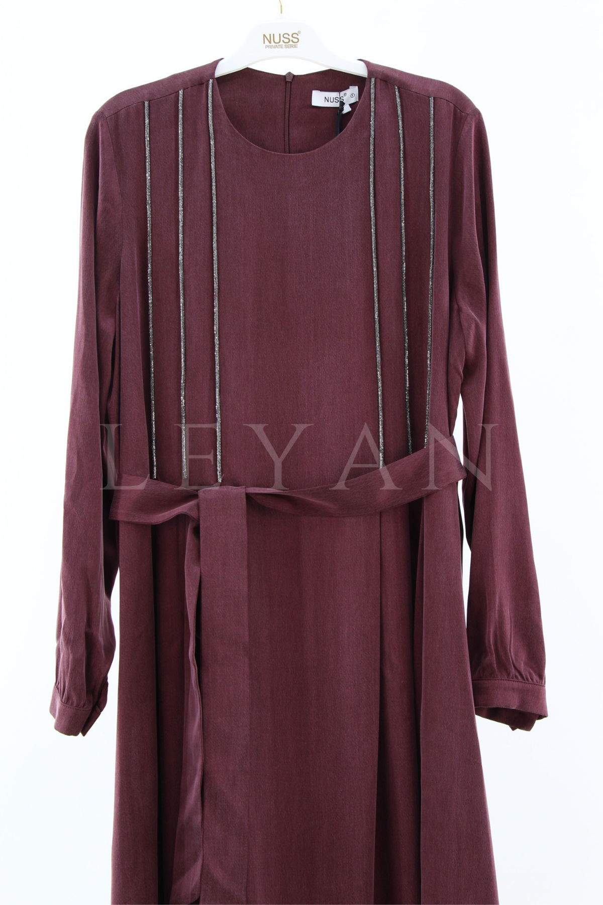 Nuss Taş İşleme Qupra Elbise- LYN03586 Bordo