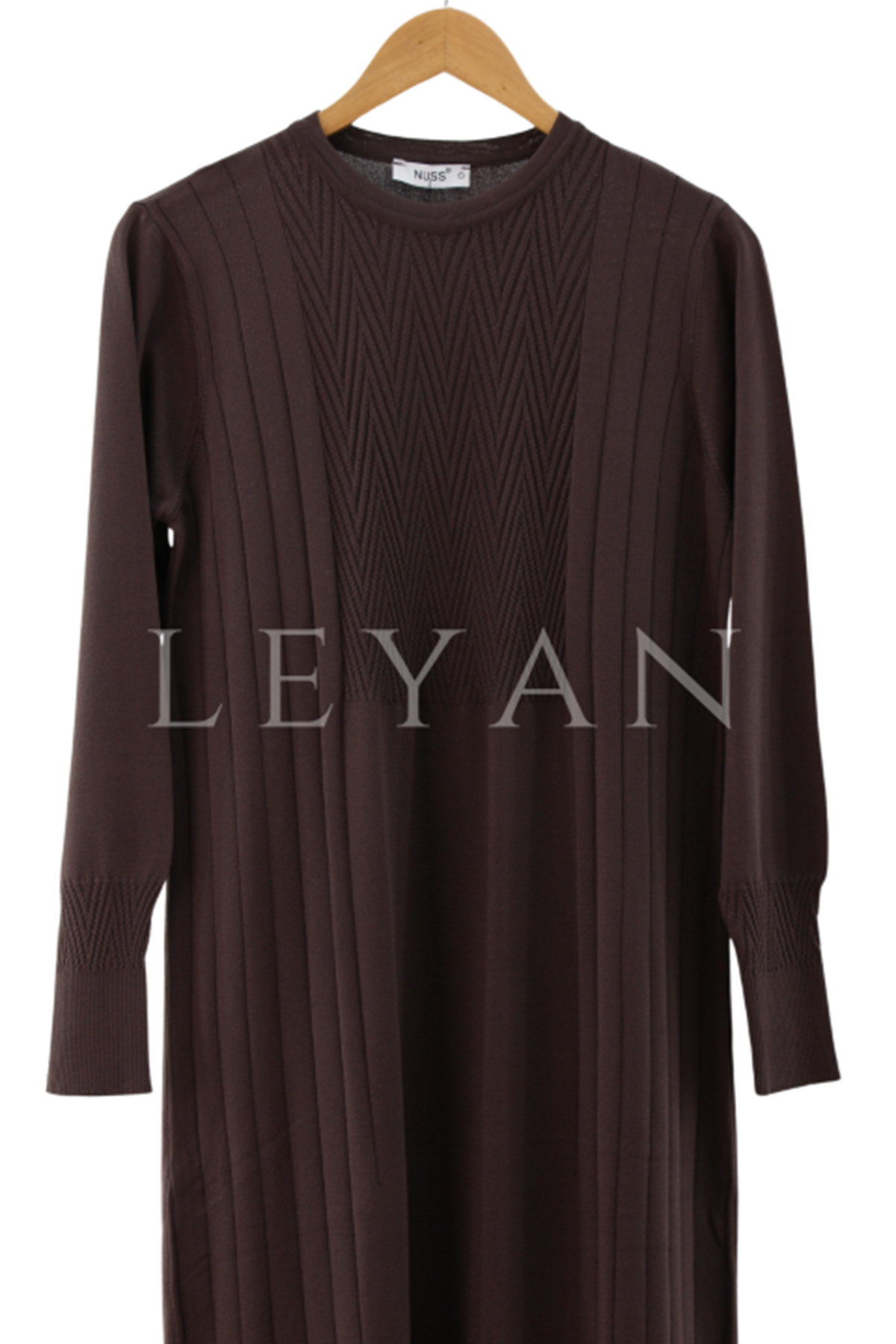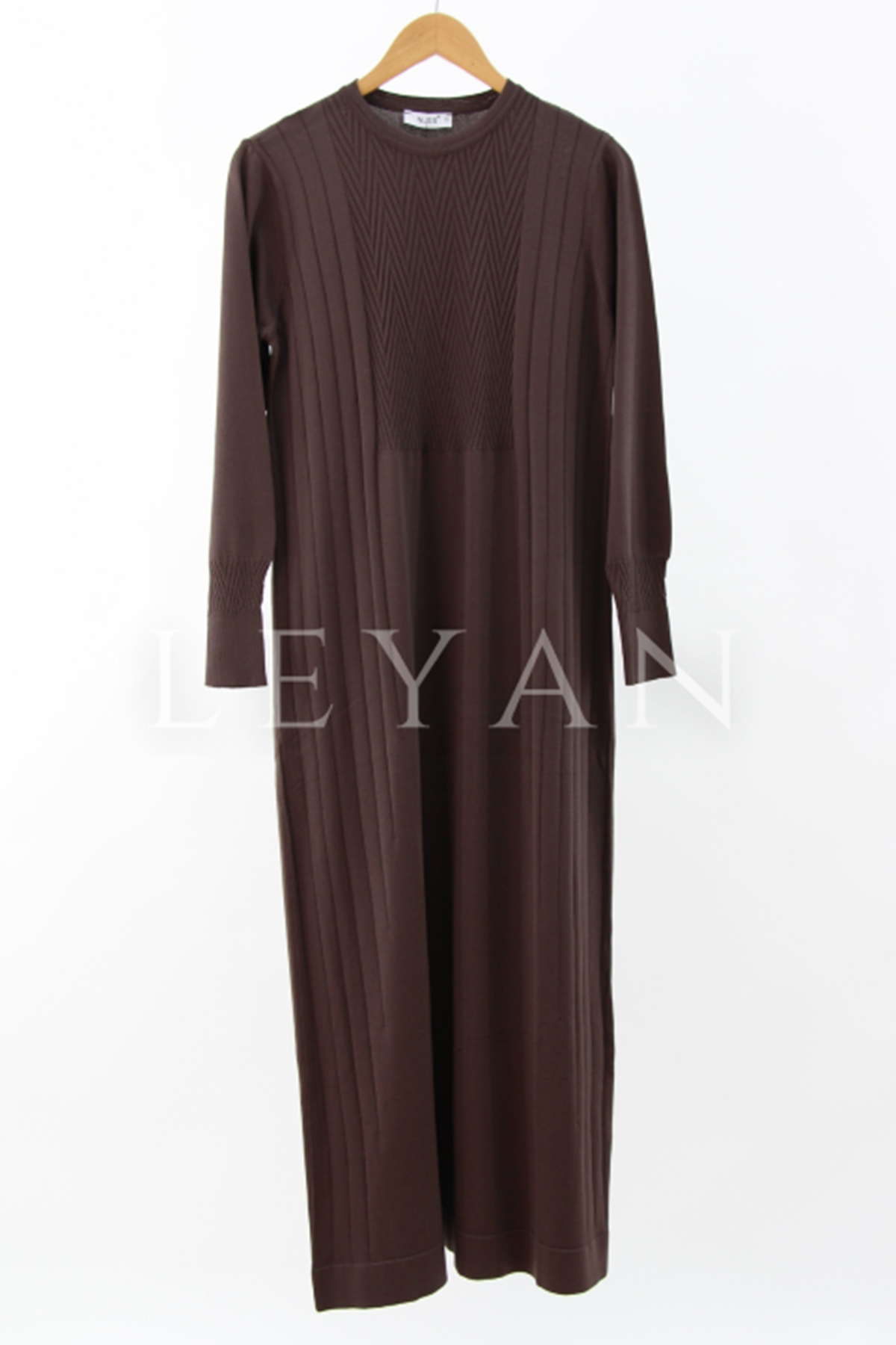 Nuss Zikzak Desenli Elbise- LYN03969 Kahve