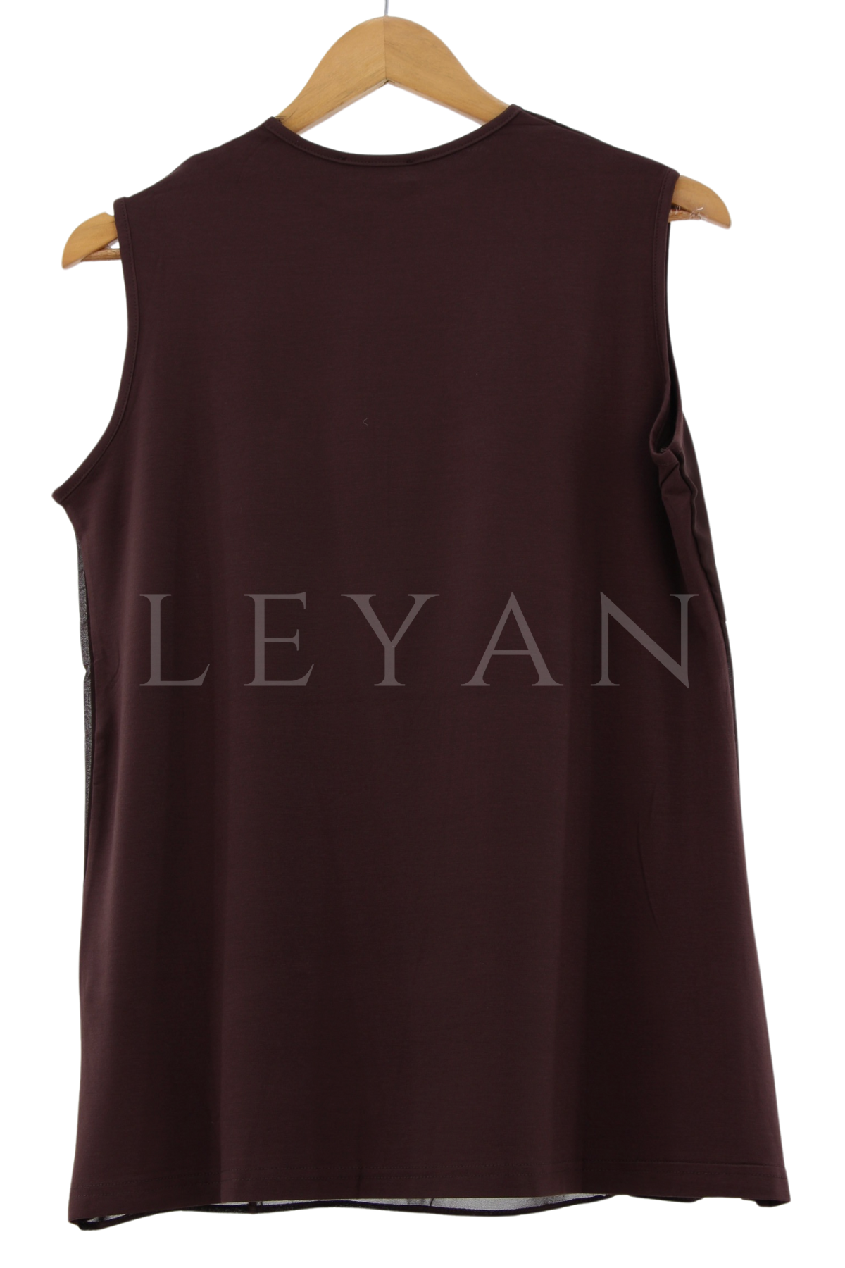 Önü Şifon Detaylı Kolsuz İçlik- LYN01386 Kahve