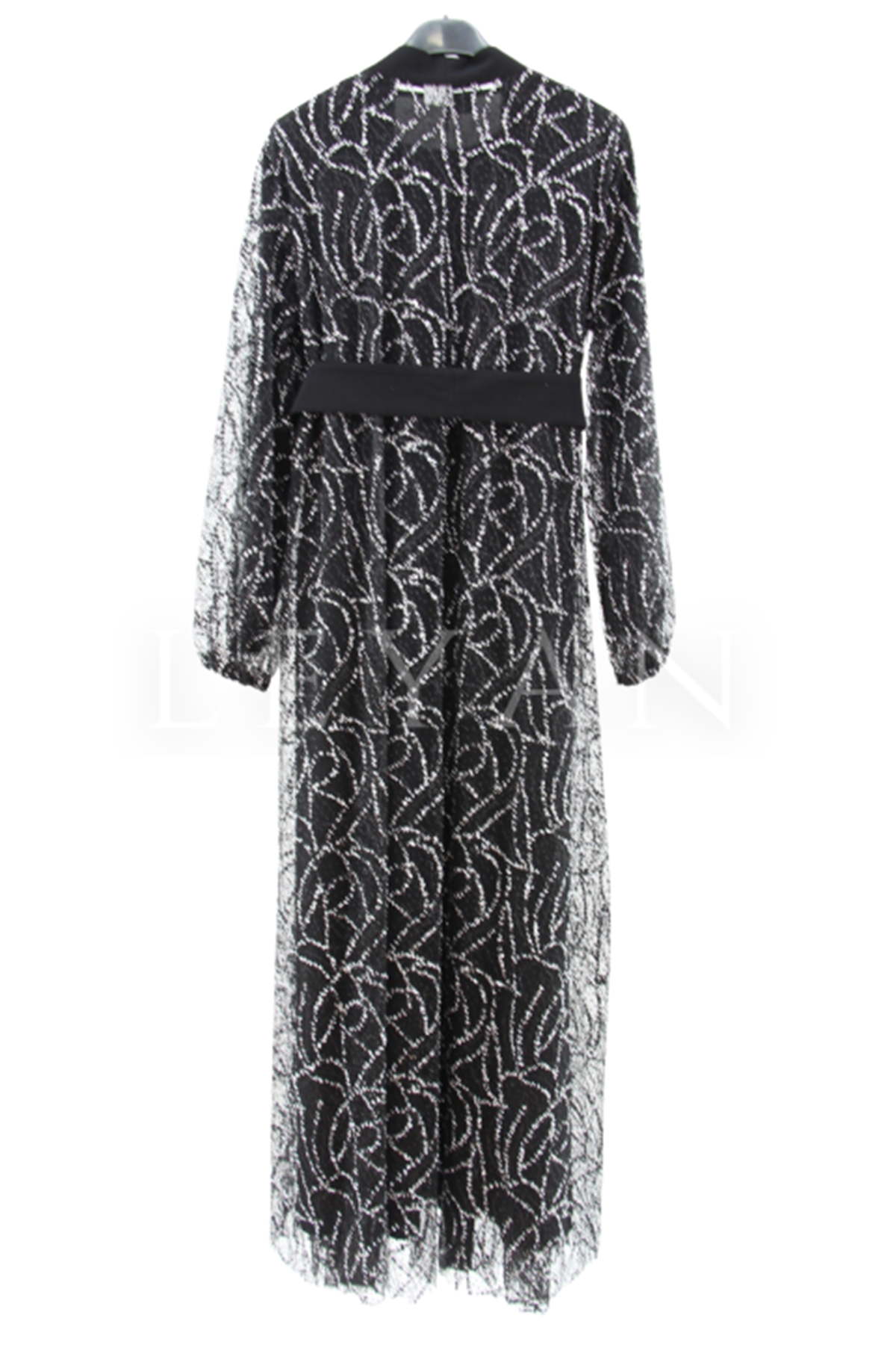 Tül Detaylı Güpür Ferace- LYN03526 Lacivert