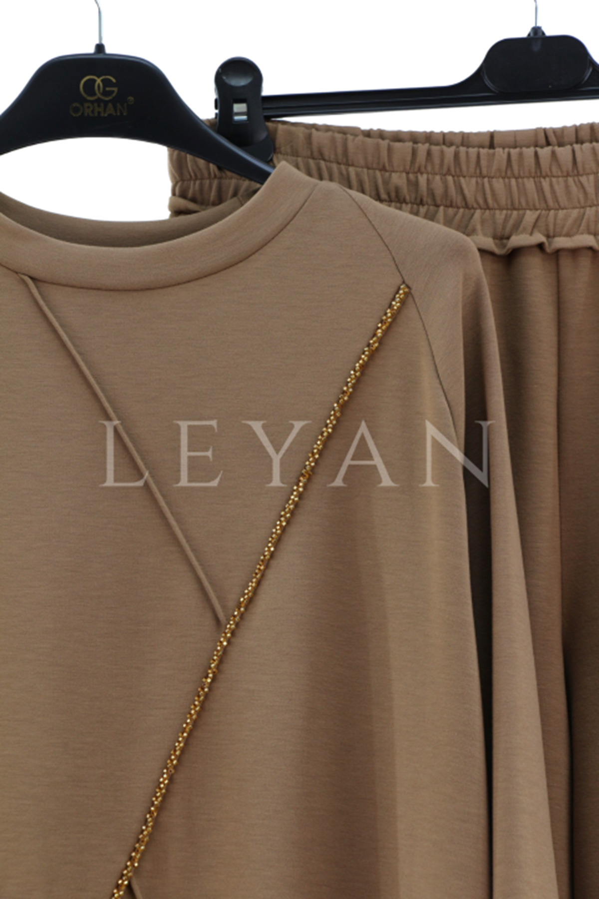 Orhan Store Boncuk İşlemeli Takım- LYN04206 Taba