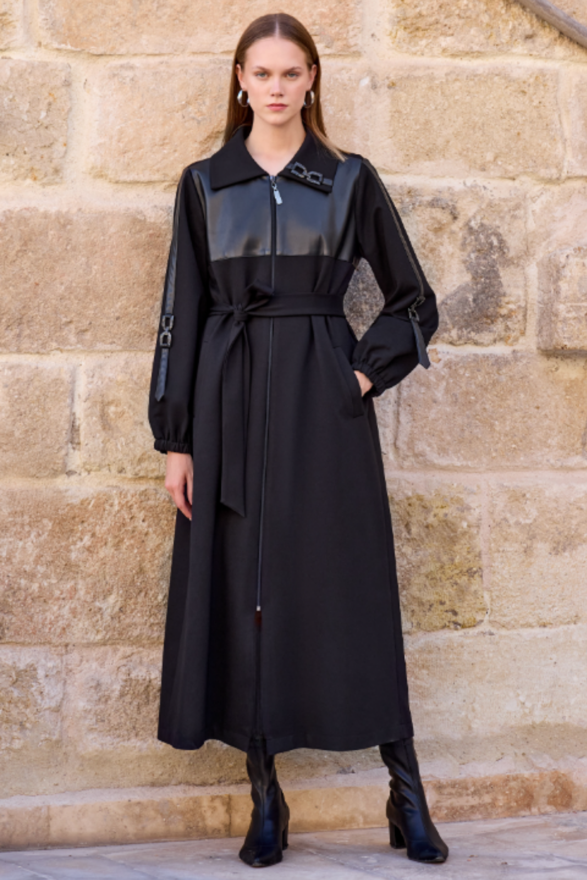 Editör Notu: 40-48 beden aralığında, deri detayı ile hareketlendirilmiş, çelik örme kumaş kap modelimiz Leyan’da..