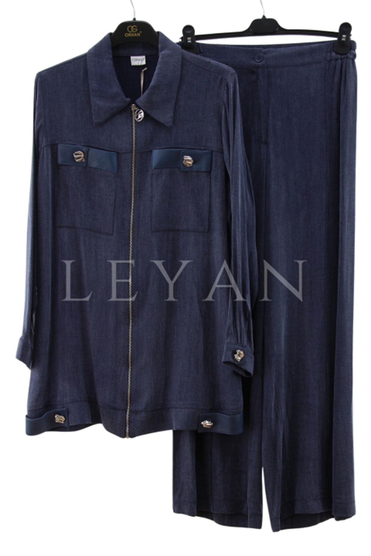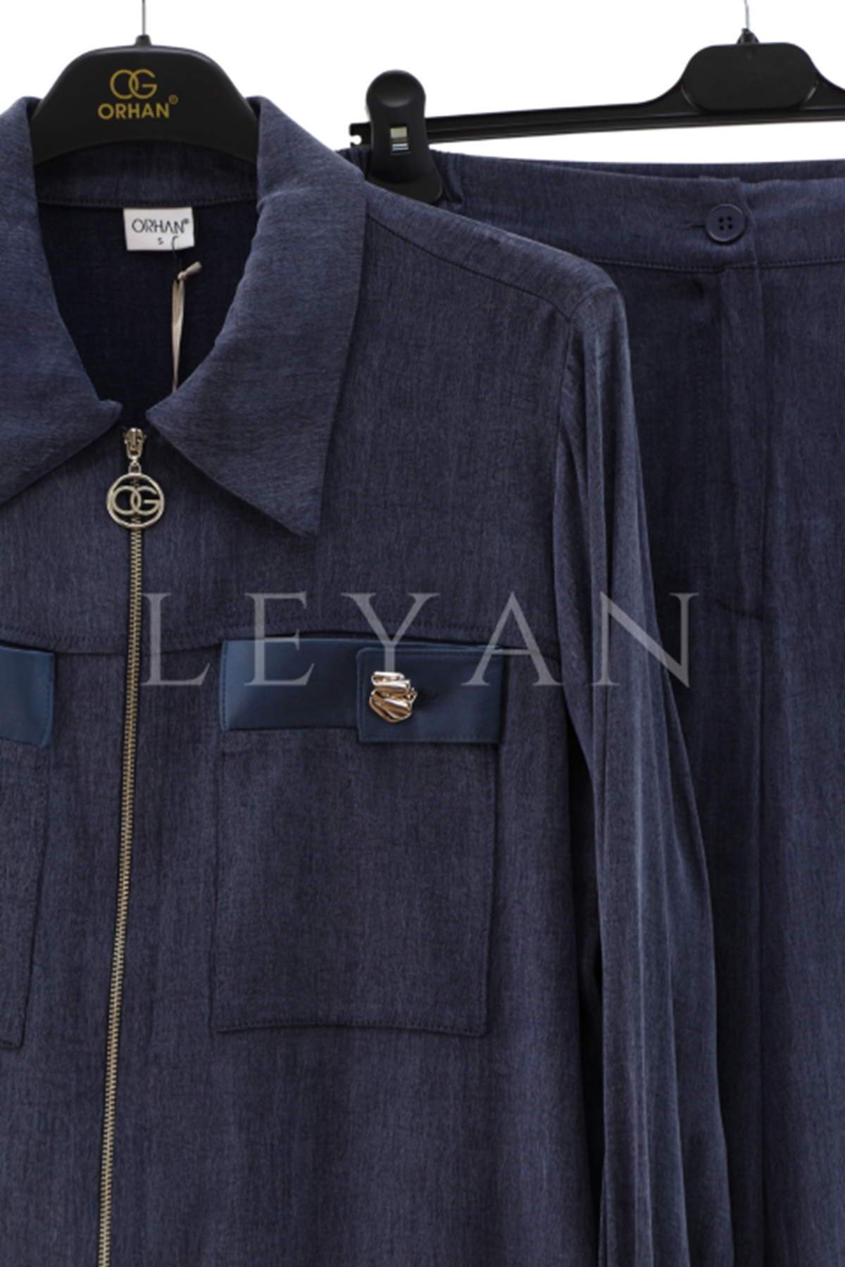 Orhan Store Deri Detaylı Takım- LYN04002 Lacivert