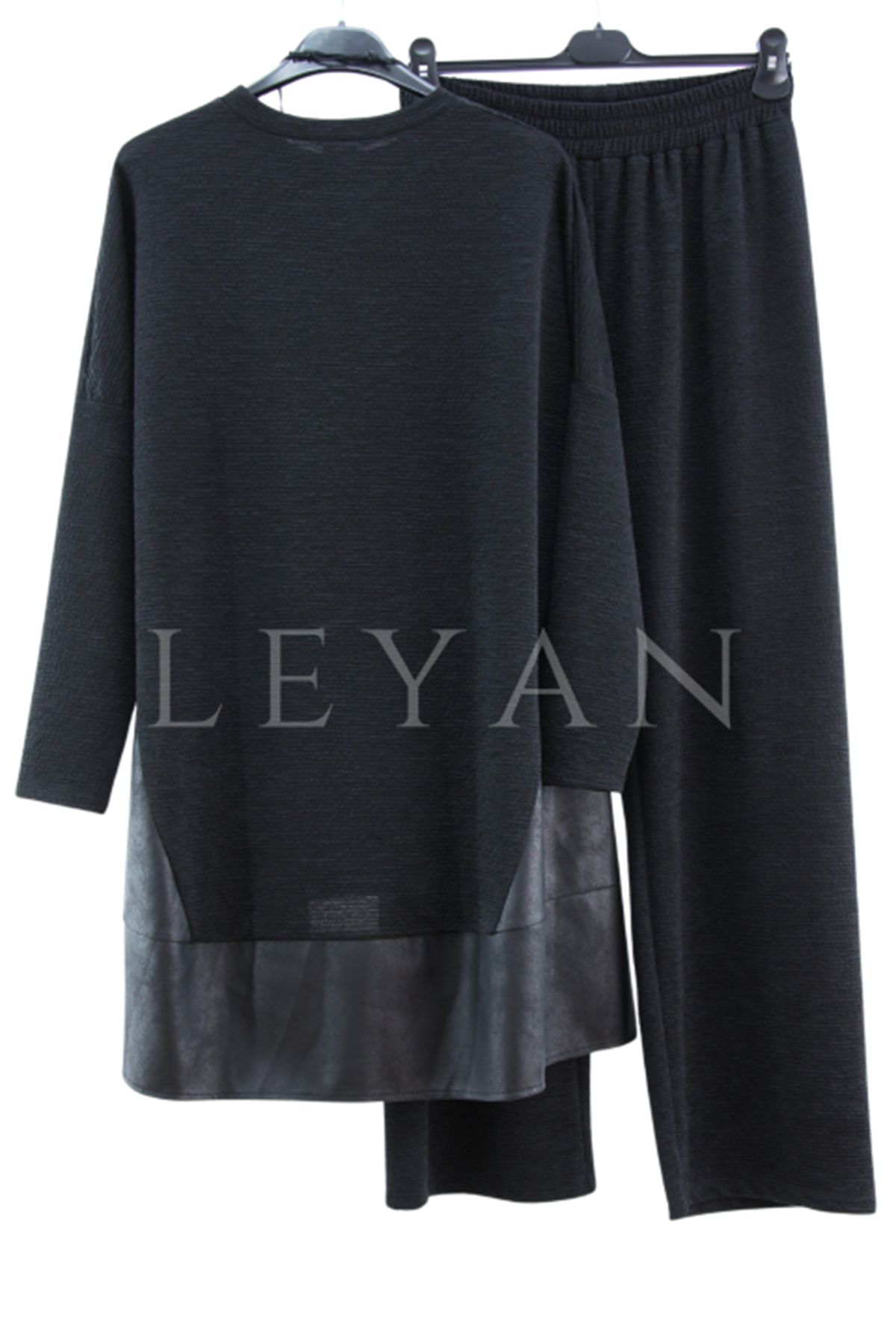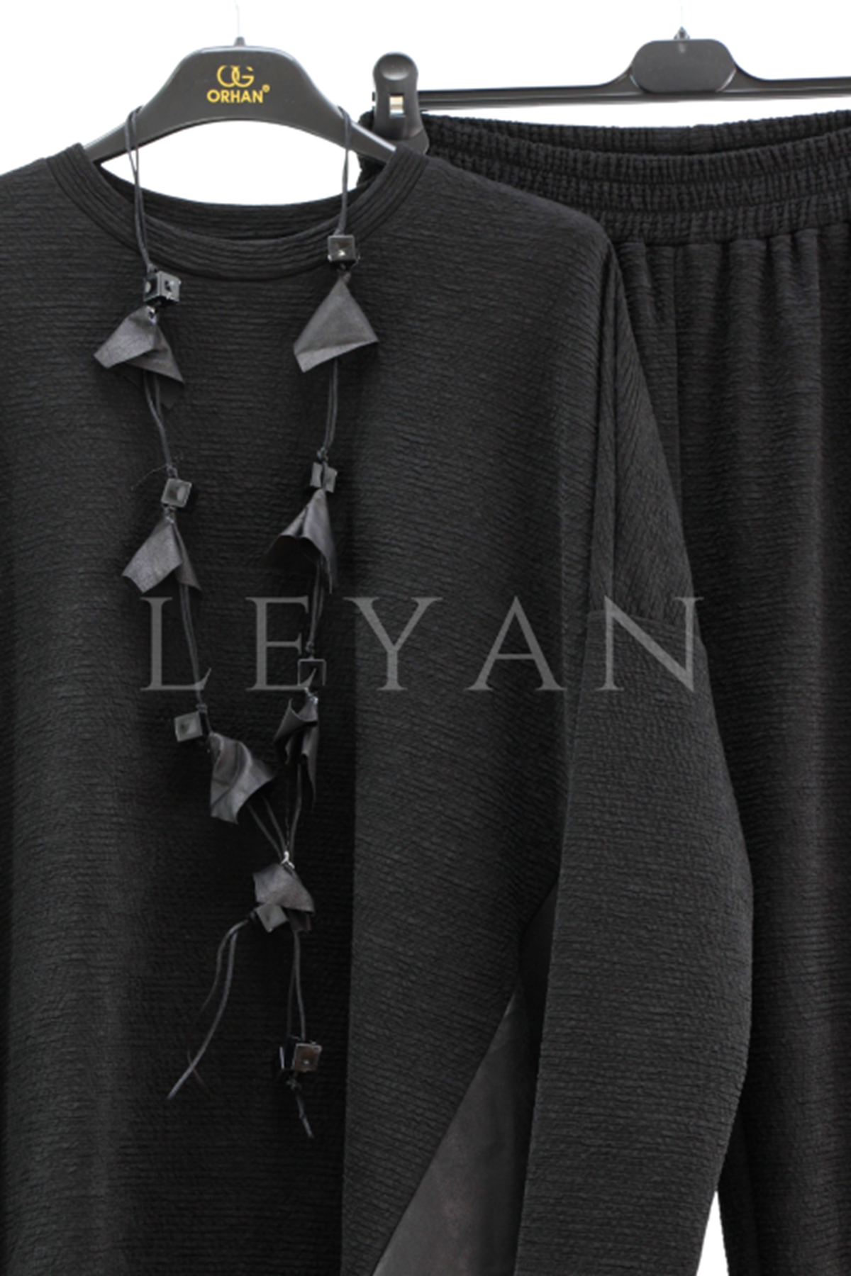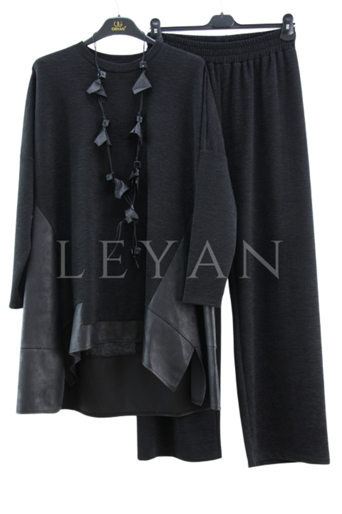 Orhan Store Deri Detaylı Takım- LYN04354 Siyah