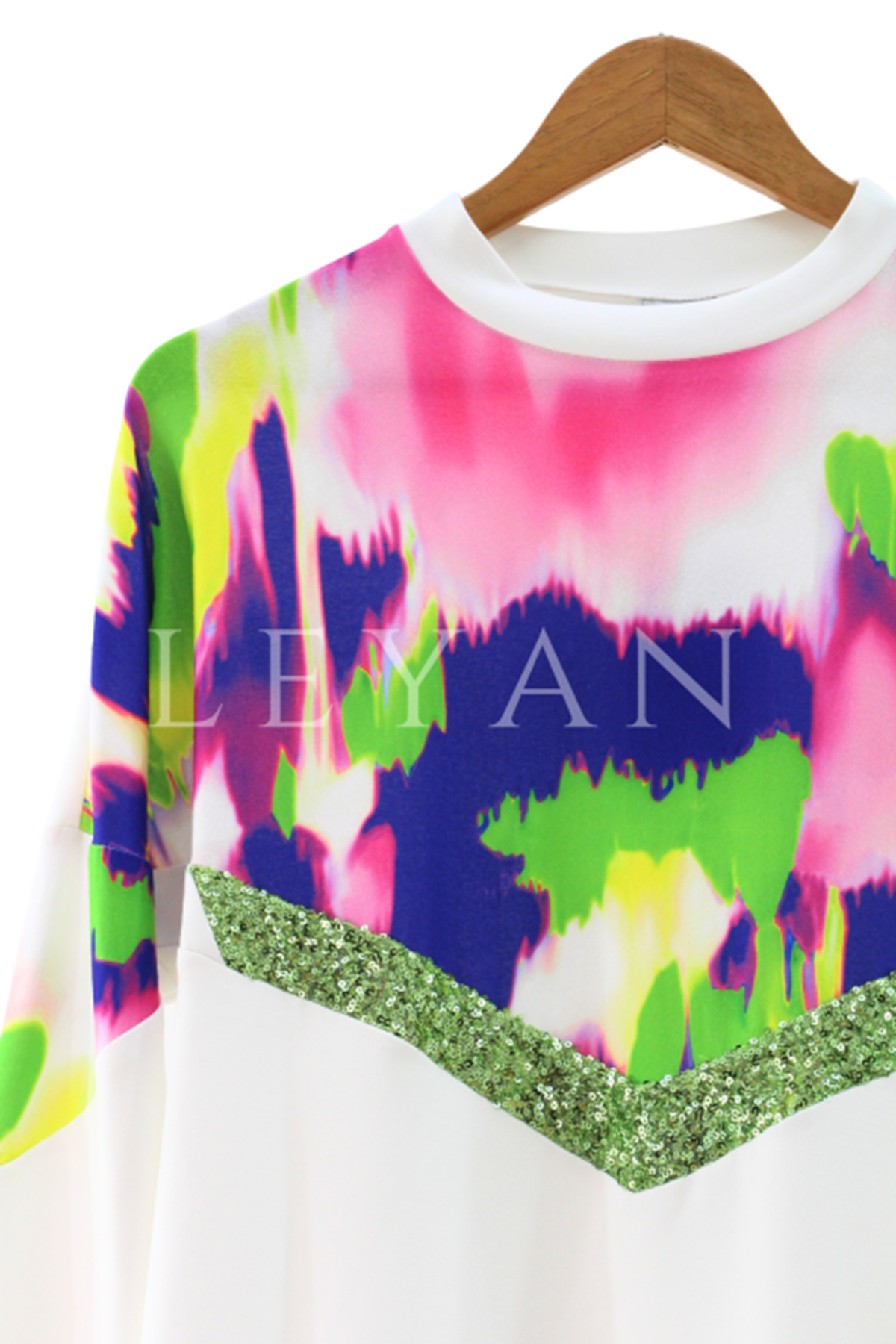 Orhan Store Desenli Payet Detaylı Tunik- LYN03841 Yeşil