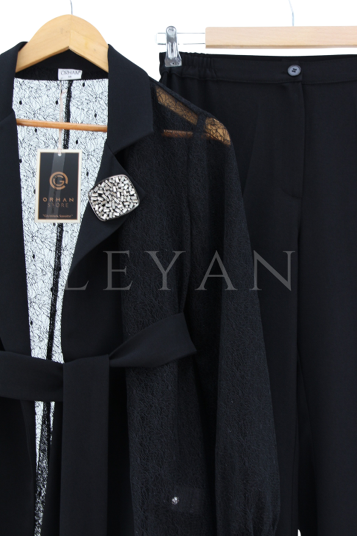 Orhan Store Güpür Ceketli Takım- LYN03820 Siyah