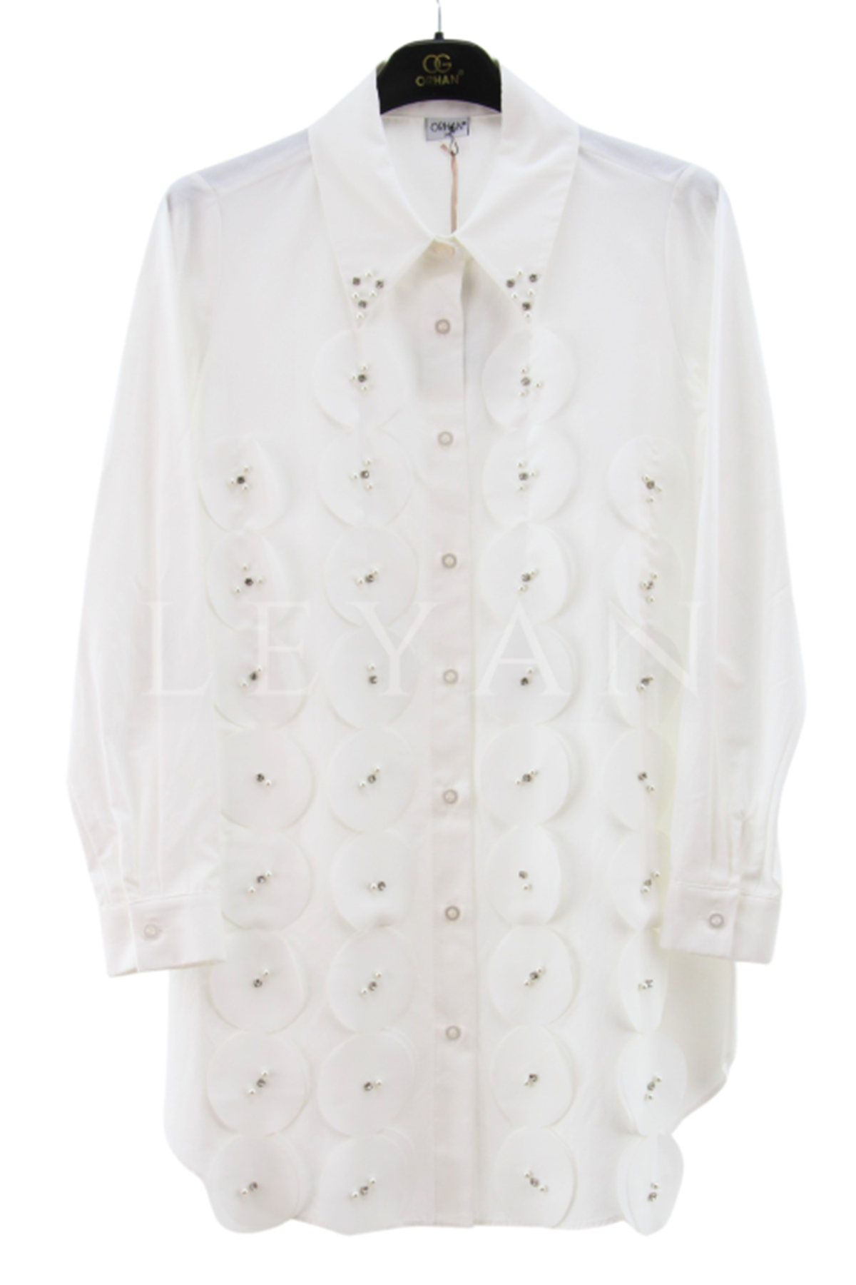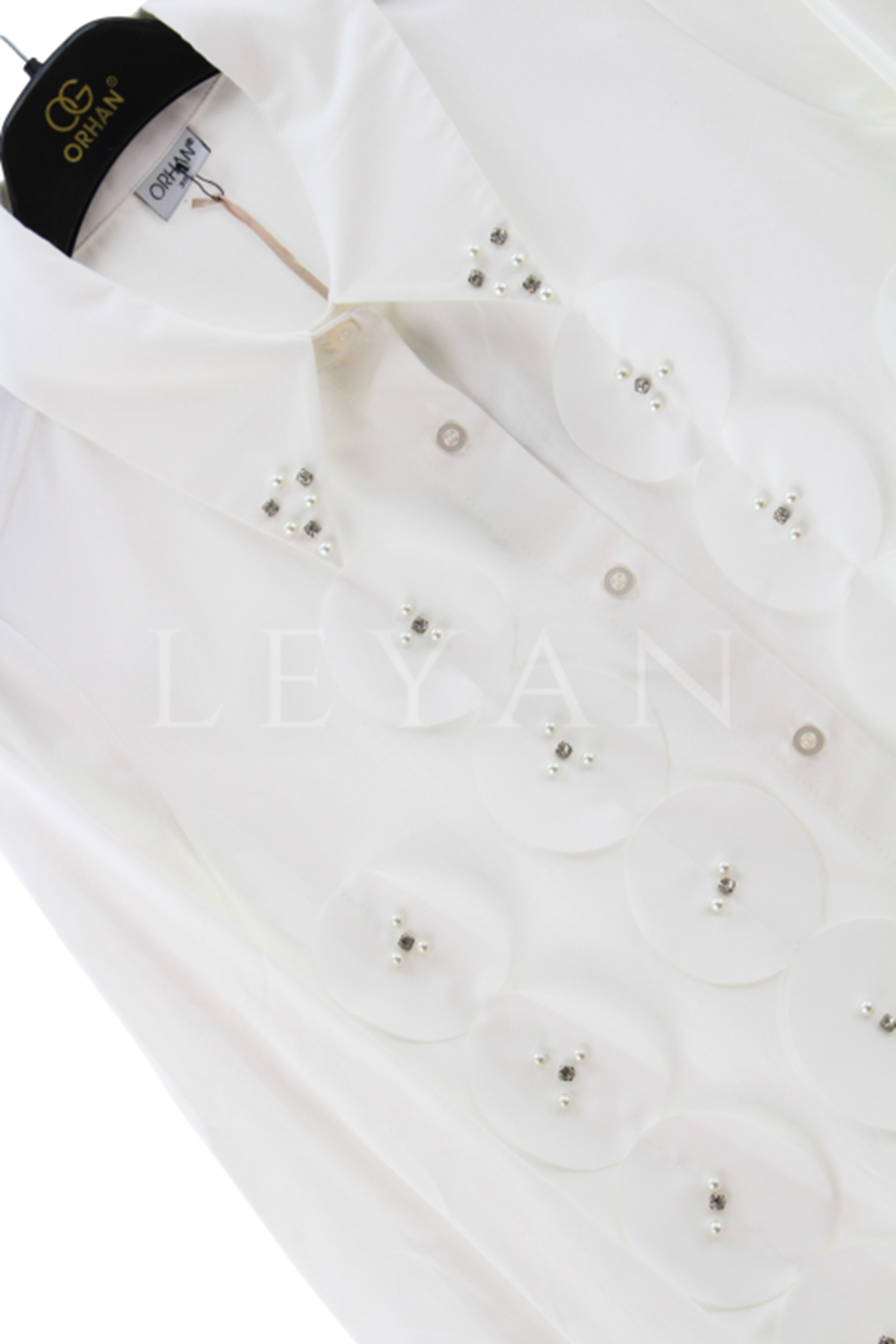 Orhan Store İncili Lazer Kesim Gömlek- LYN03410 Ekru