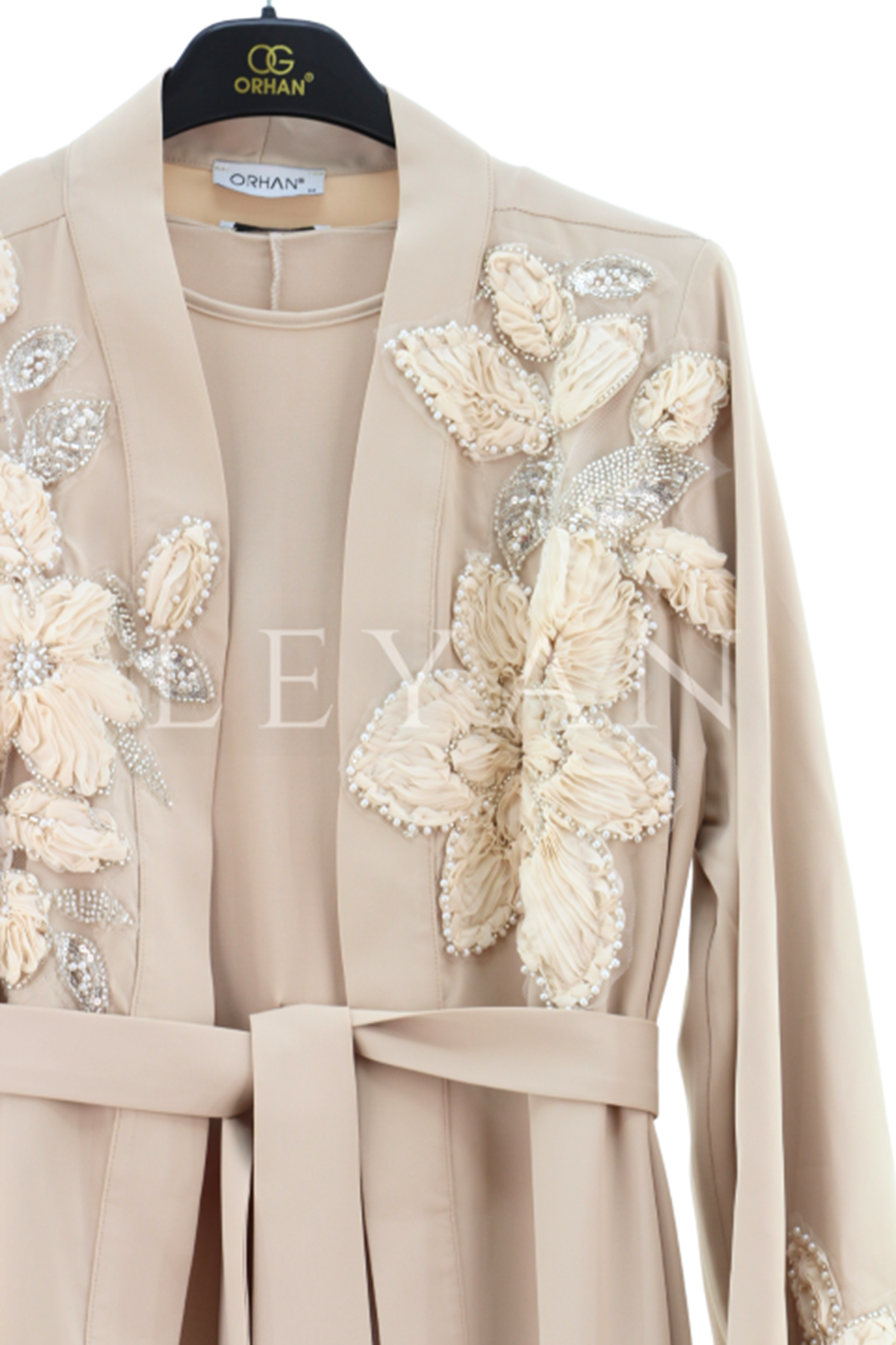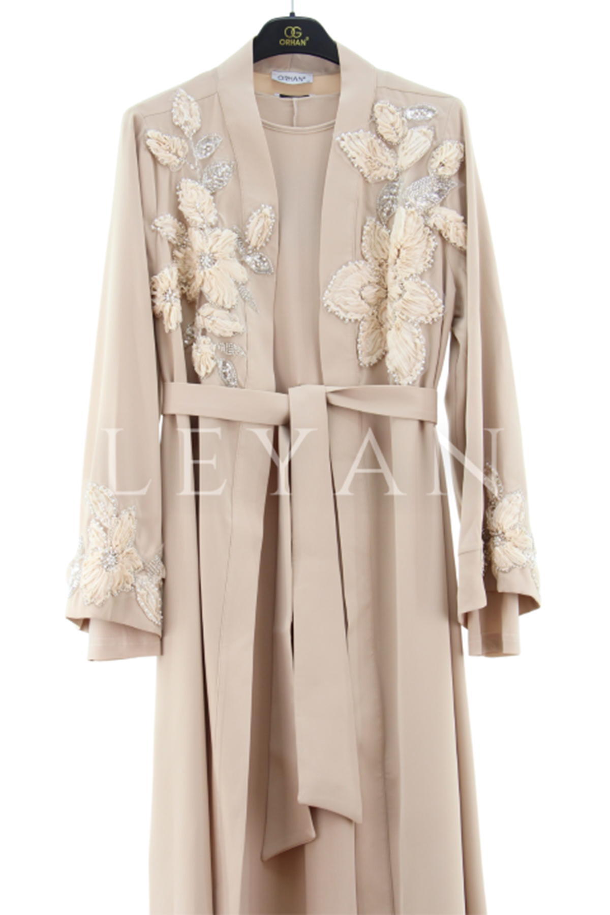 Orhan Store İşlemeli Abaya Takım- LYN03823 Bej