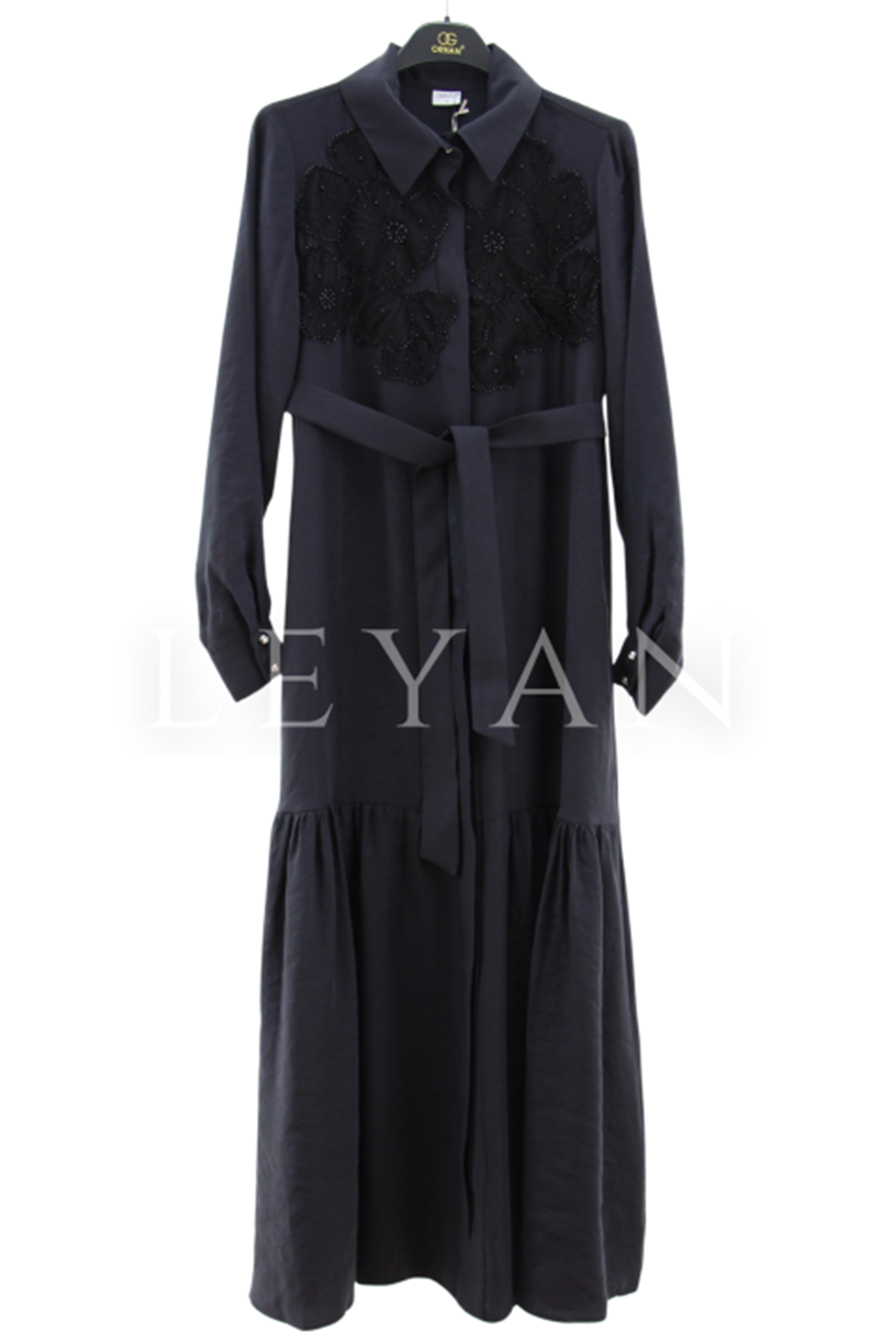 Orhan Store İşlemeli Elbise- LYN03810 Siyah