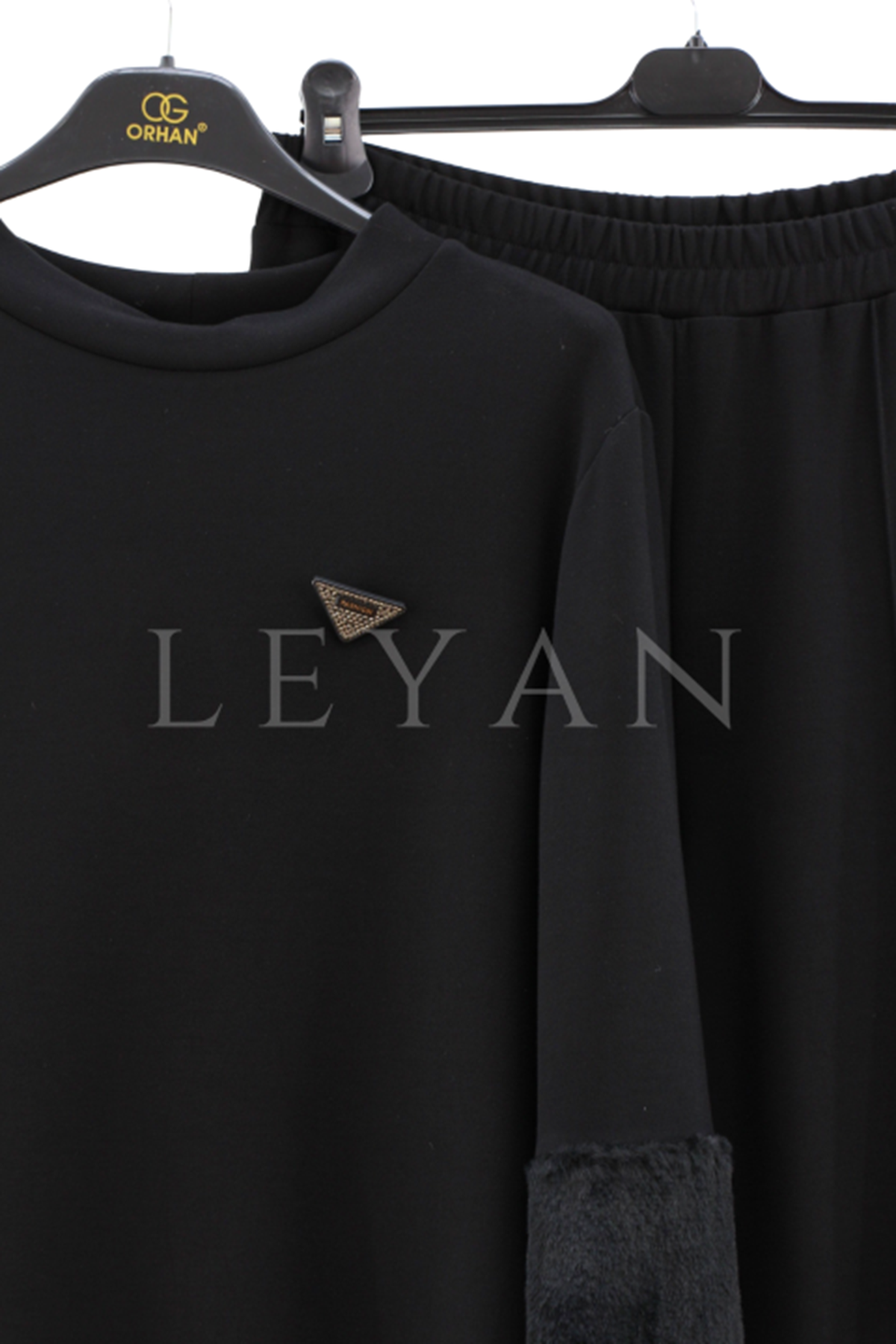 Orhan Store Kolu Kürk Detaylı Takım- LYN02896 Siyah