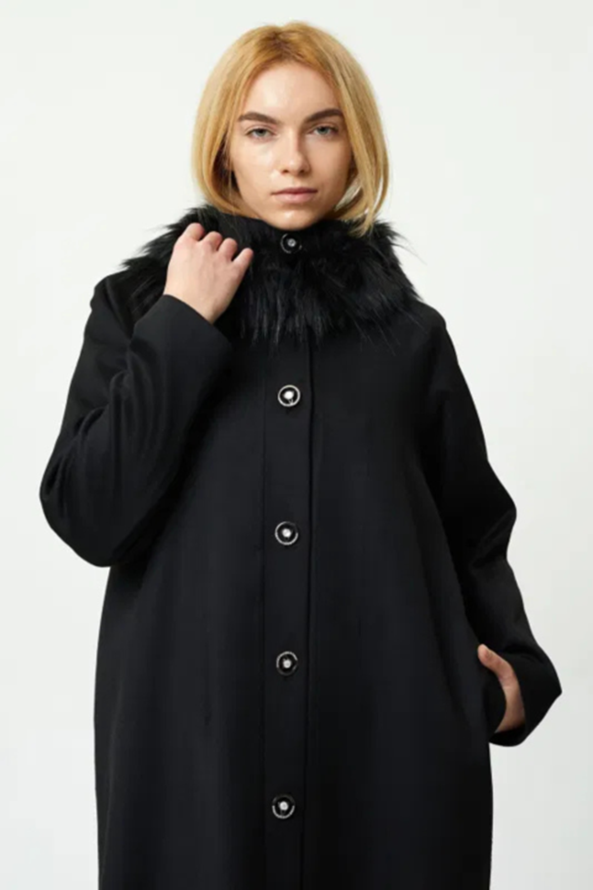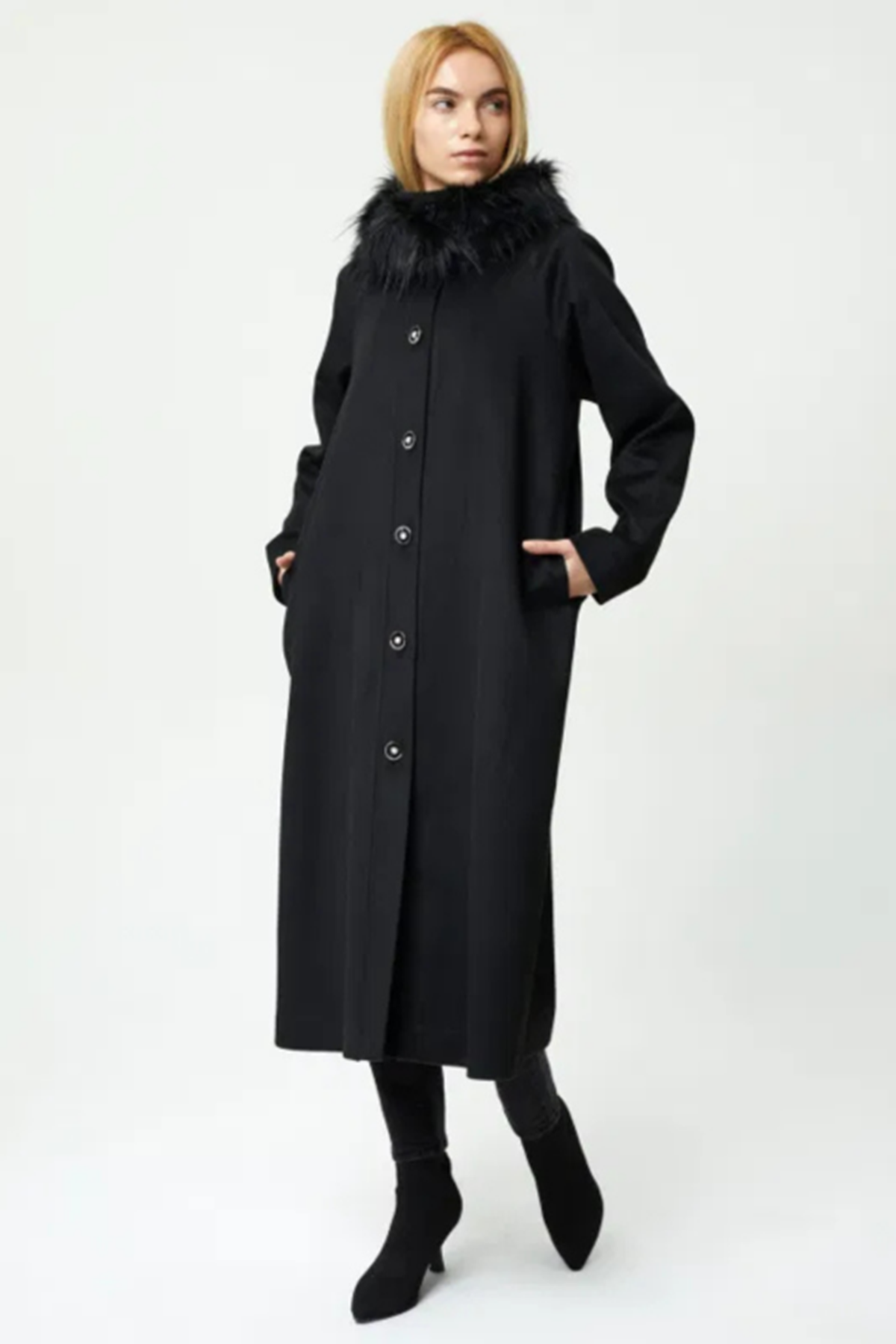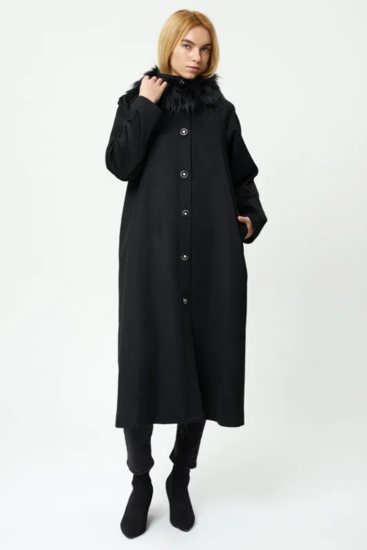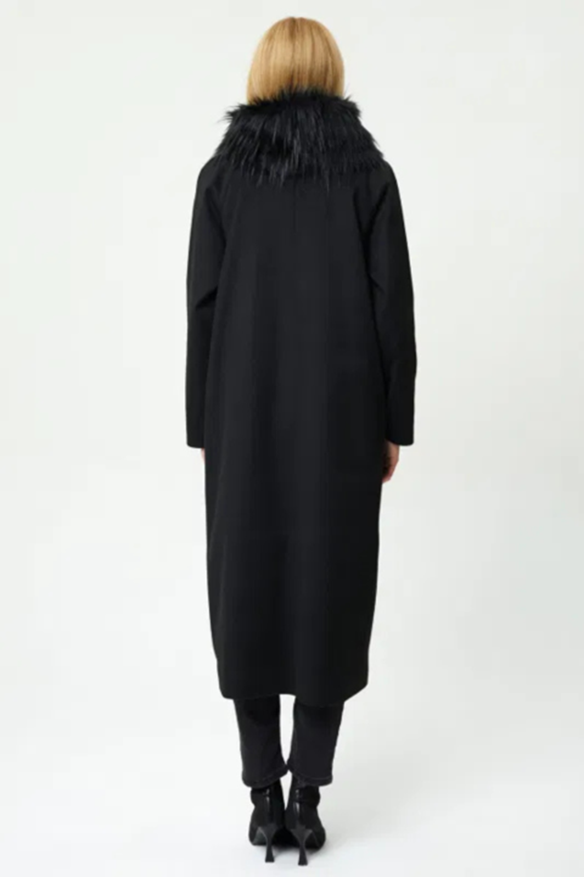 Orhan Store Kürklü Kaşe Kaban- LYN03261 Siyah