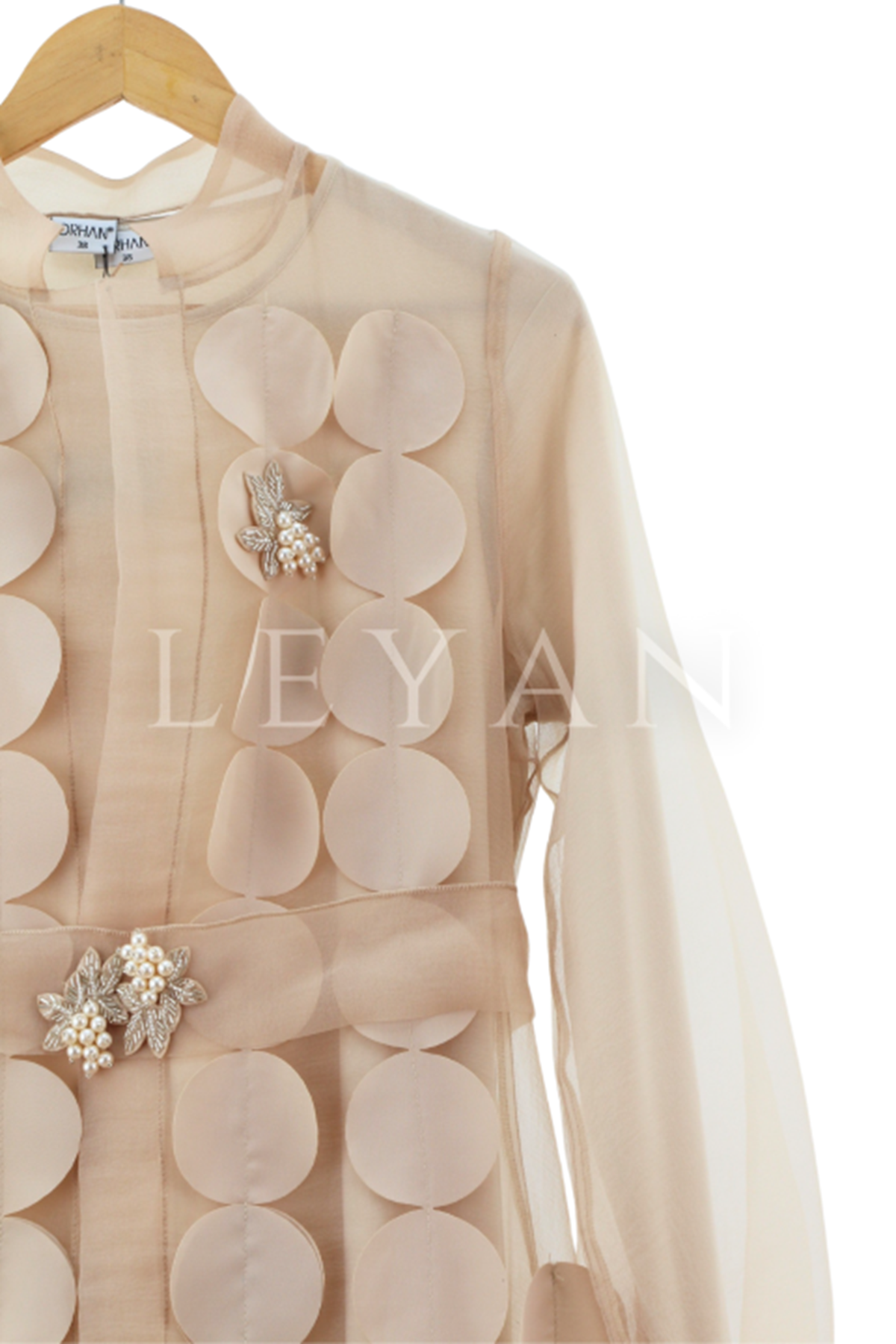 Orhan Store Lazer Kesim Detaylı Abaya Takım- LYN02674 Bej