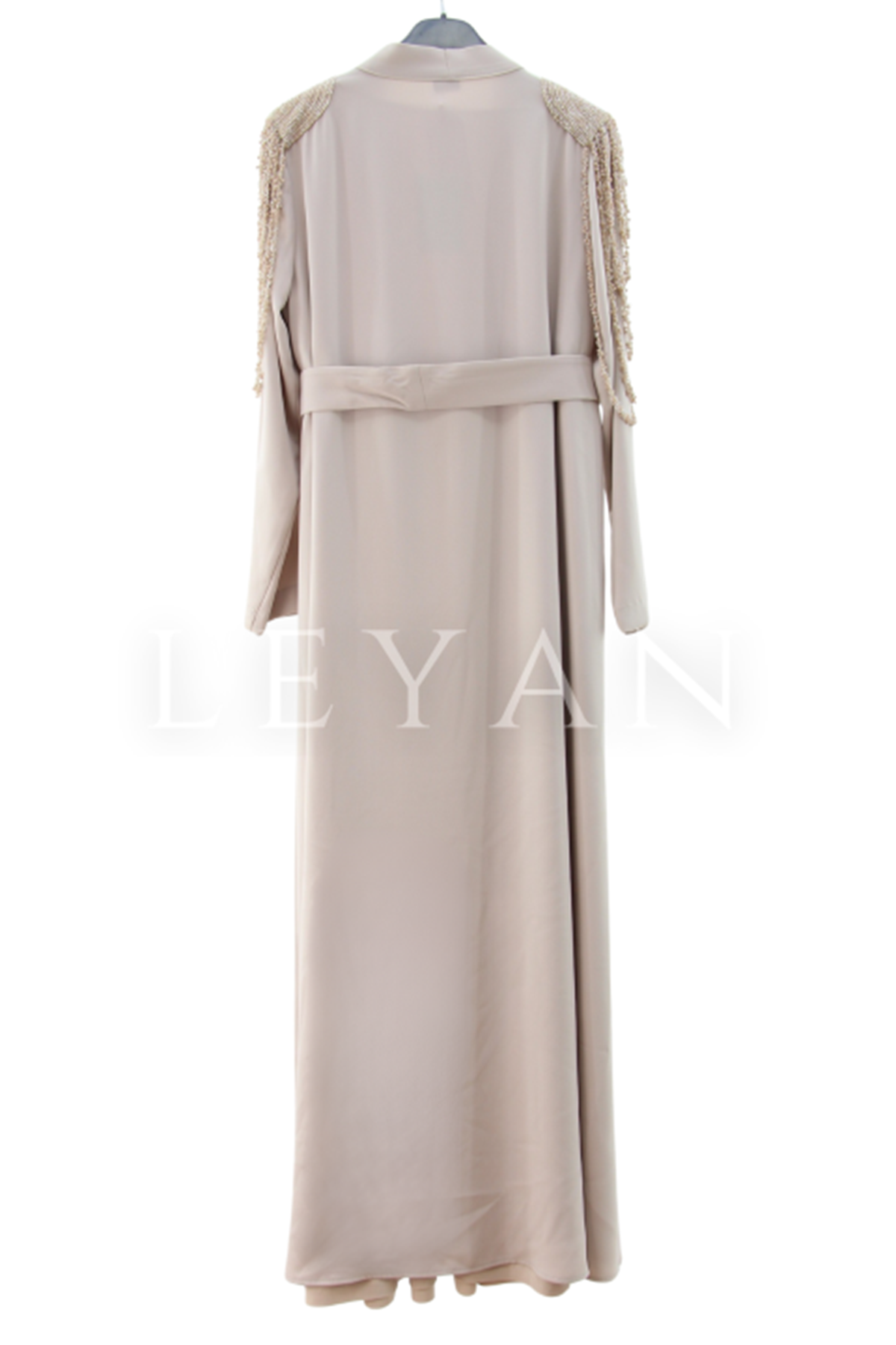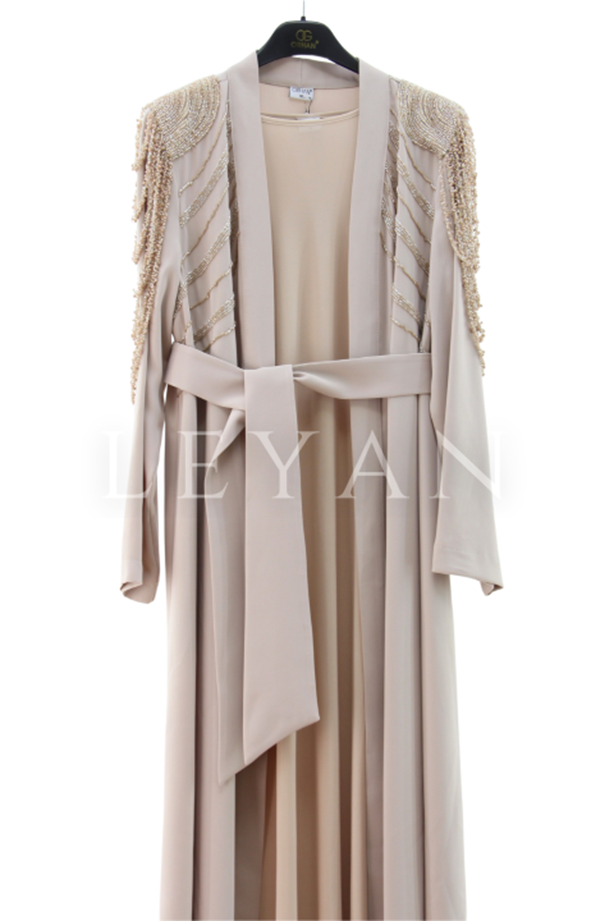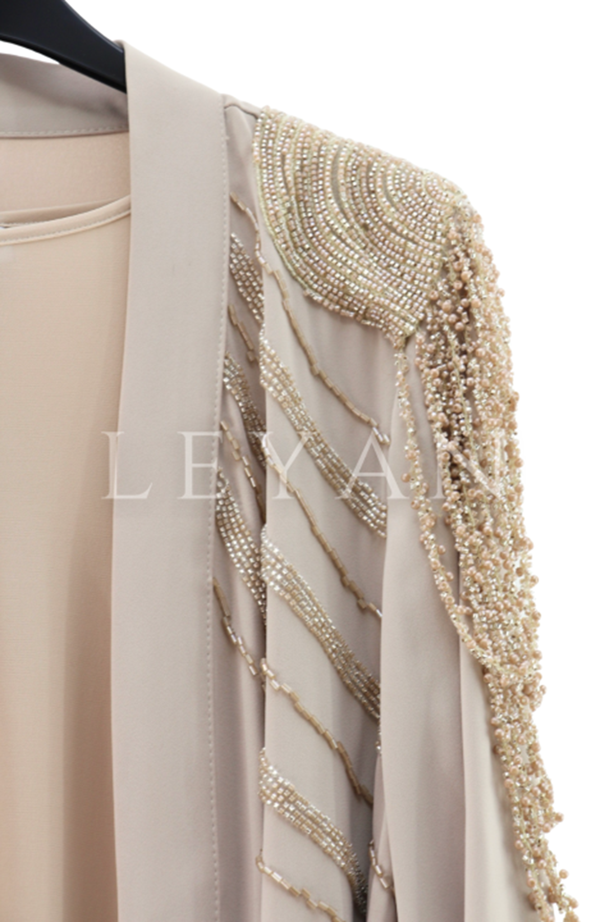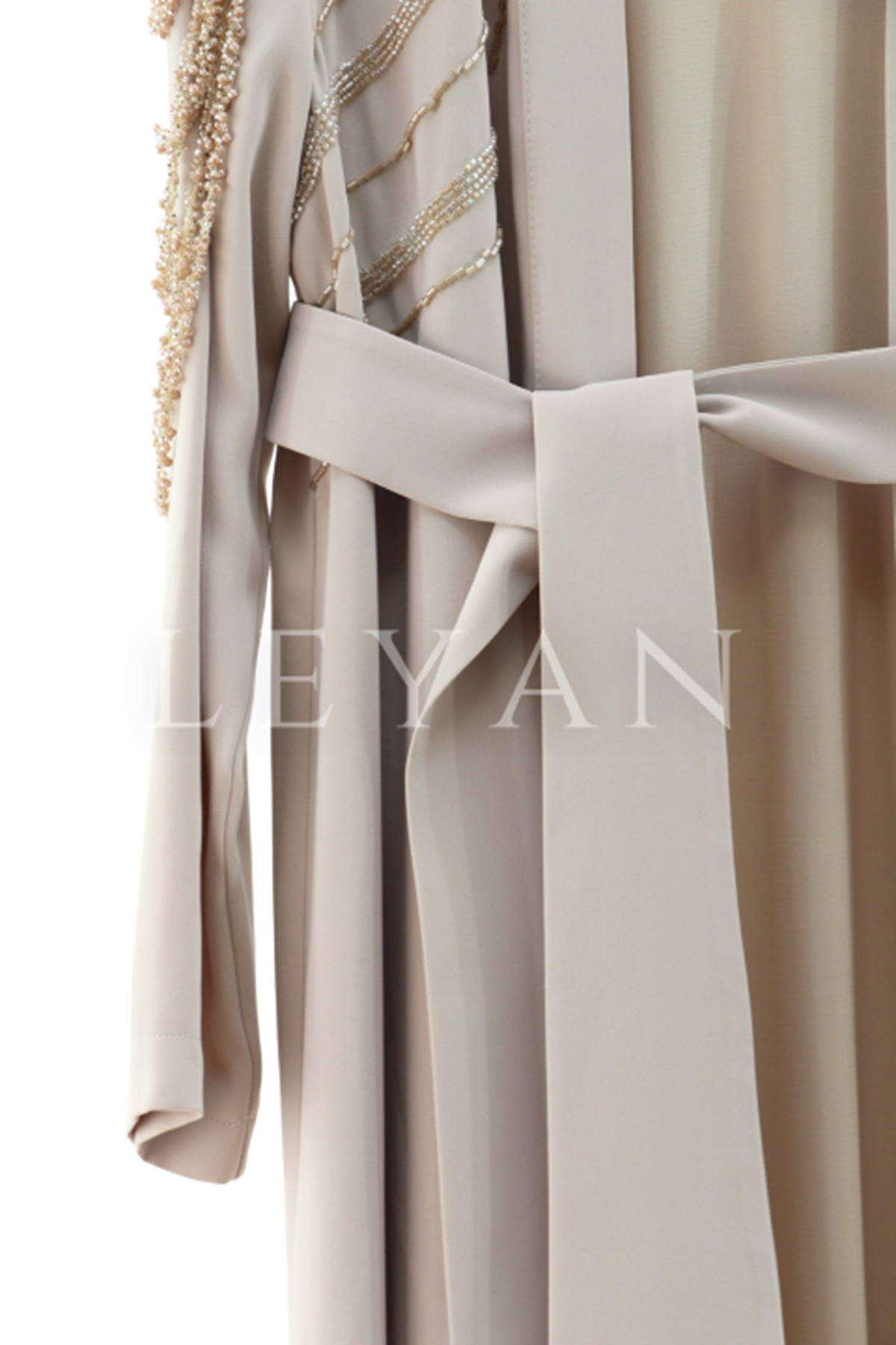 Orhan Store Omzu İşlemeli Abaya Takım- LYN03825 Bej