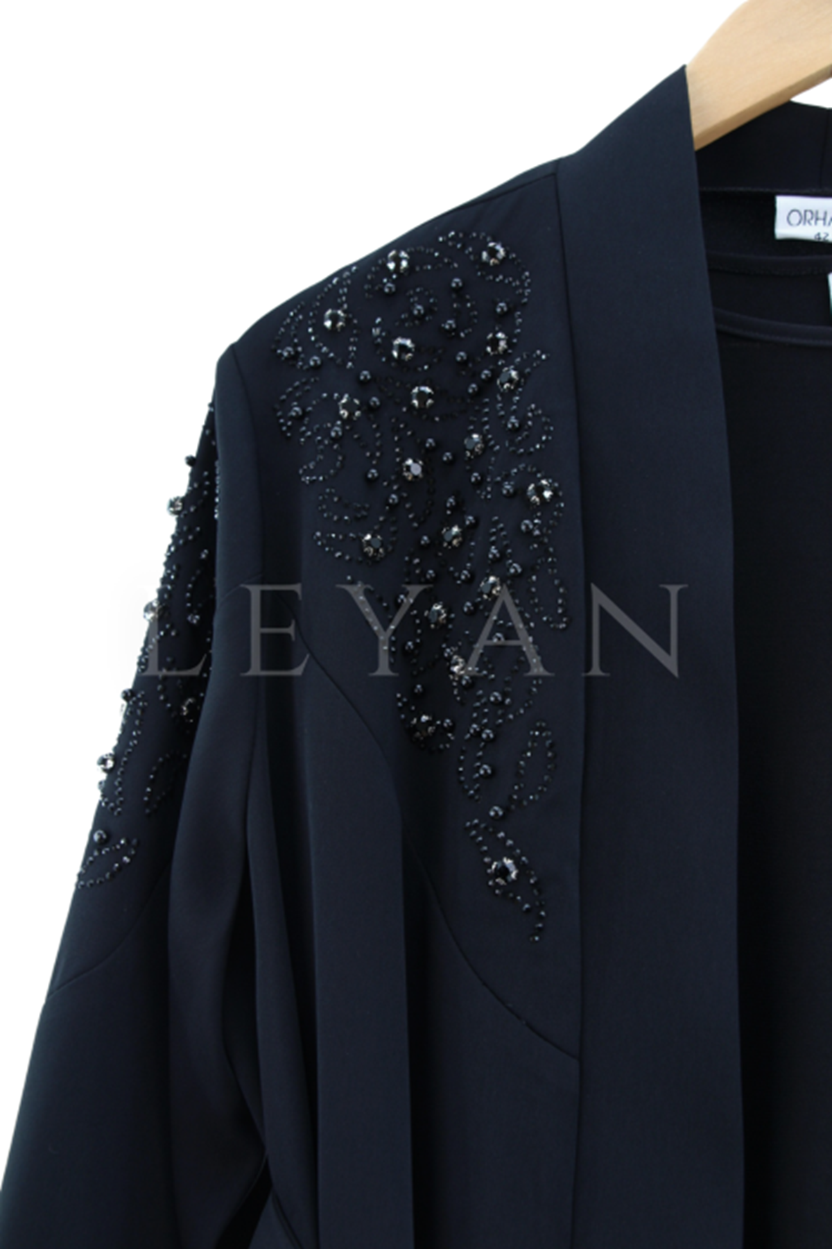 Orhan Store Taş İşlemeli Abaya Takım- LYN03983 Lacivert