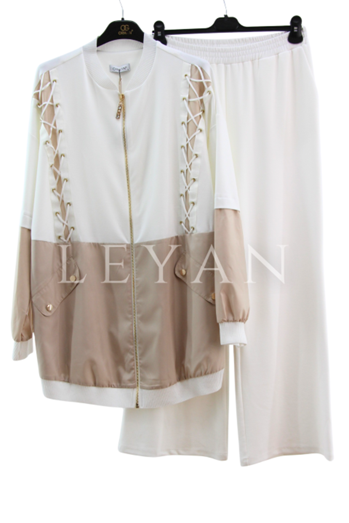 Orhan Store Paraşüt Detaylı Takım- LYN04288 Ekru