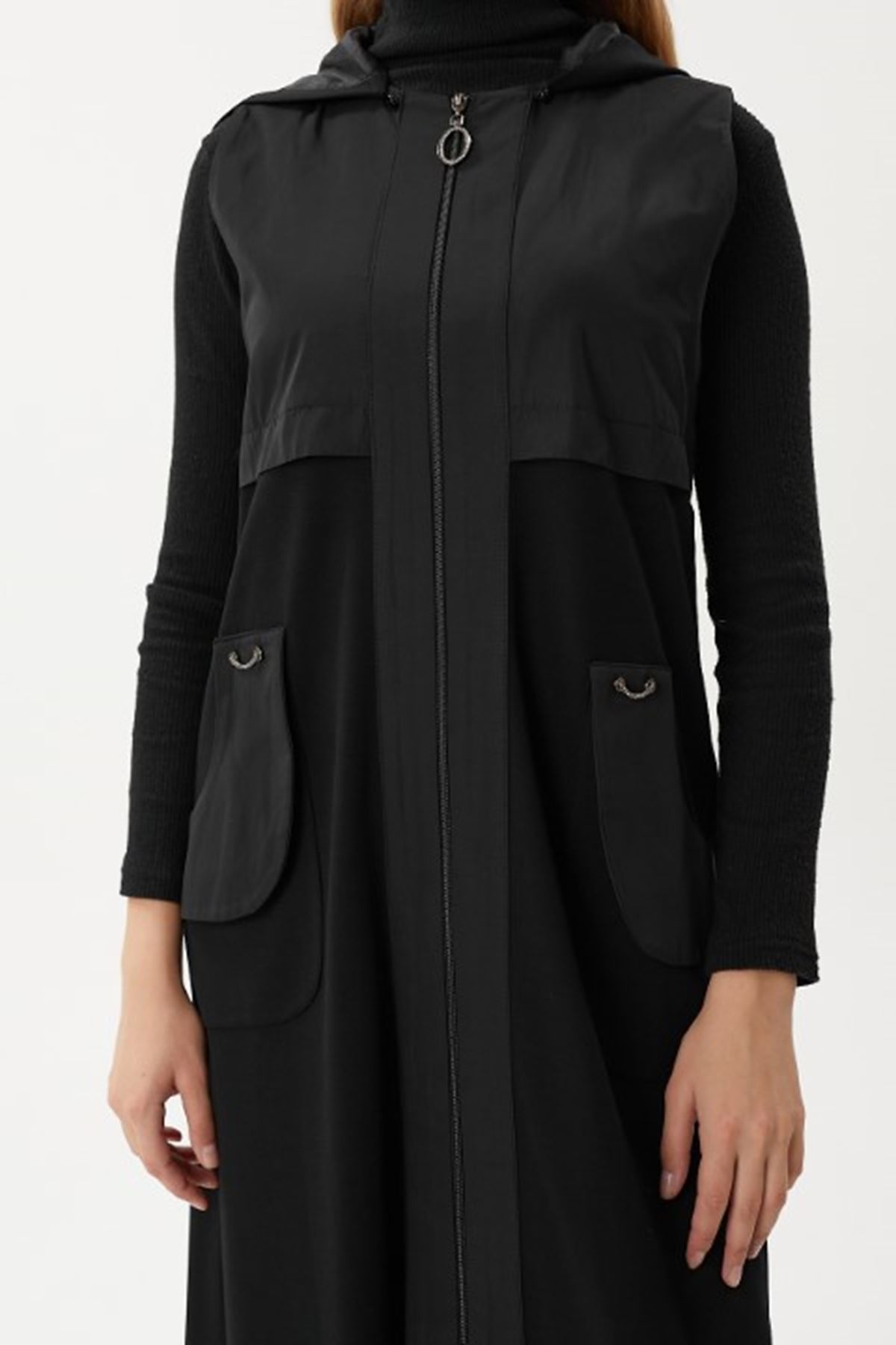 Orhan Store Paraşüt Detaylı Yelek- LYN02774 Siyah