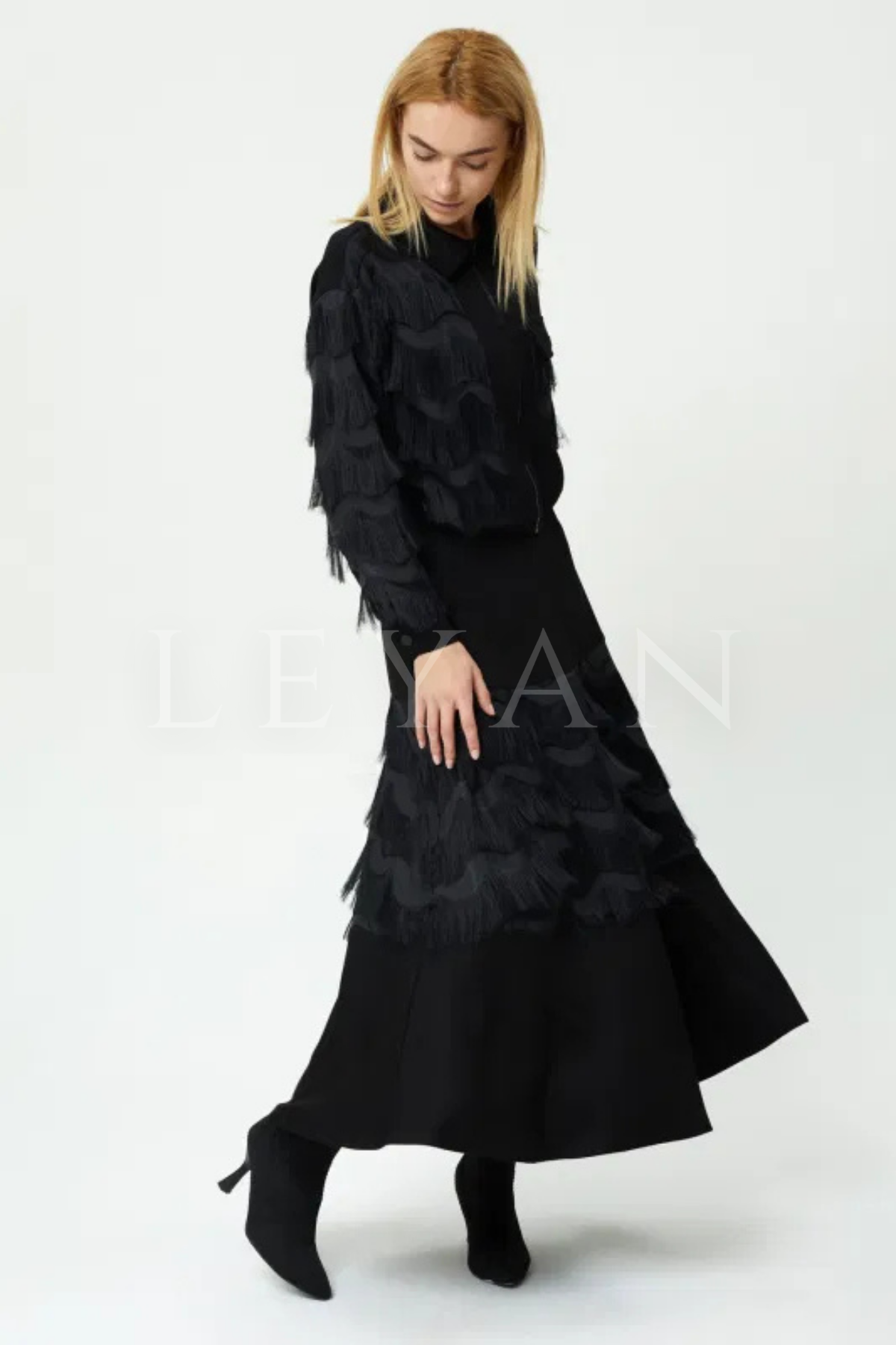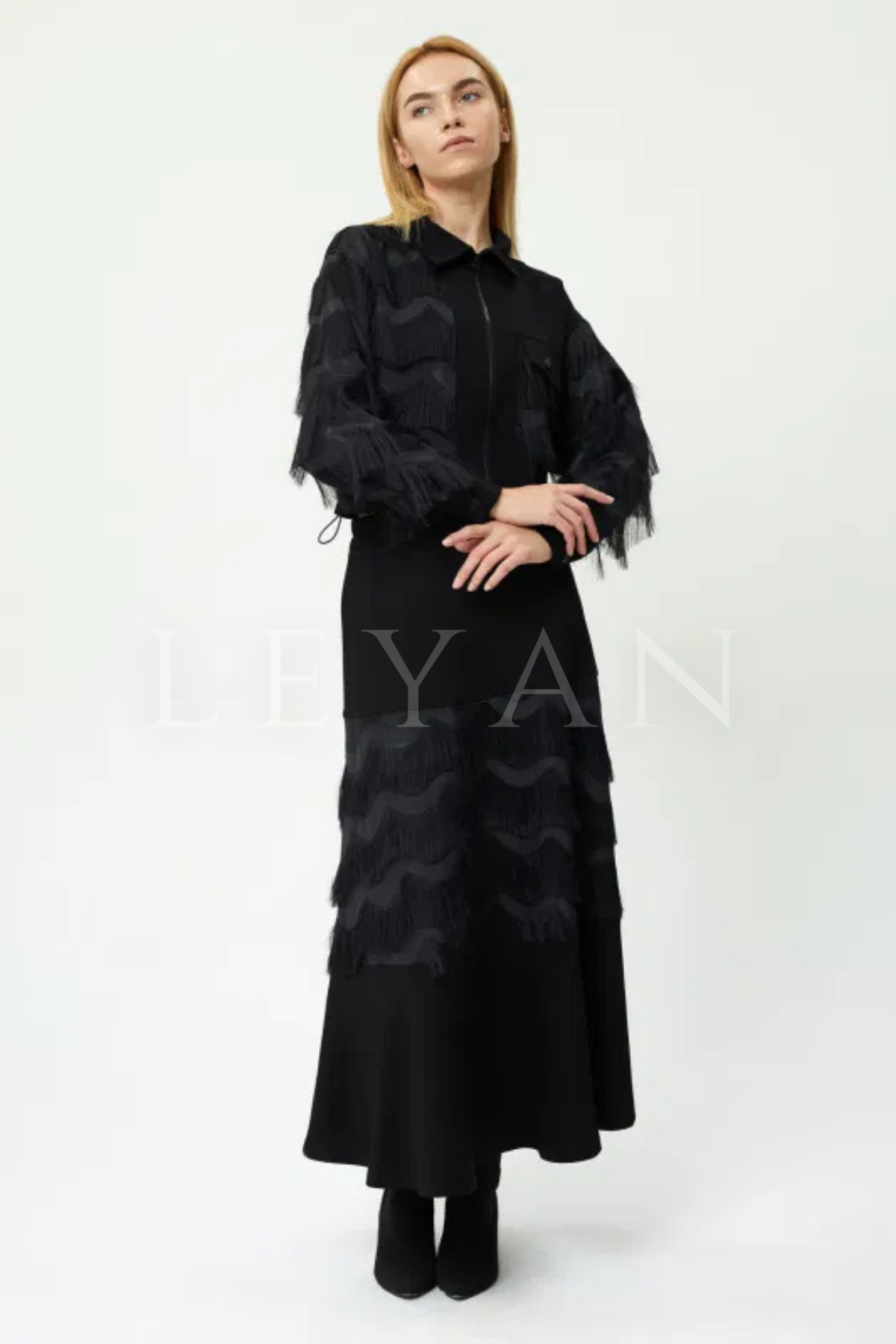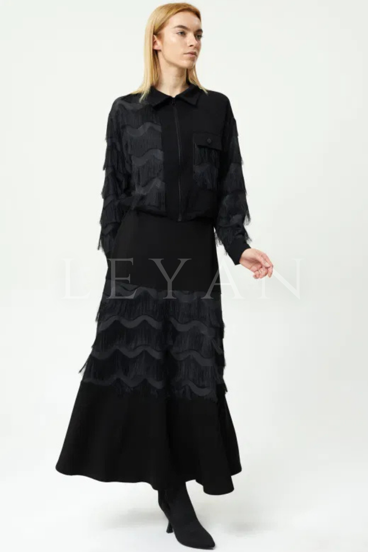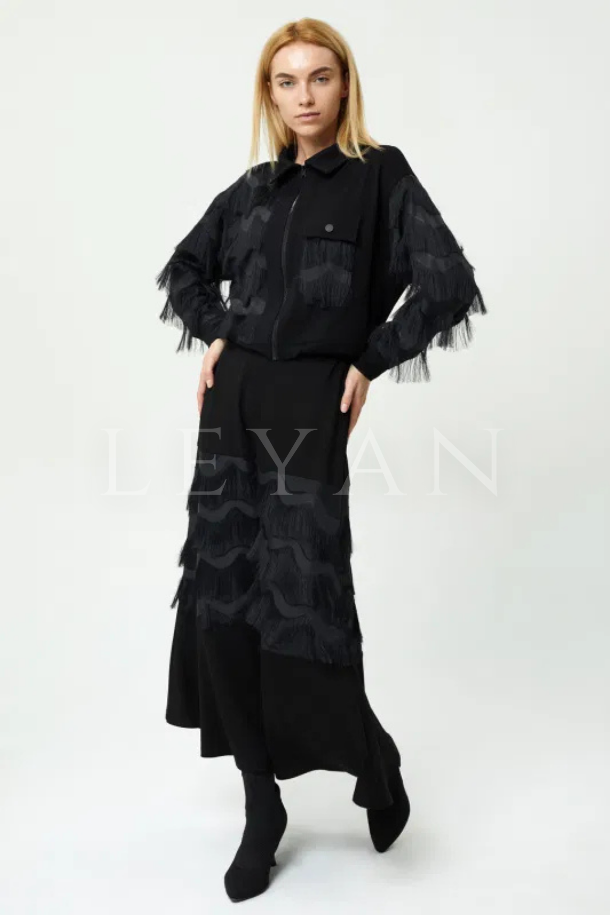 Orhan Store Püsküllü Etekli Takım- LYN03456 Siyah