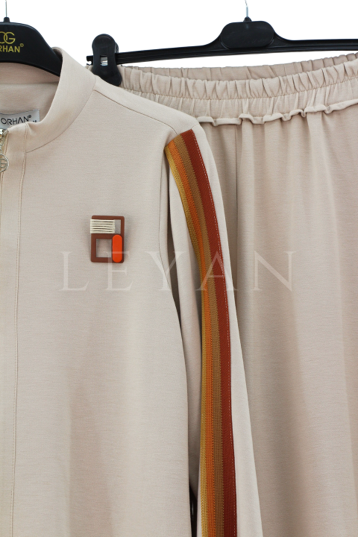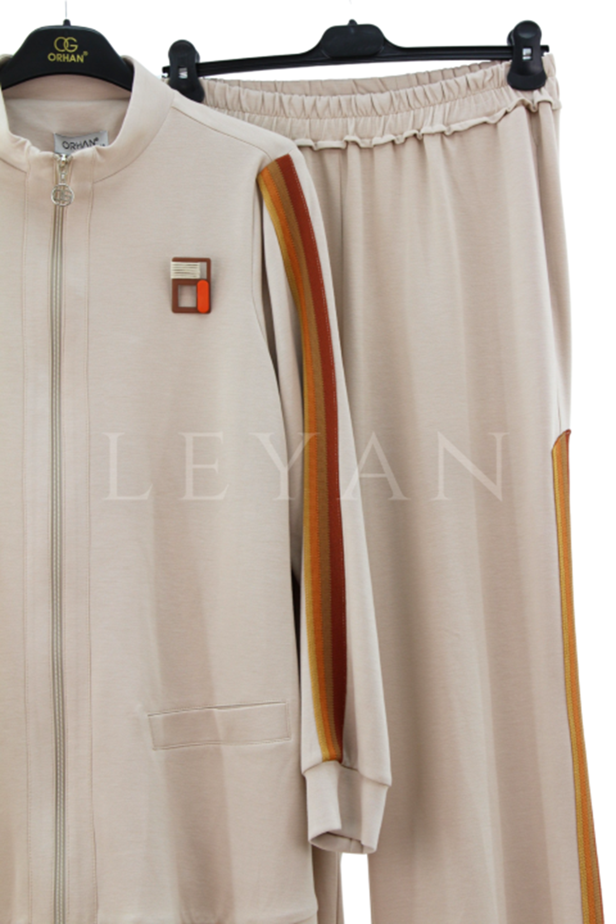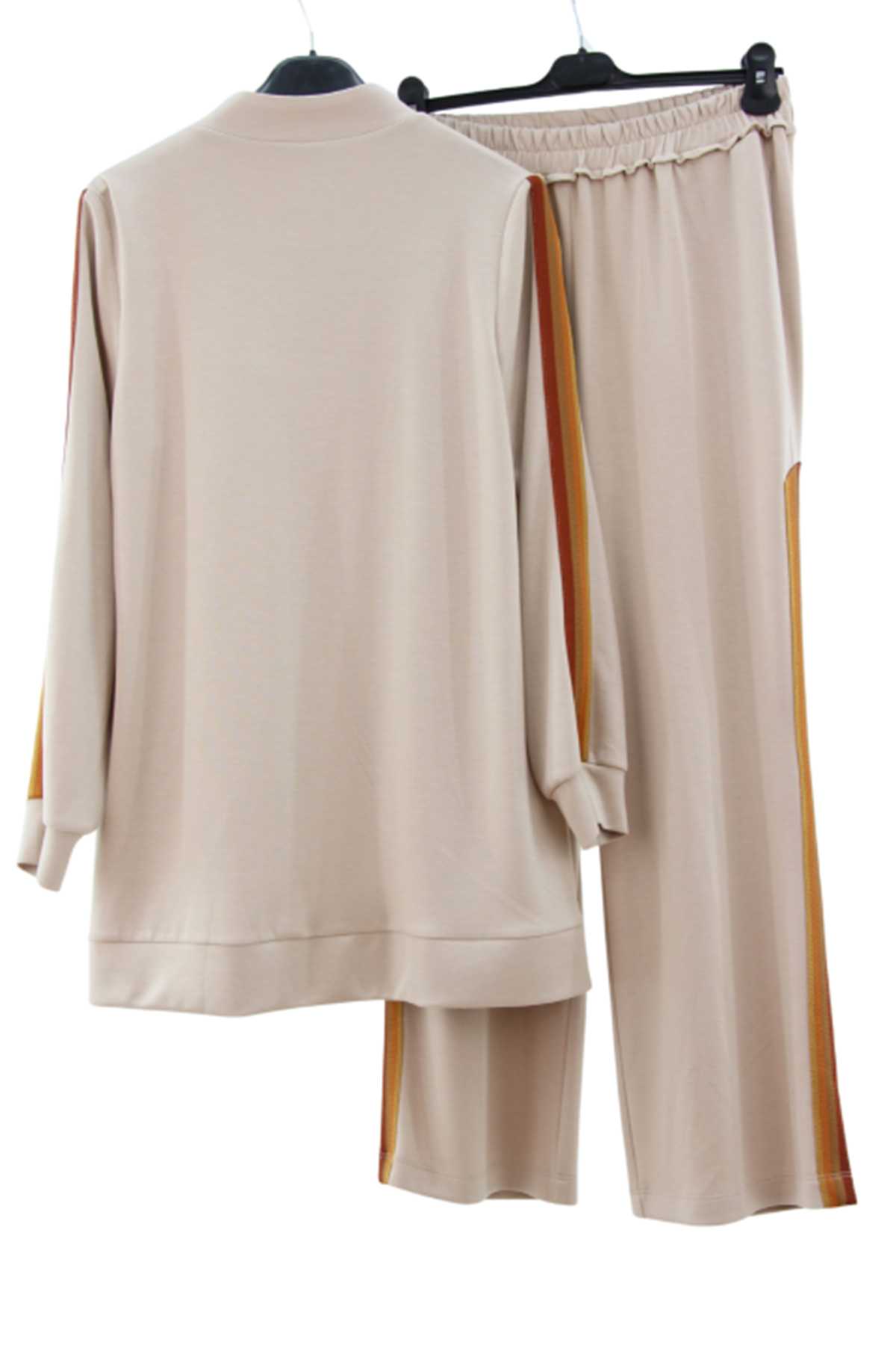 Orhan Store Şerit Detaylı Pantolonlu Takım- LYN03423 Bej