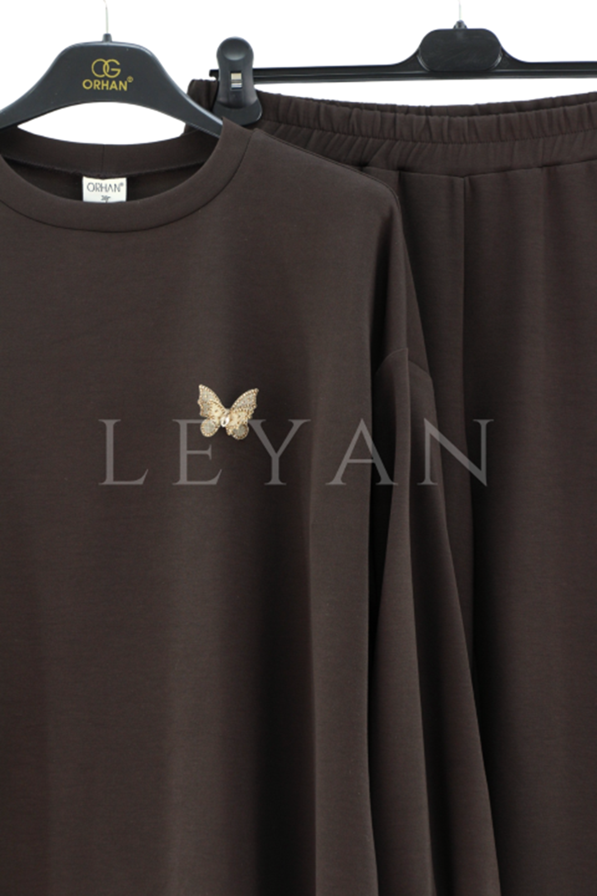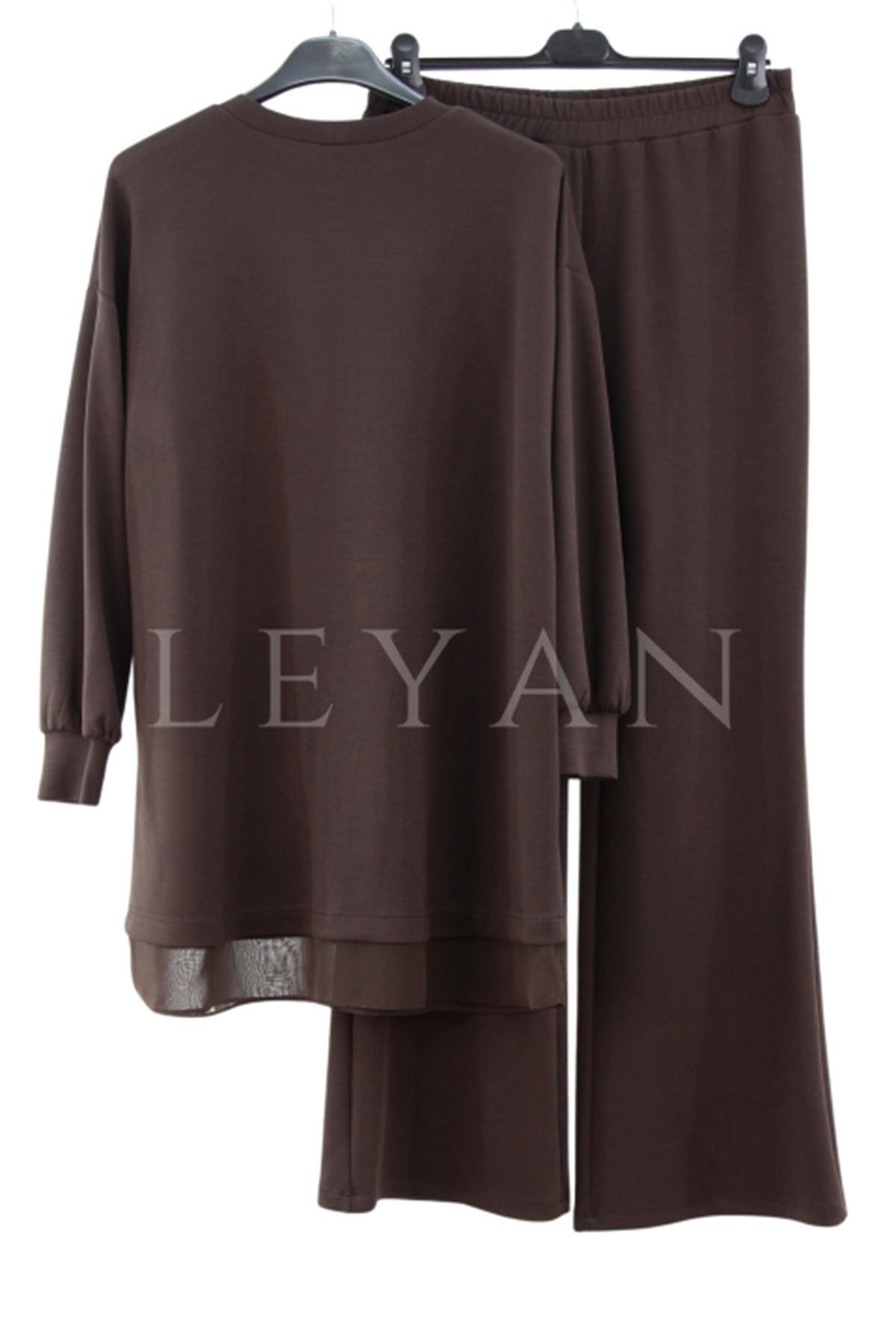 Orhan Store Şifon Detaylı Takım- LYN04292 Kahve