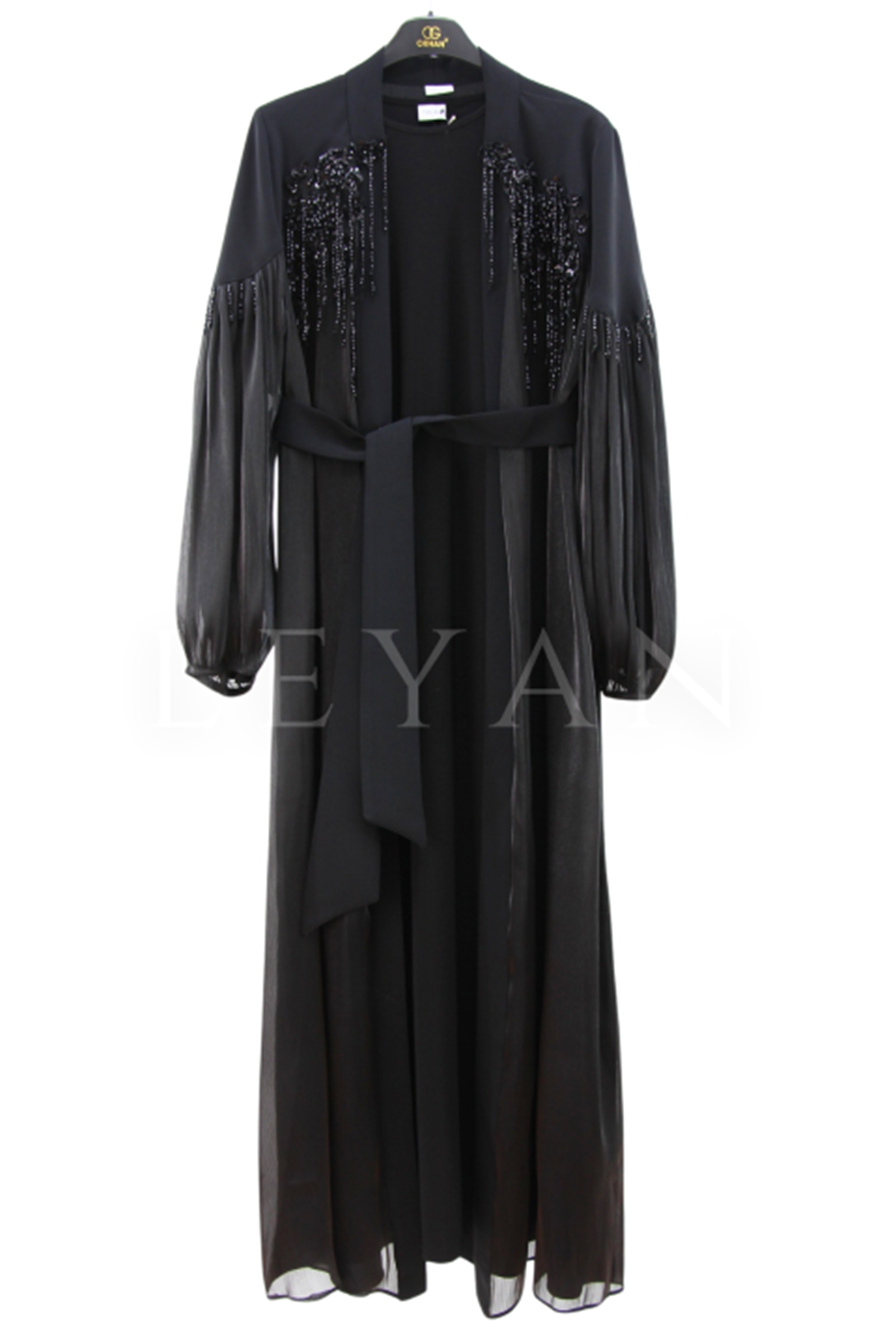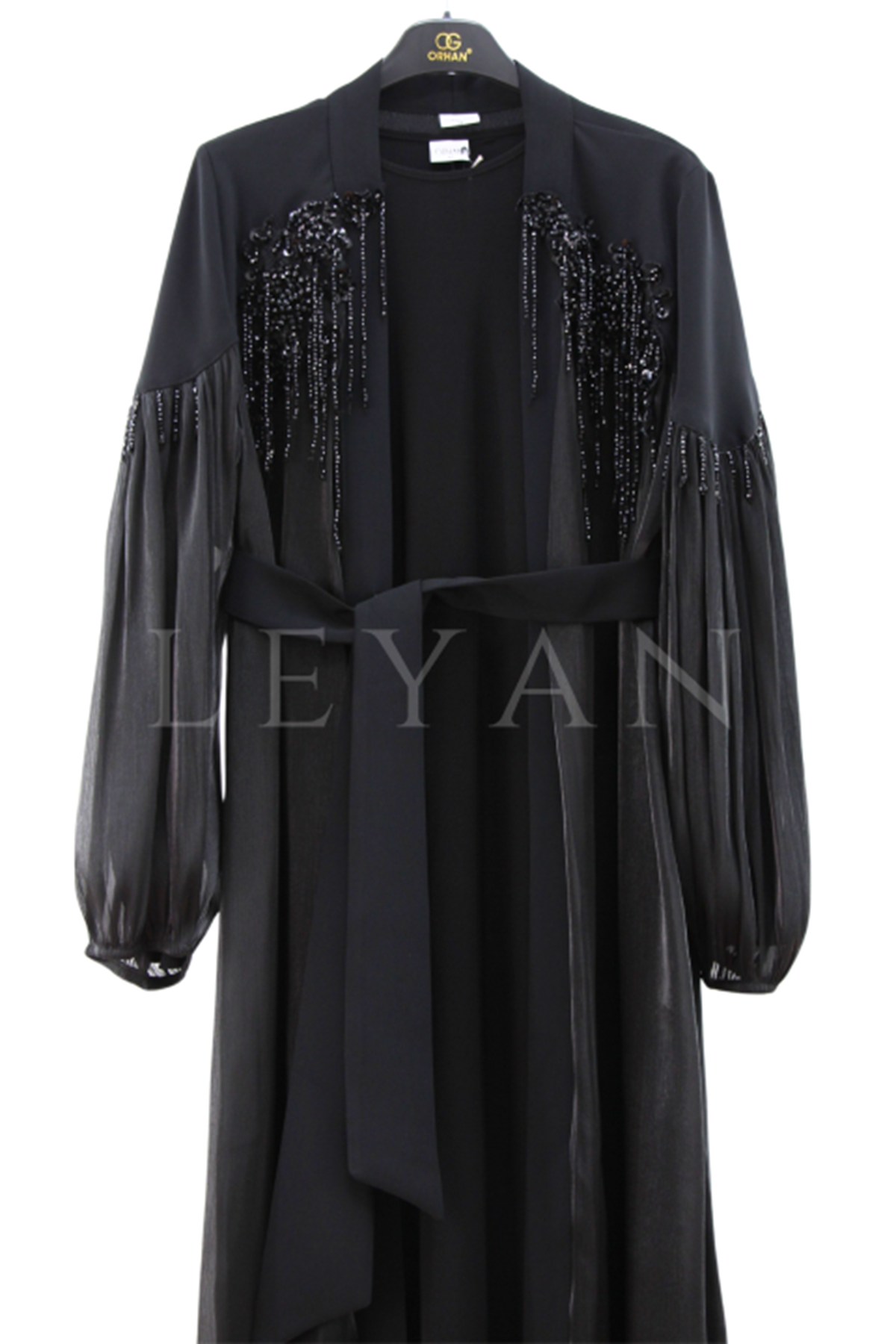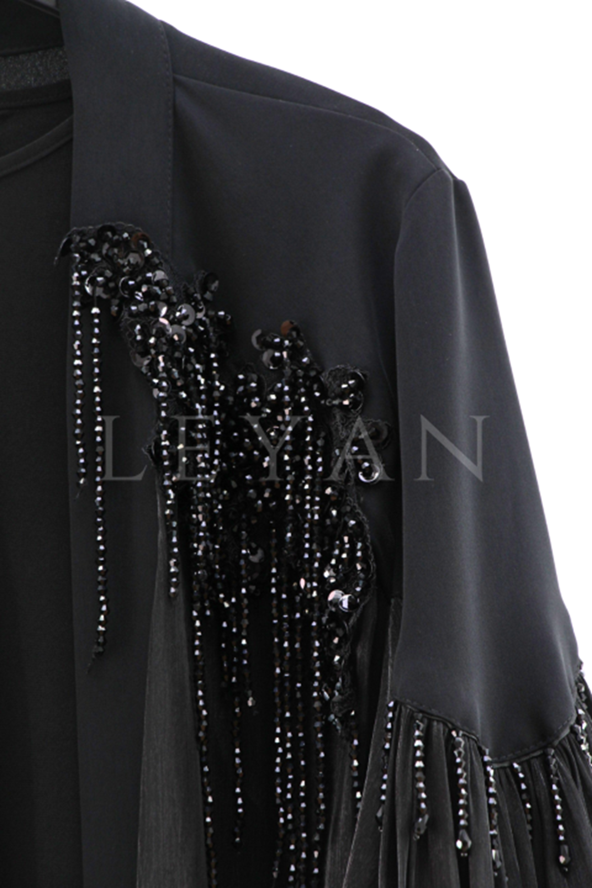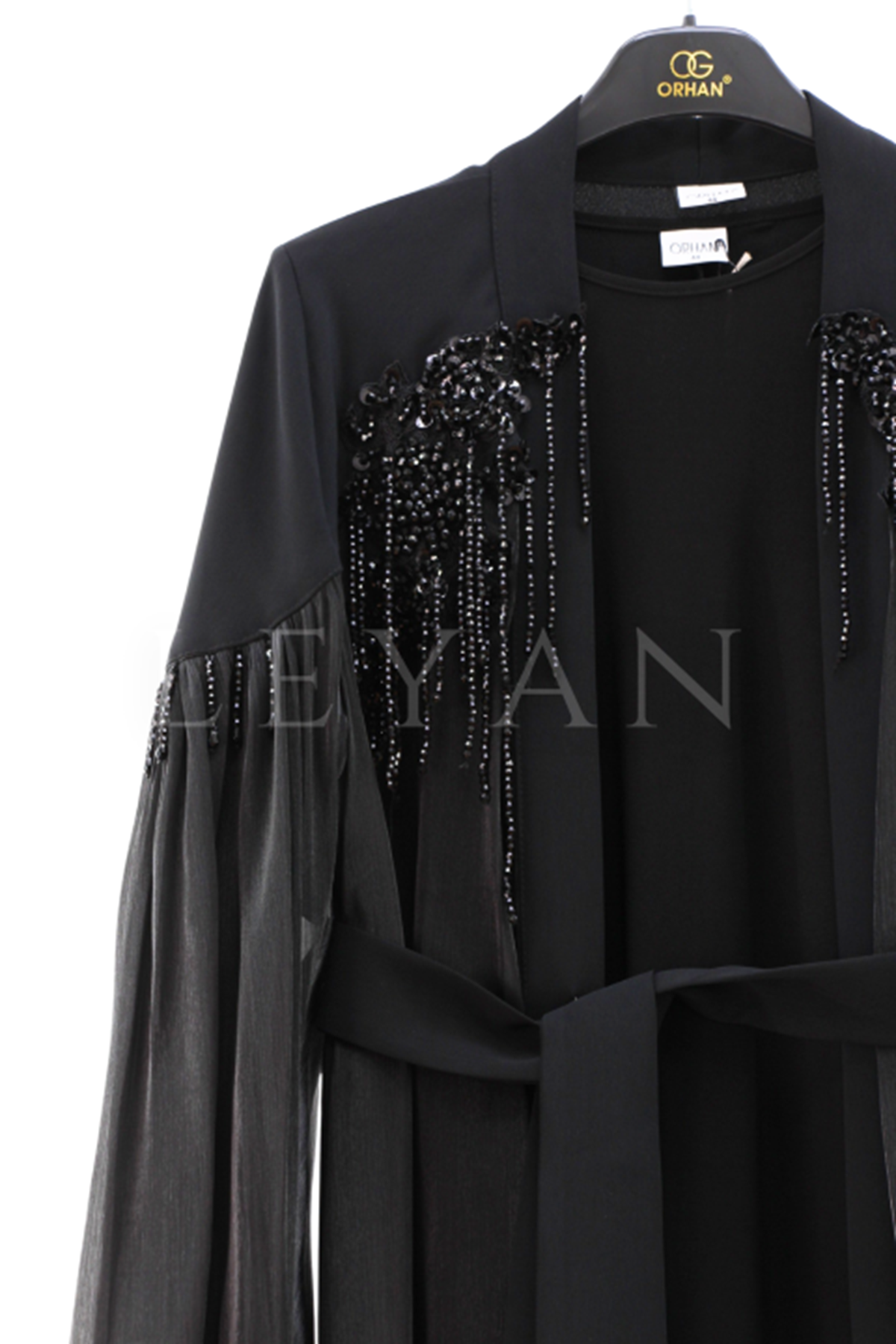 Orhan Store Payetli Pilise Abaya Takım- LYN03839 Siyah