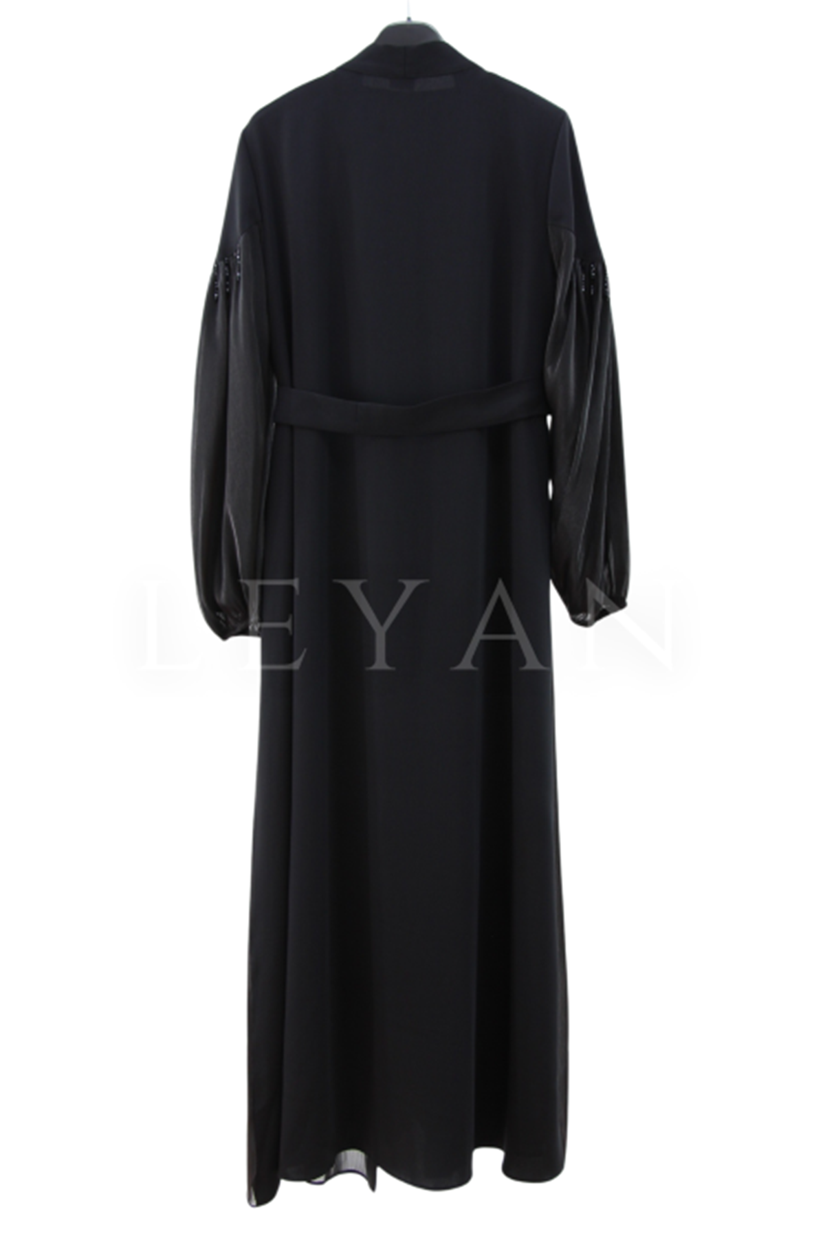 Orhan Store Payet Detaylı Saten Abaya Takım- LYN03799 Lacivert