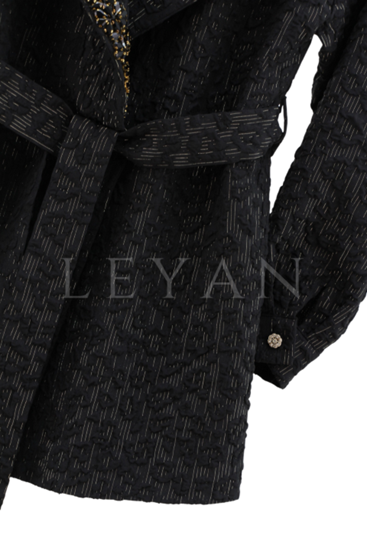 Kendinden desenli brokar kumaş üzerine özenle işlenen taş detayları, cekete sofistike bir ışıltı katarken, özel gün kombinlerinden davet stiline kadar geniş bir kullanım alanı sunuyor.