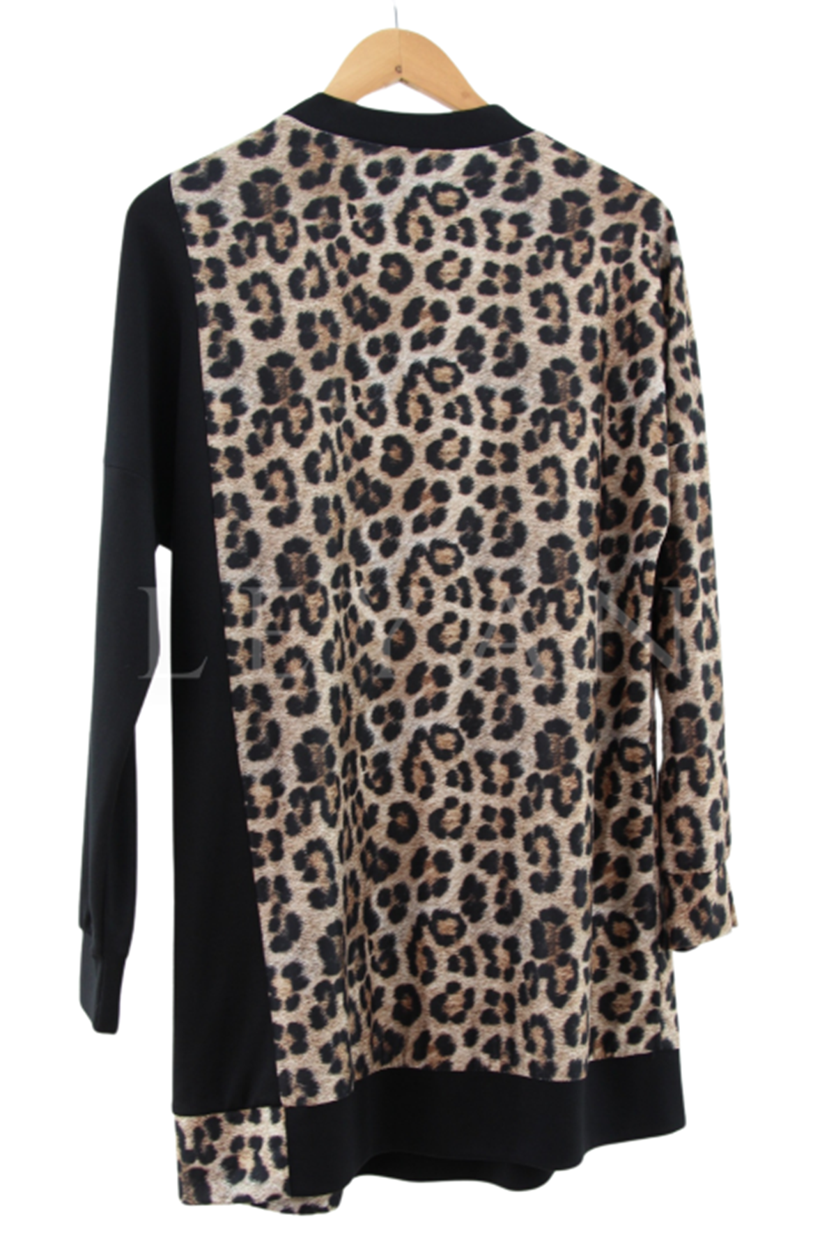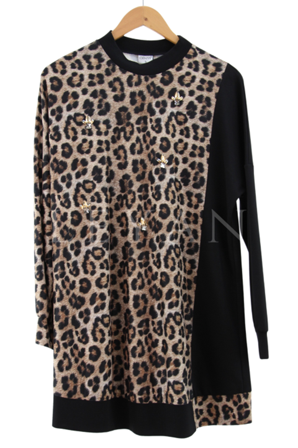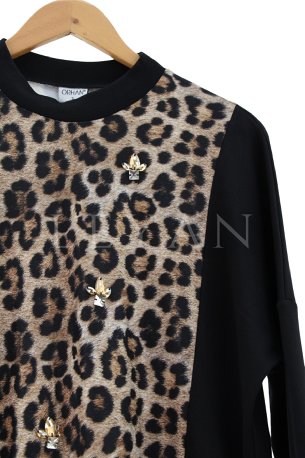 Orhan Store Taşlı Leopar Tunik- LYN03284 Siyah