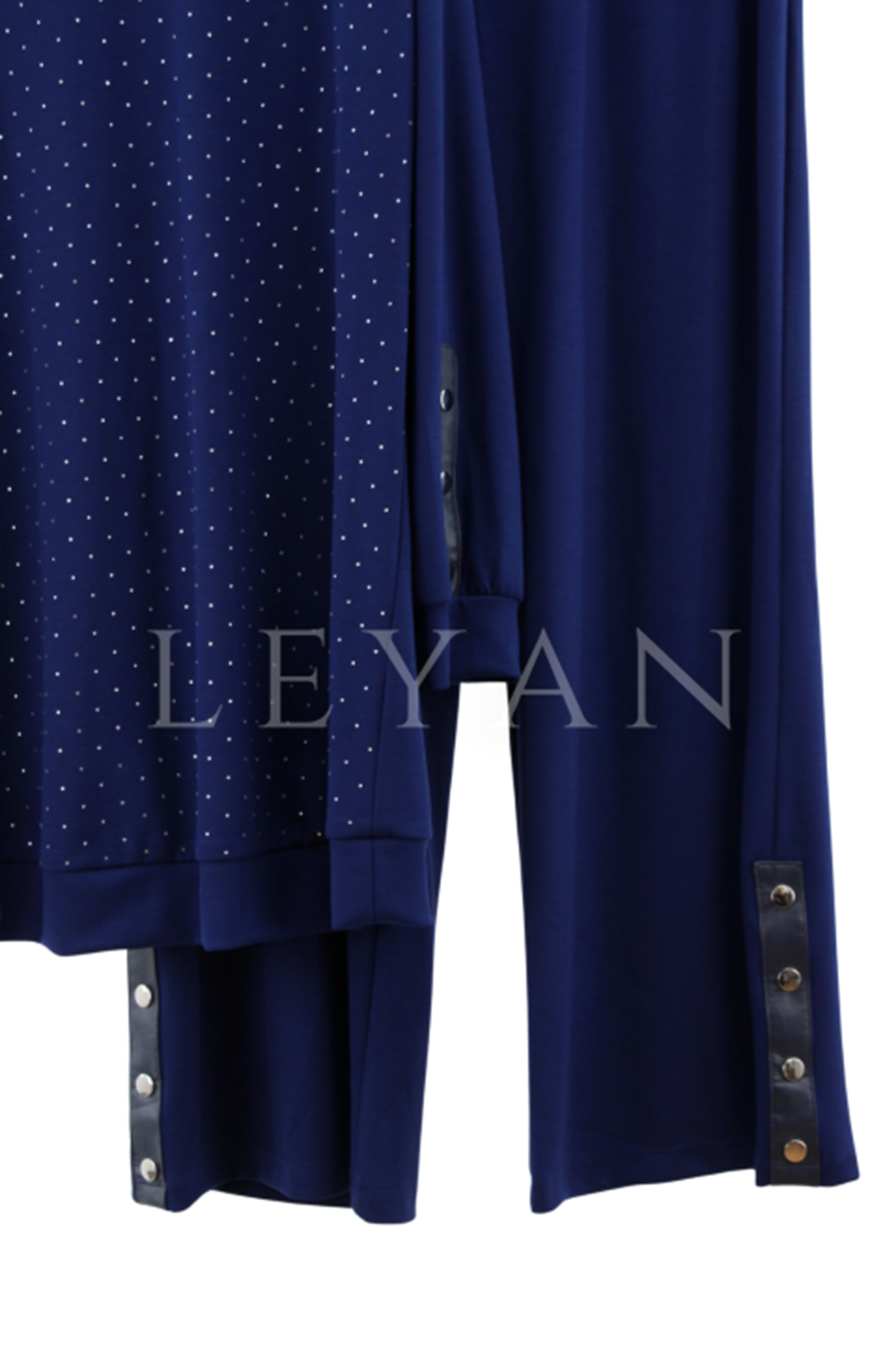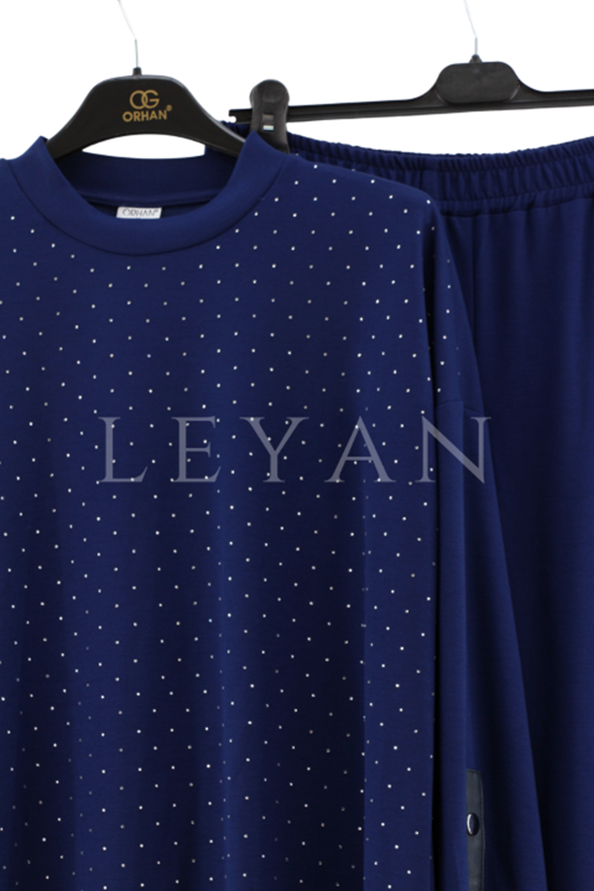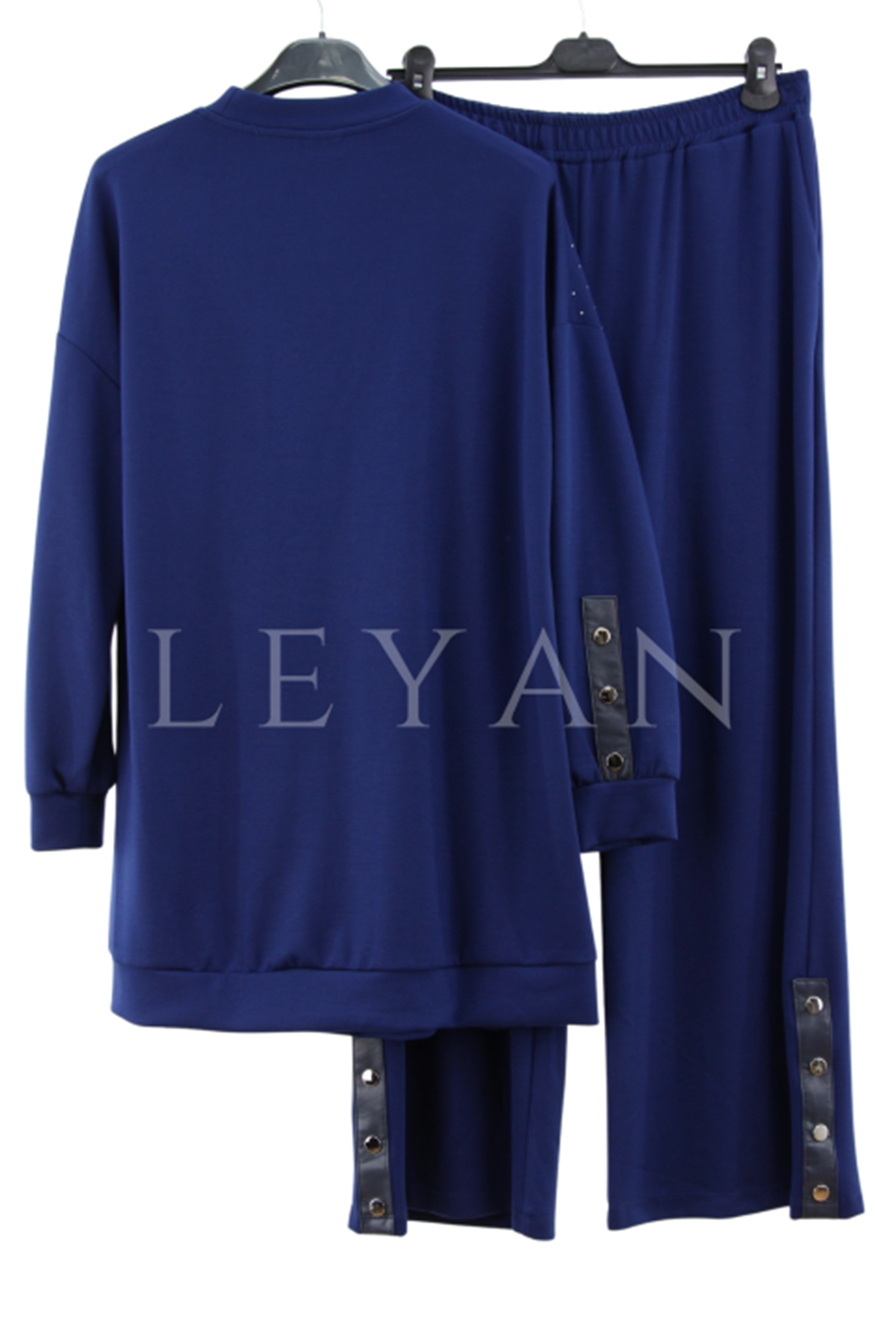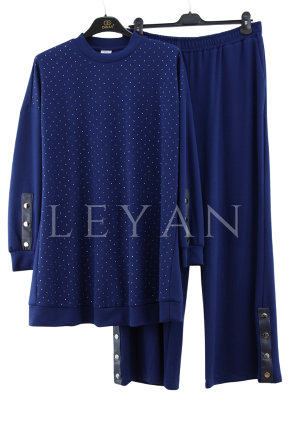 Editör Notu: 40-48 beden aralığında, taş işleme detayı ile hareketlendirilmiş, penye kumaş ikili takım modelimiz Leyan’da..