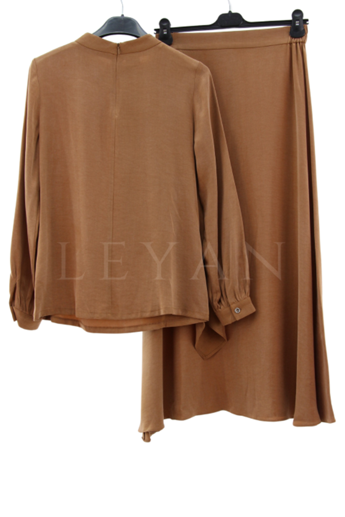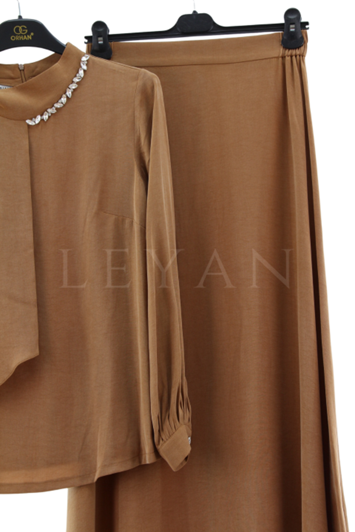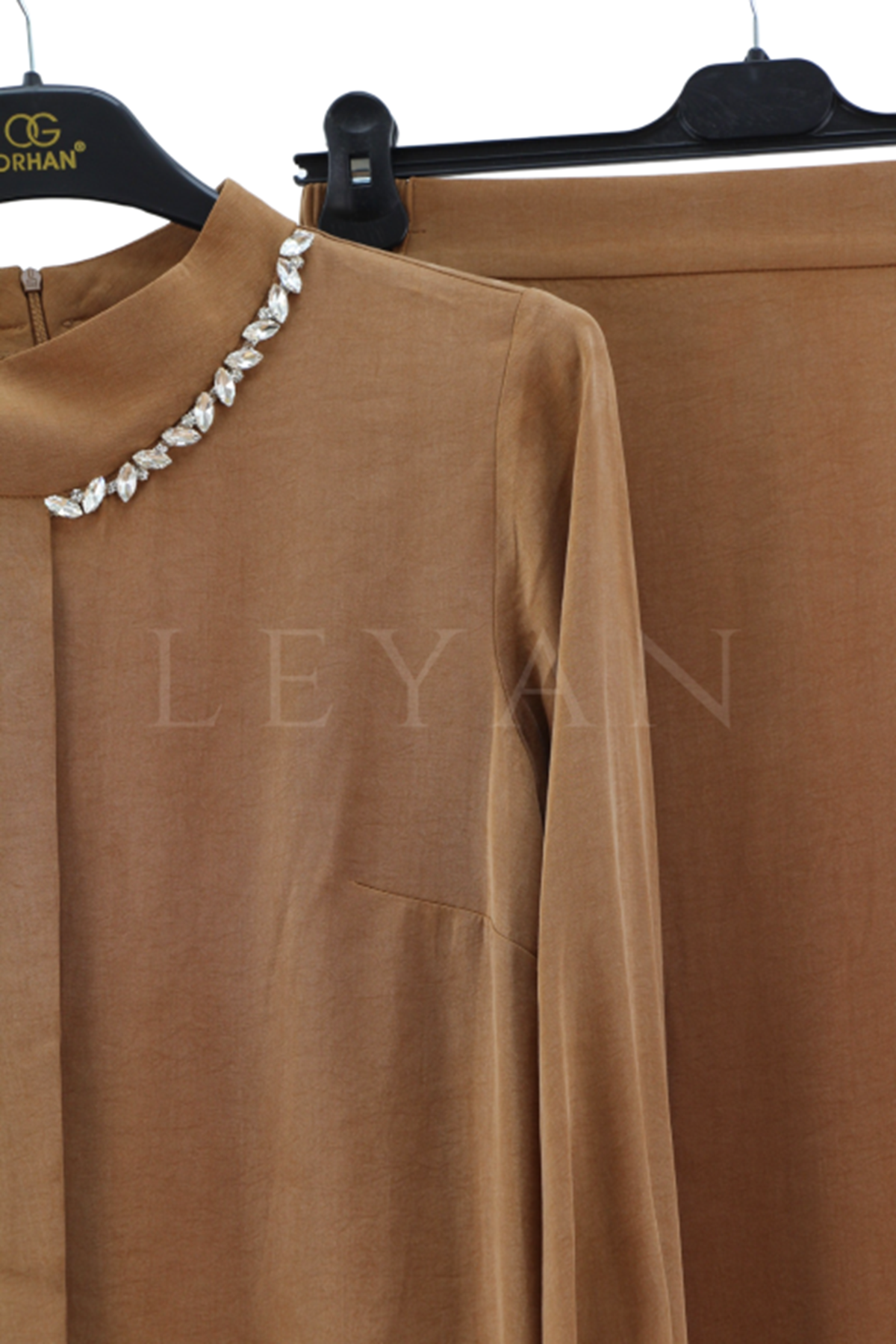 Orhan Store Yakası Taşlı Etekli Takım- LYN03415 Taba