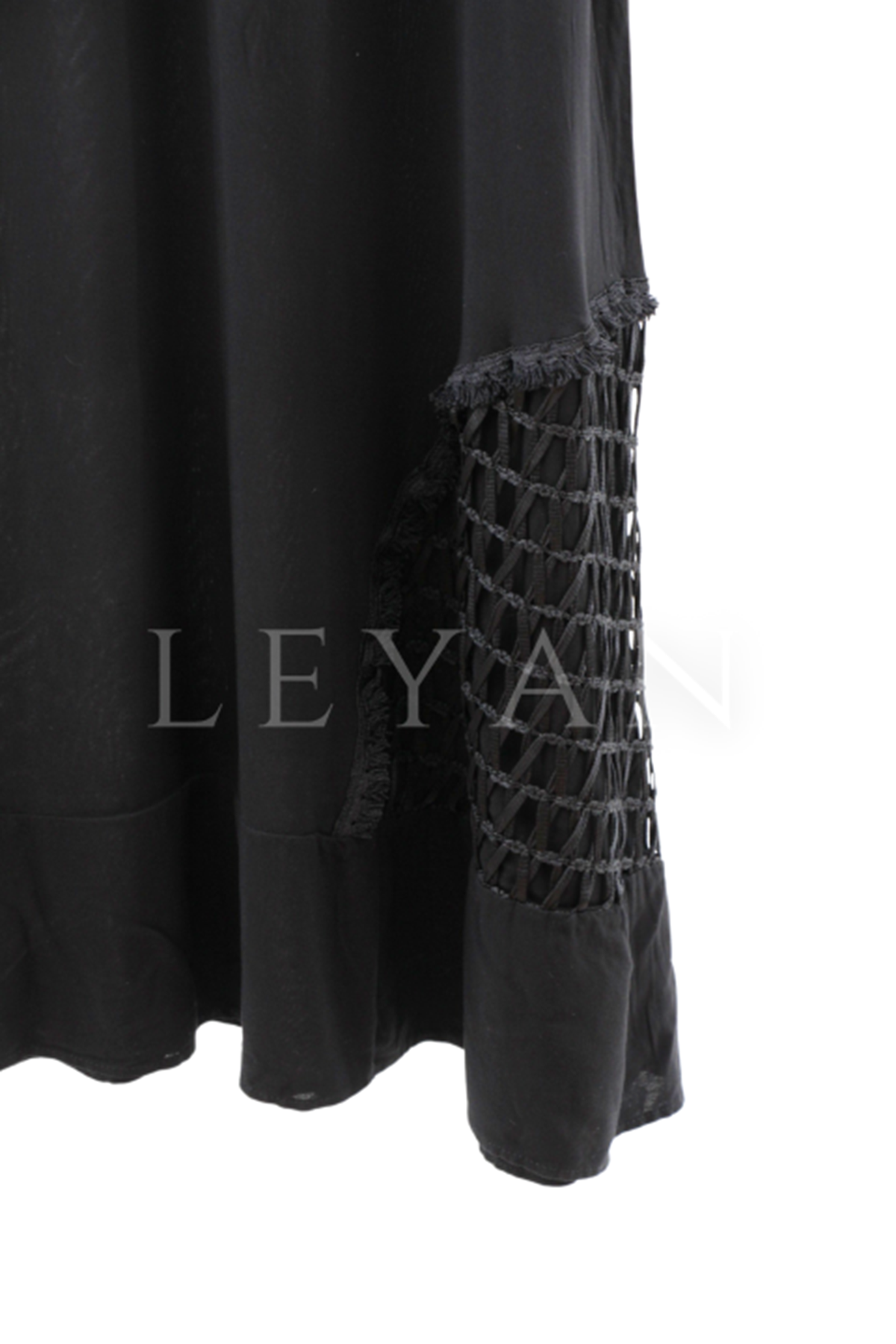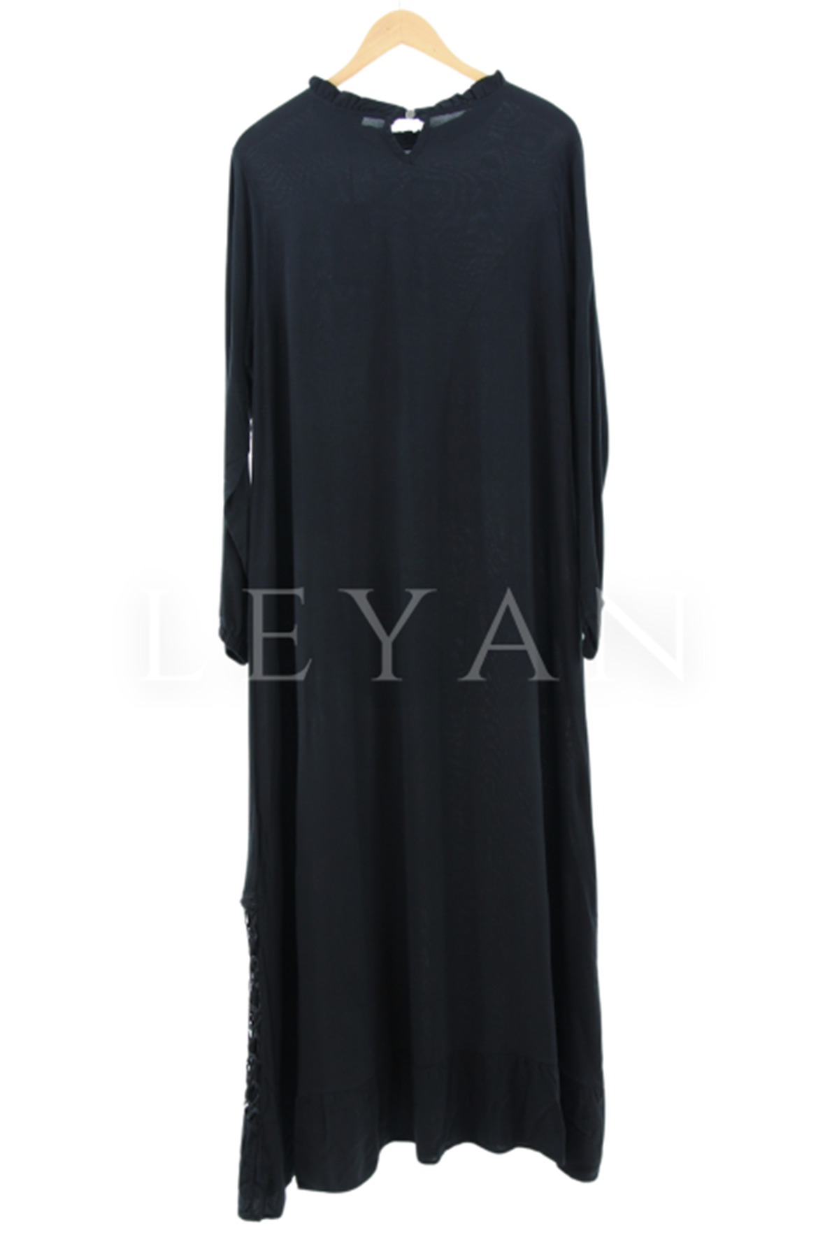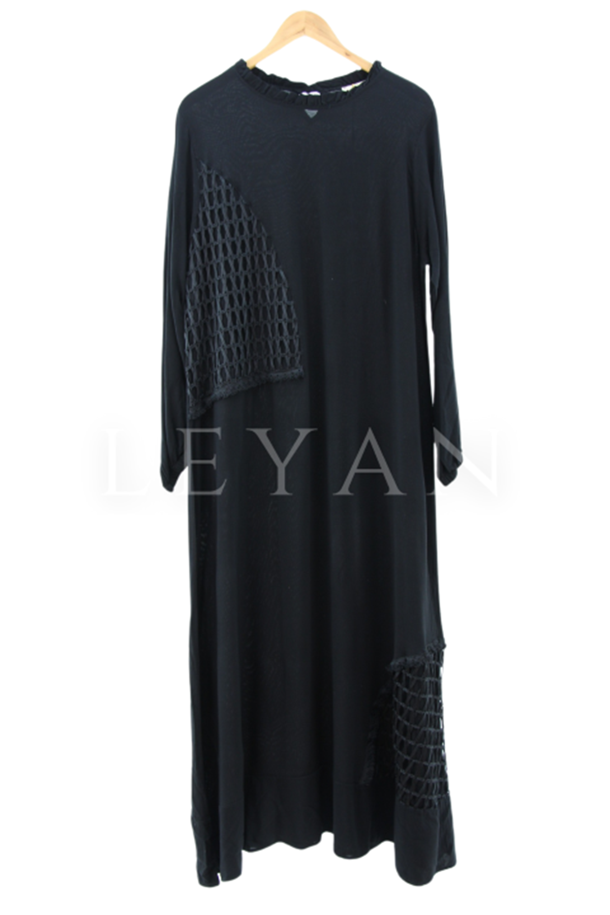 Örme Kumaş Detaylı Viskon Elbise- LYN03785 Siyah