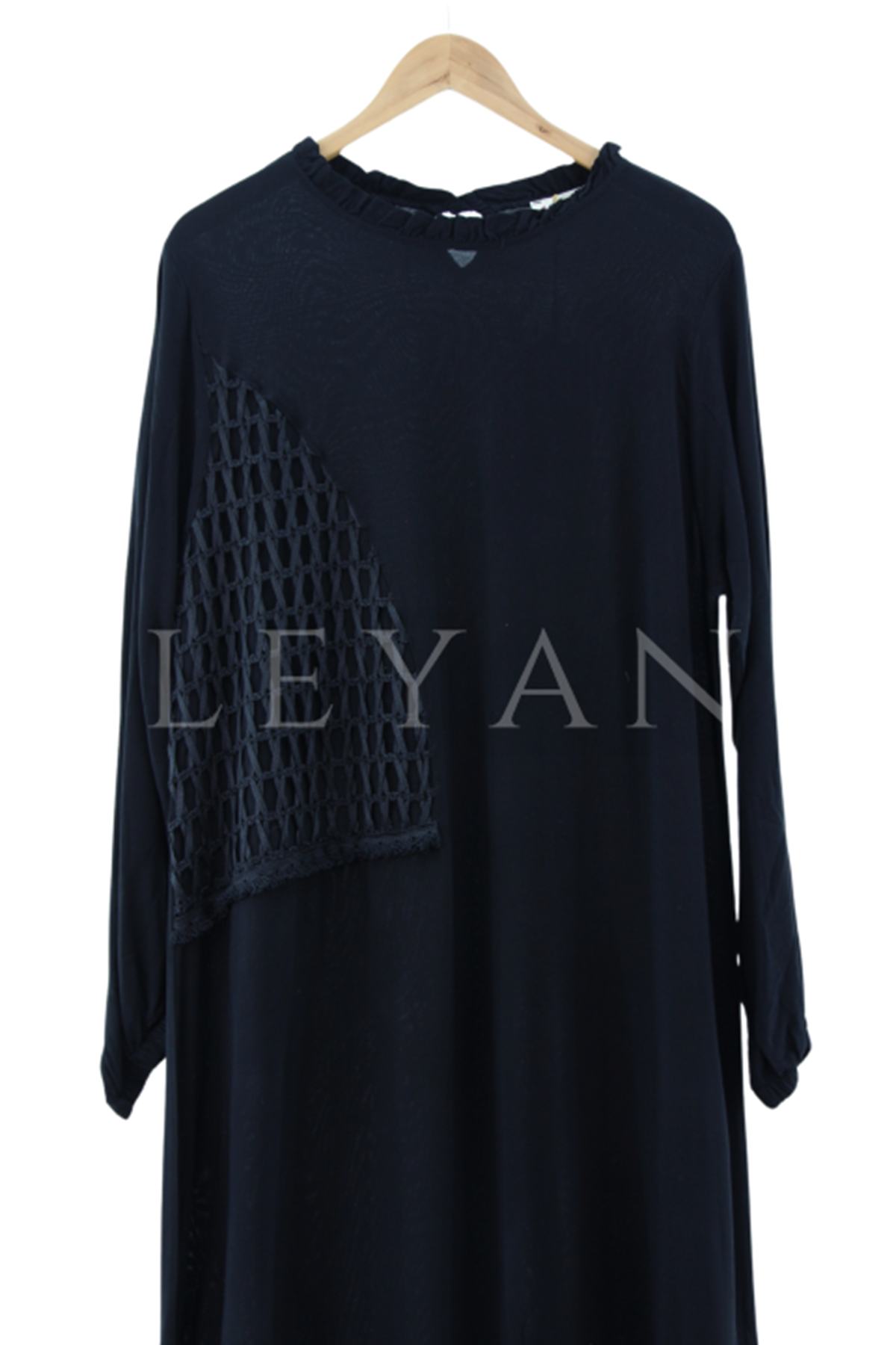 Nuss Bakır Biye Detaylı Elbise- LYN03859 Lacivert