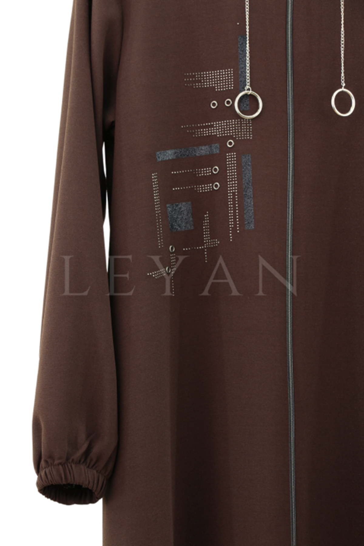Ribana Detaylı Krep Kumaş Taşlı Kap- LYN02751 Kahve