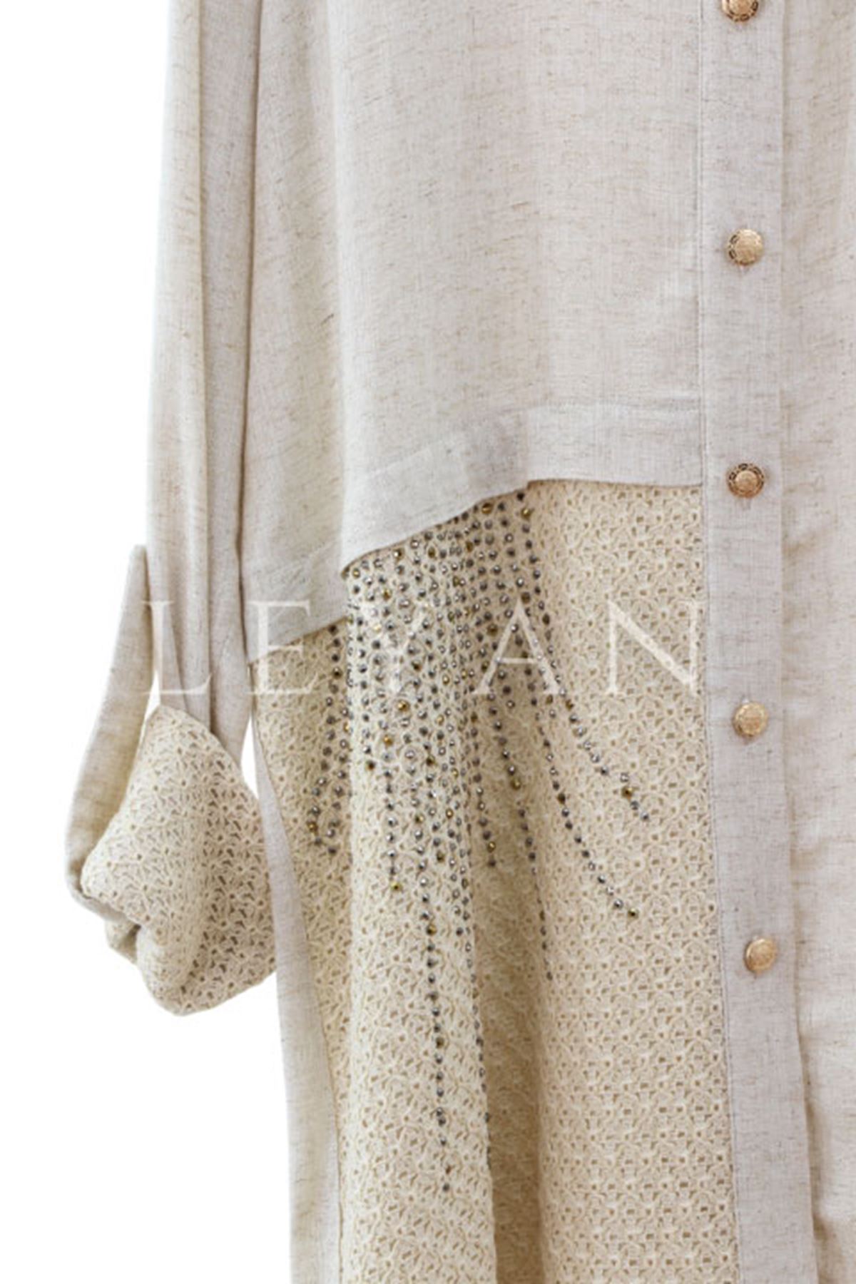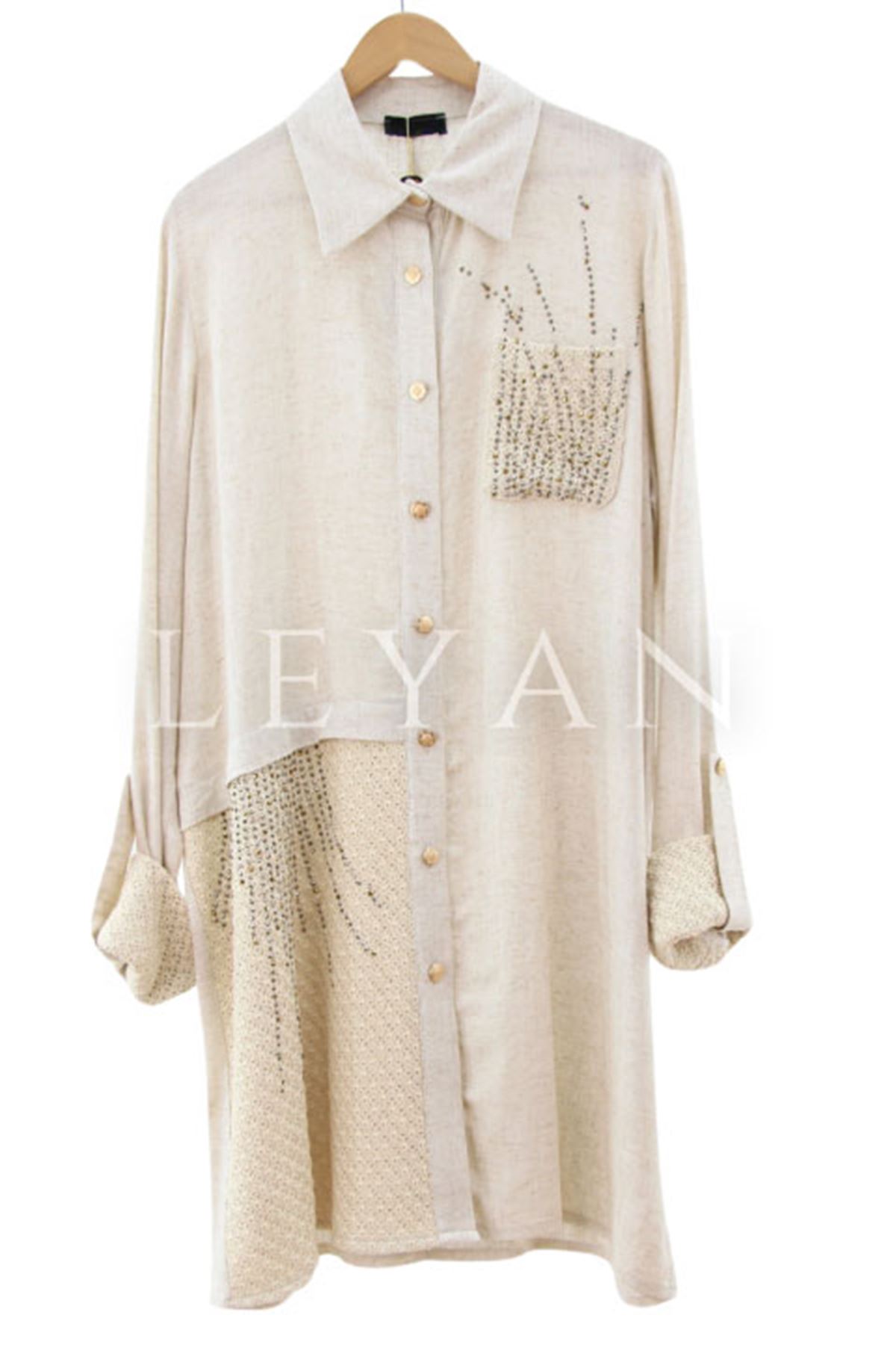Fuat Gürşen Omzu Payet İşlemeli Gömlek- LYN03938 Bej