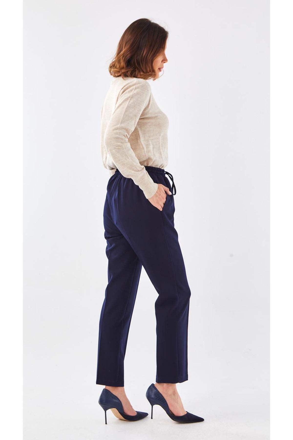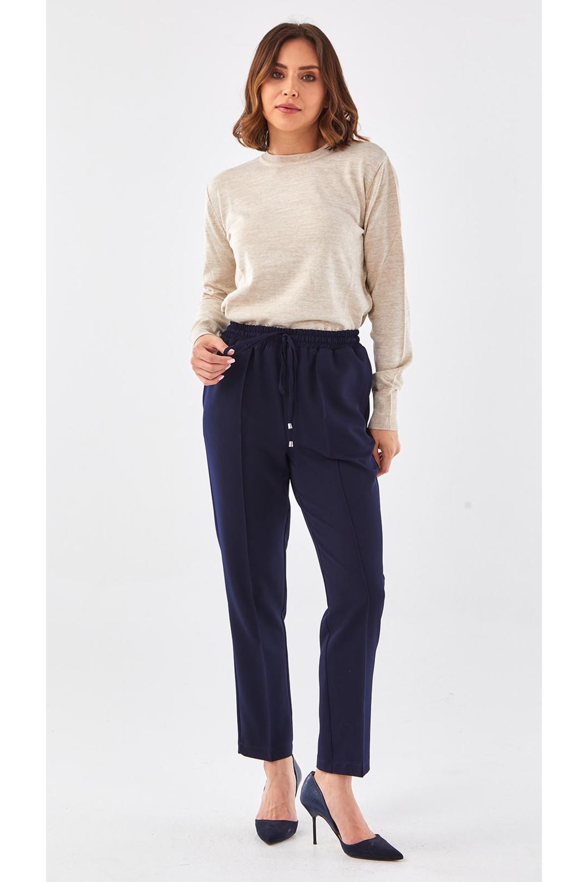 Sentez Beli Lastikli Kumaş Pantolon- LYN02048 Lacivert