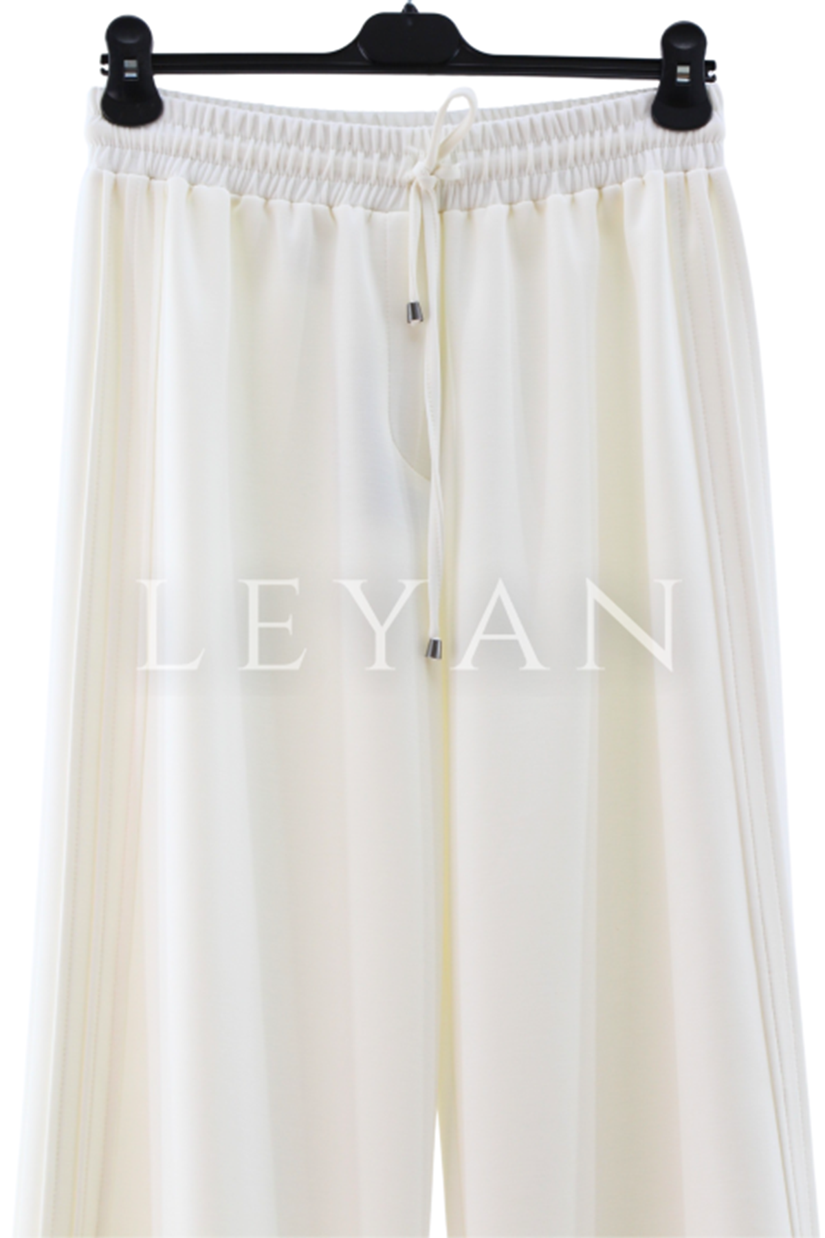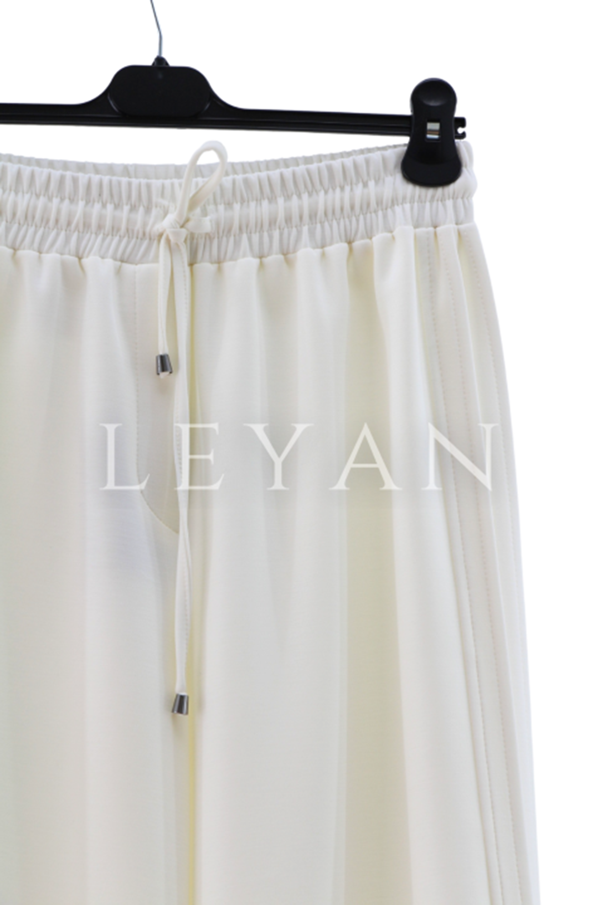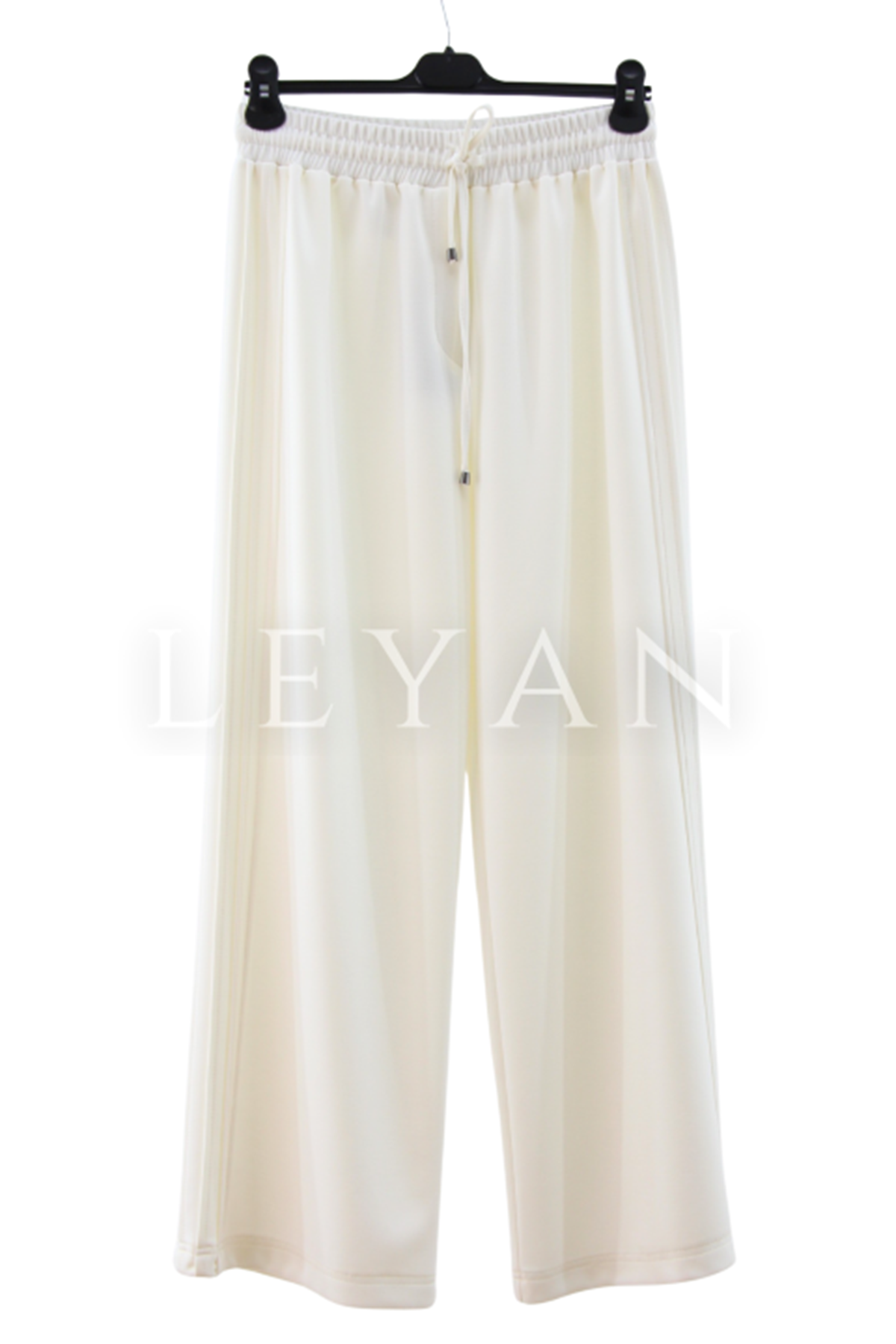 Sentez Berlin Yanı Nervürlü Geniş Bambu Pantolon- LYN04014 Ekru